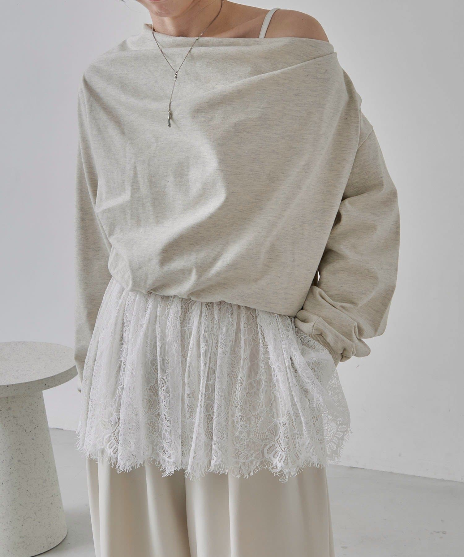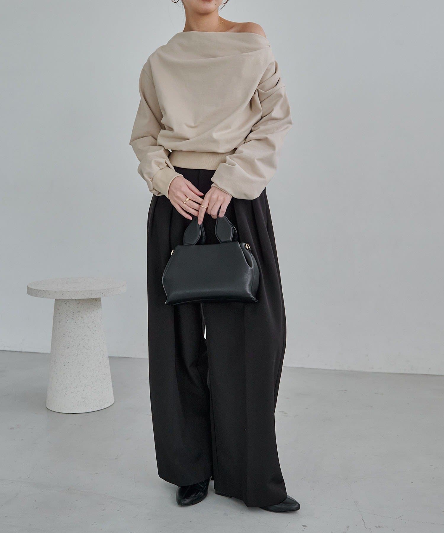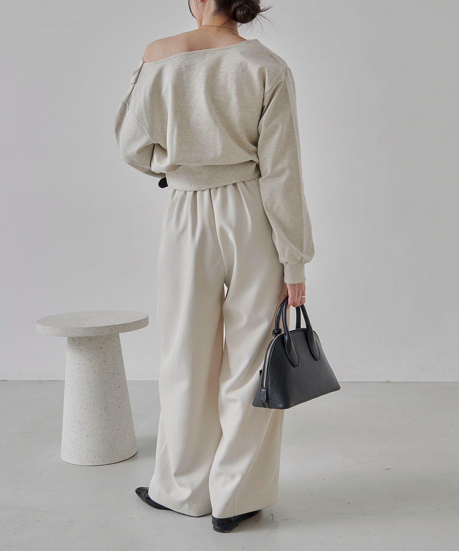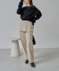 【グレージュ着用アイテム①②】pants:2タックワイドパンツ layered item:レースキャミ