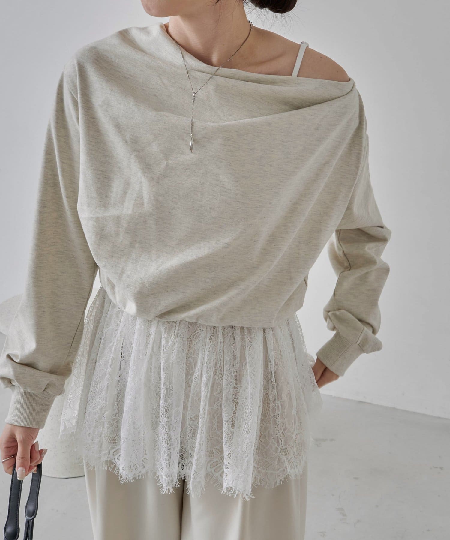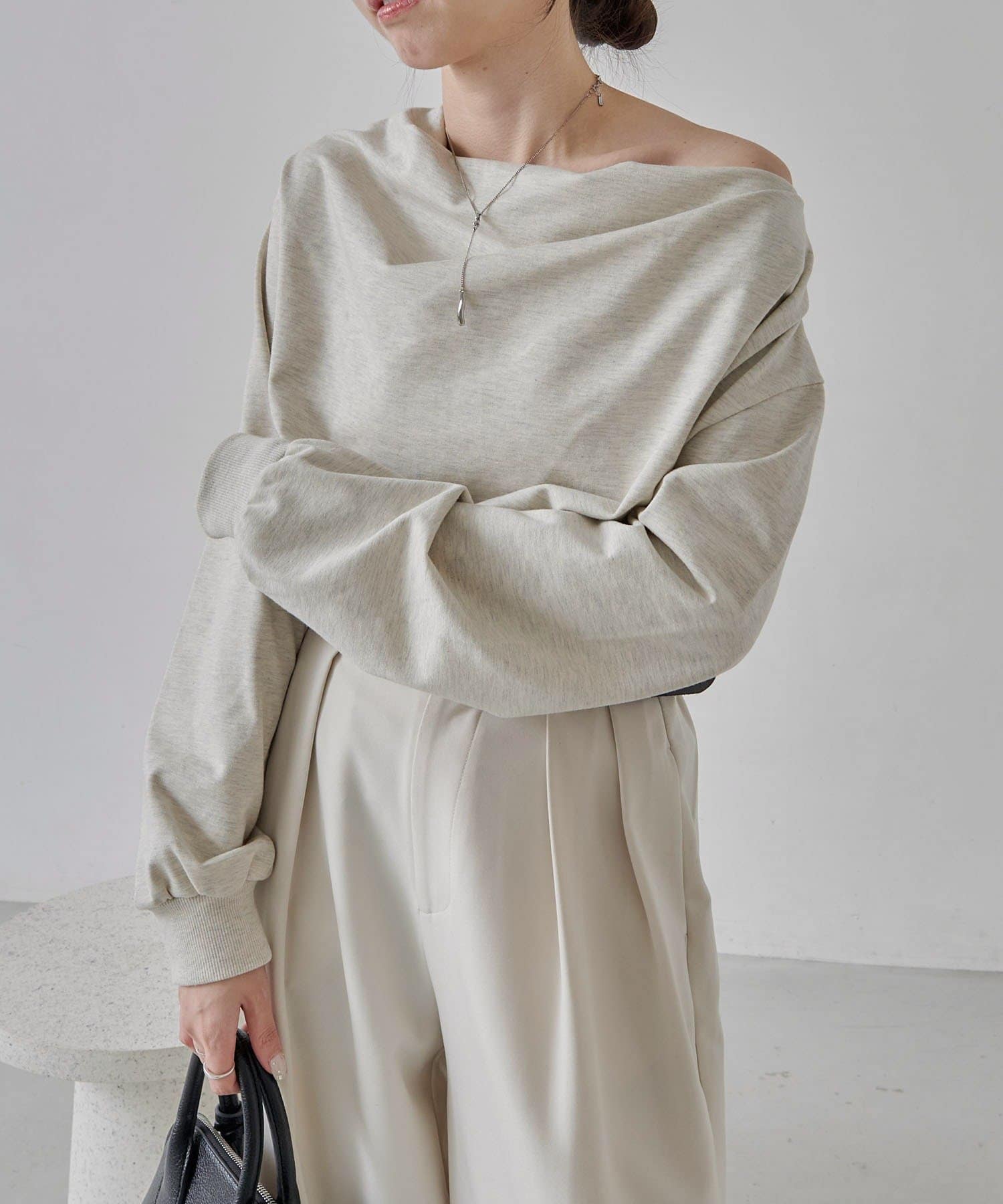 ・ボートネックでも、肩を落としてワンショルダーでも着られる