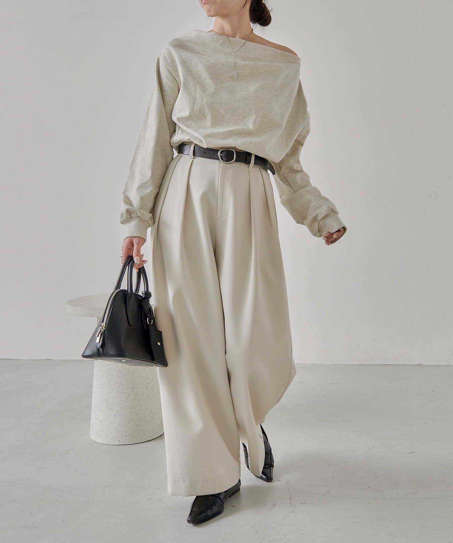 【グレージュ着用アイテム③】2タックワイドパンツ