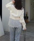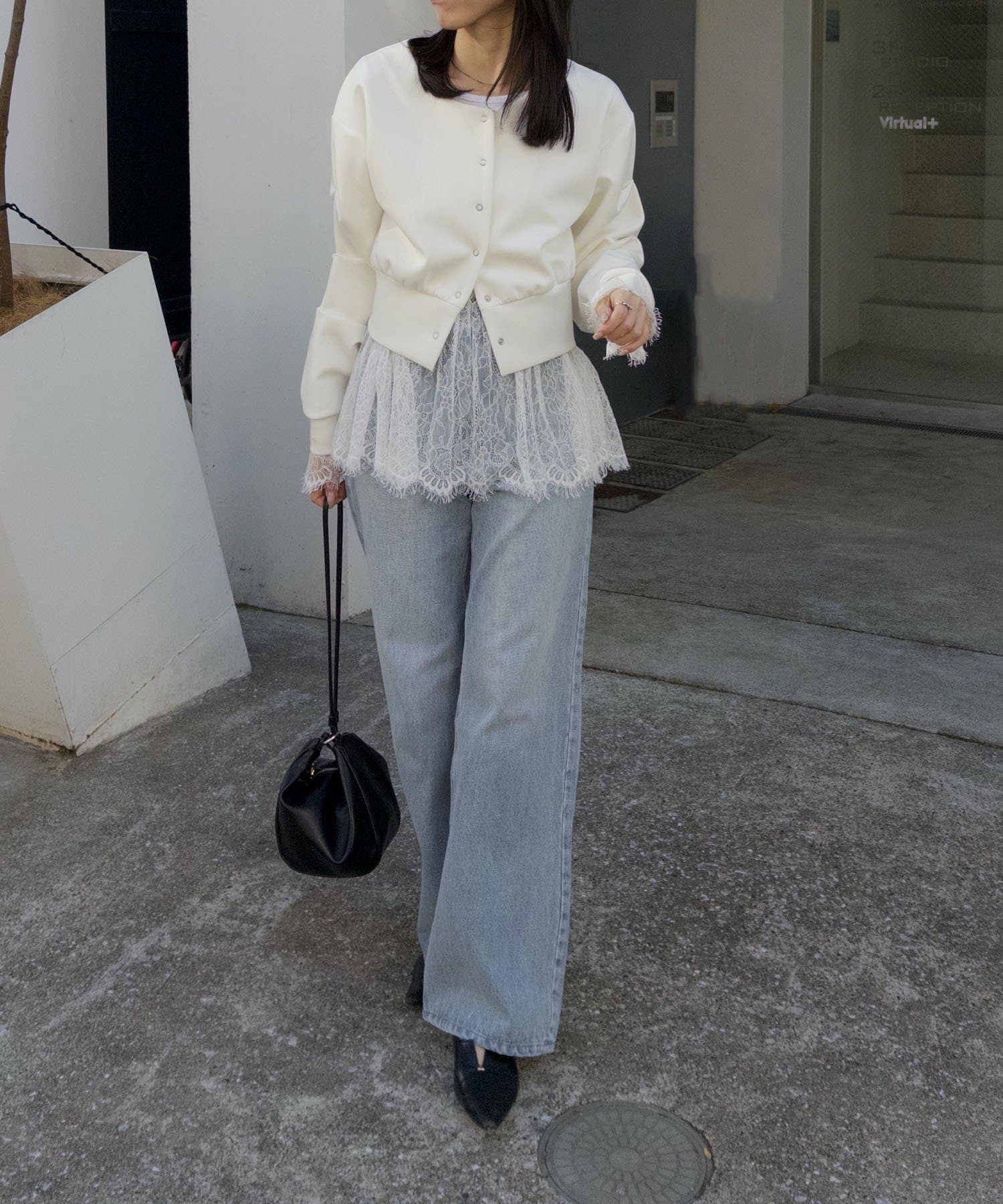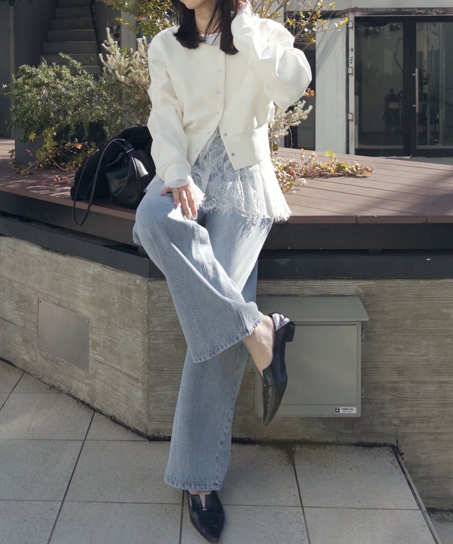 【オフホワイト着用アイテム②】inner:レースロンT denim:スリットポケットストレートデニム