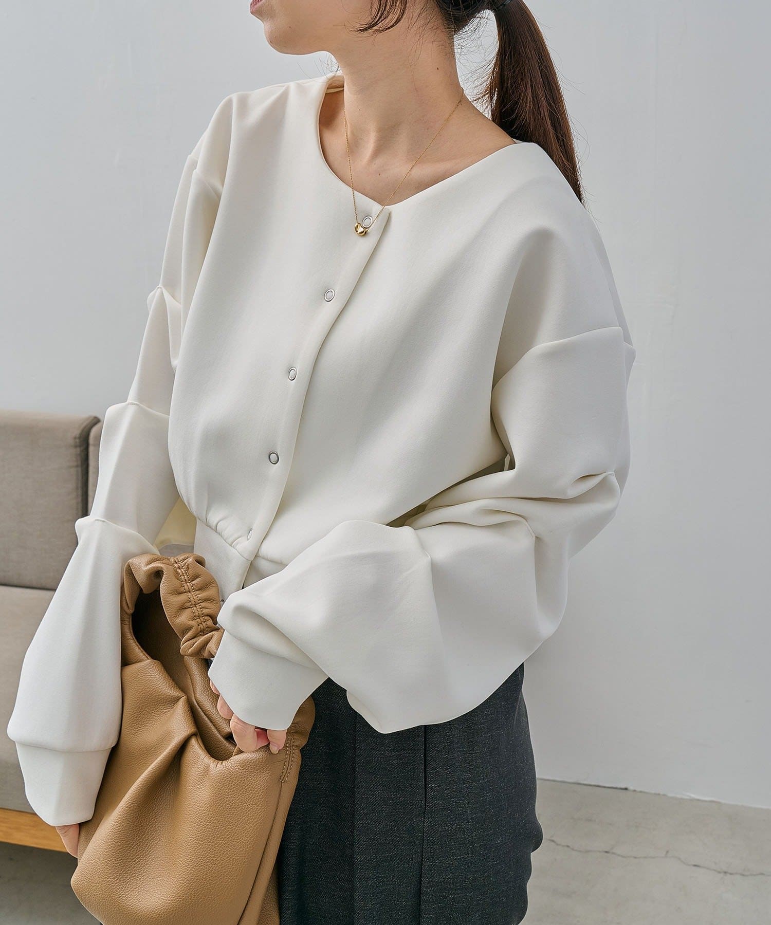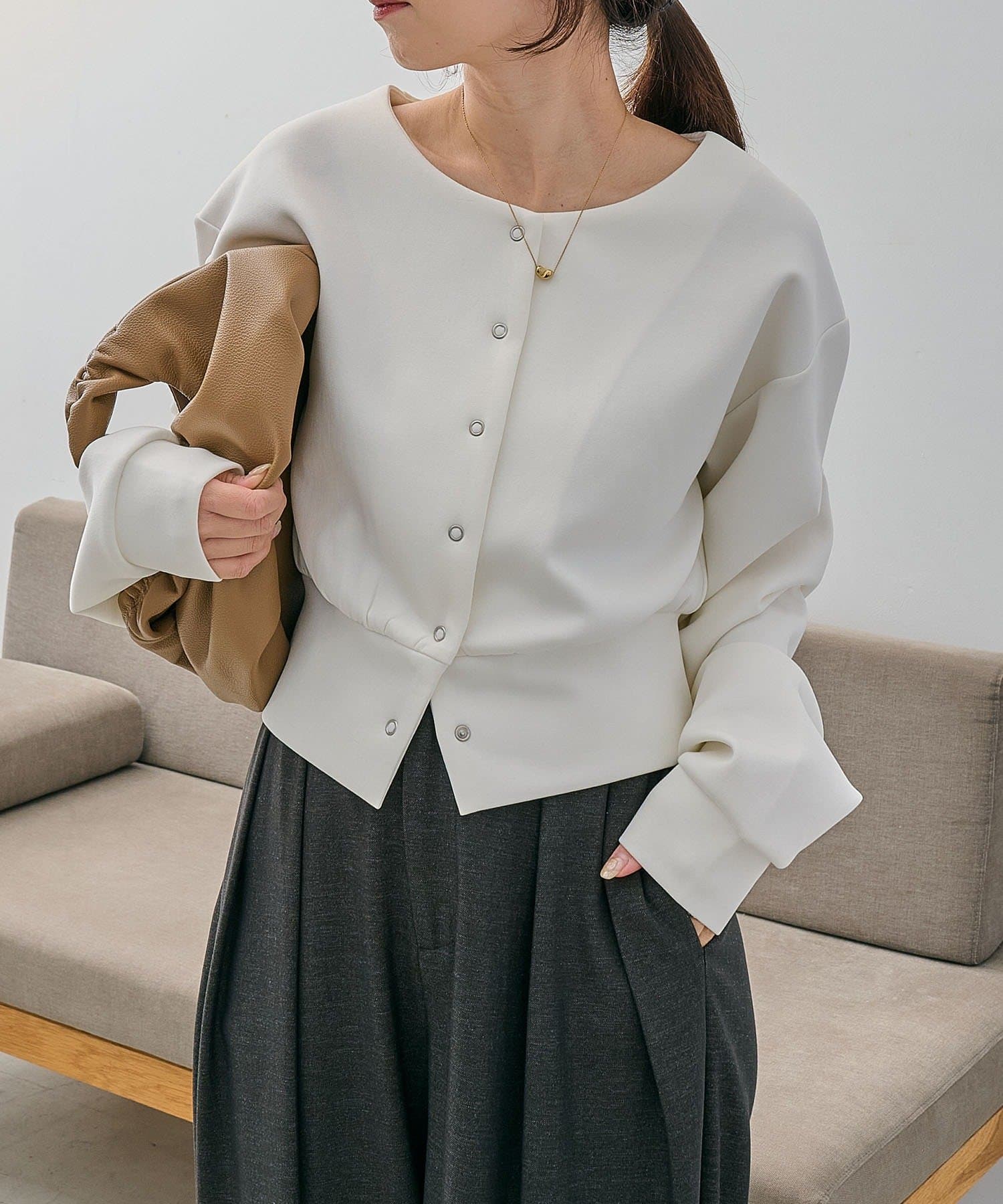 ・袖に入ったタックが立体的なフォルムに