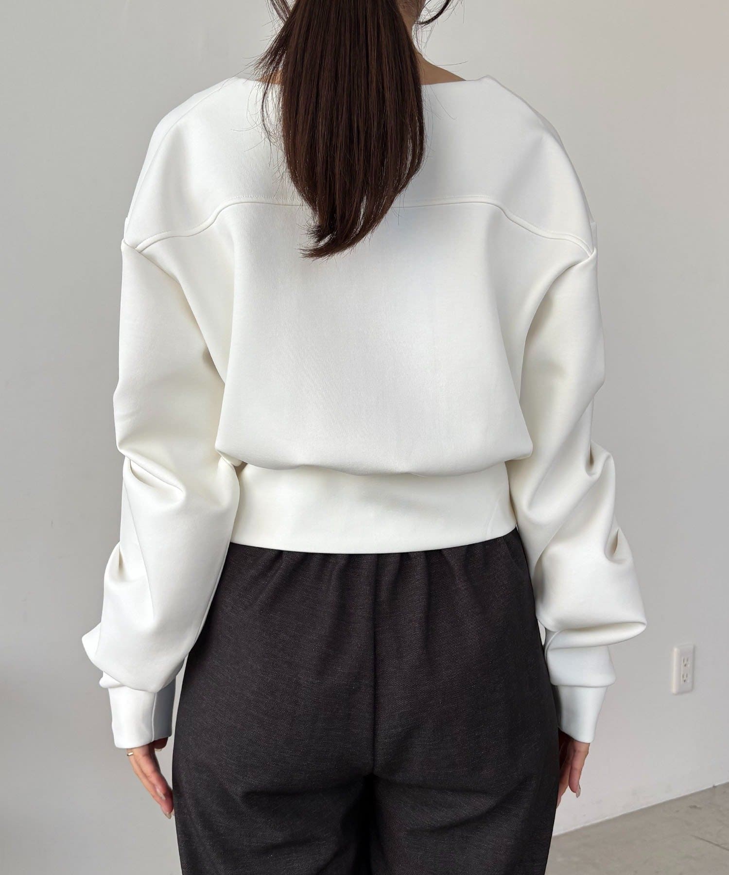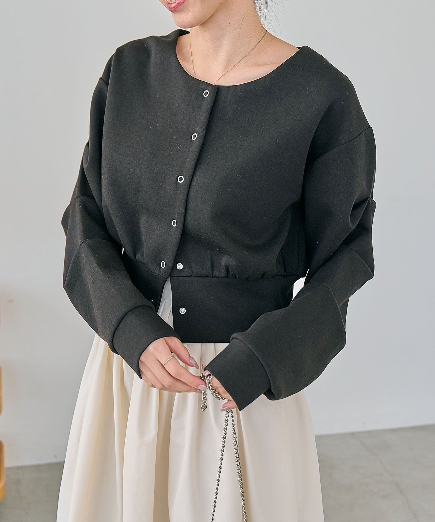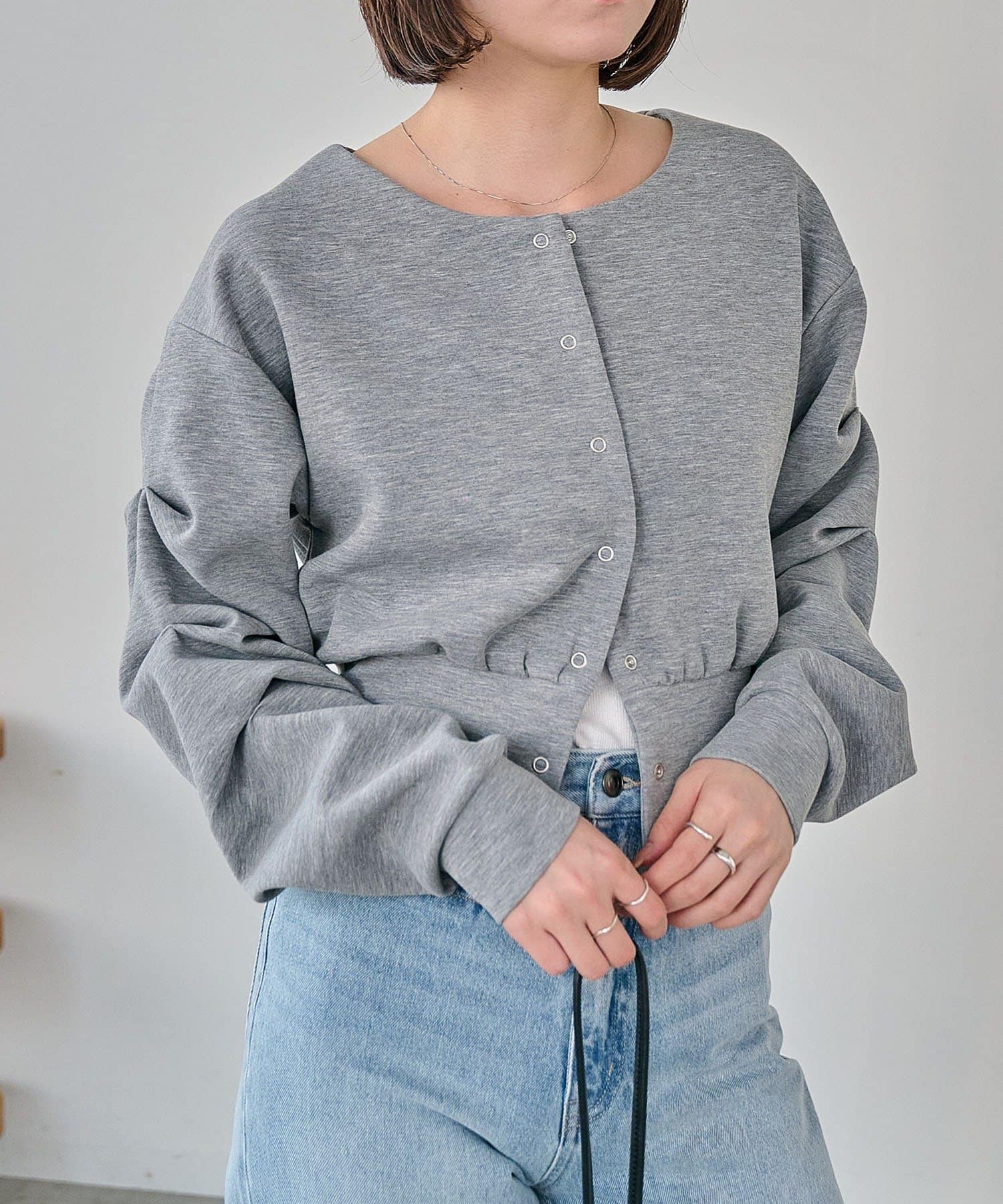 ・クロップ丈でどんなボトムにも合わせやすく、スタイルアップ効果も◎