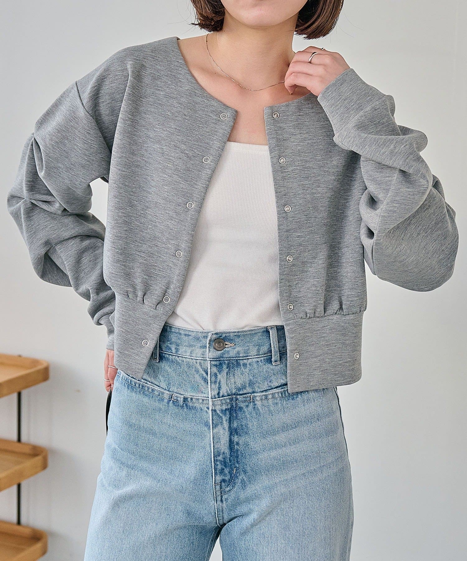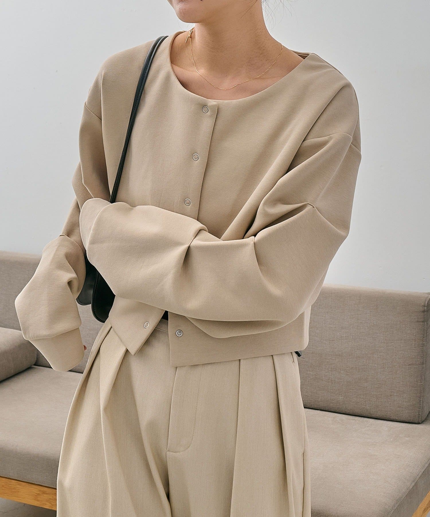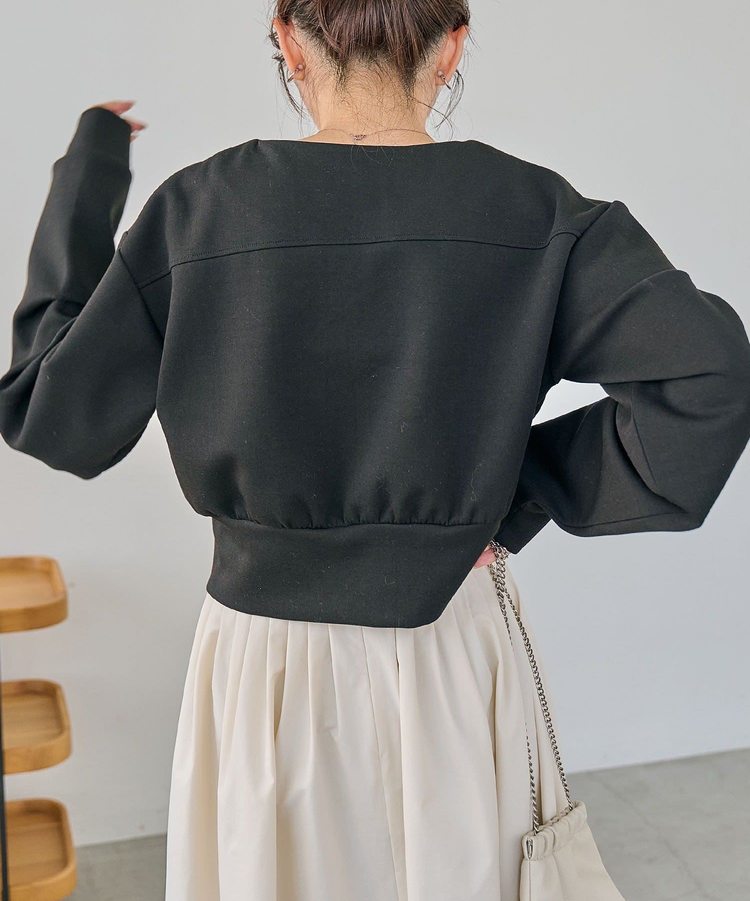 ・クロップ丈でどんなボトムにも合わせやすく、スタイルアップ効果も◎