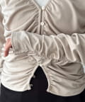 ・肘から袖口にかけてもギャザーでを寄せたデザインで手元も華やかに
