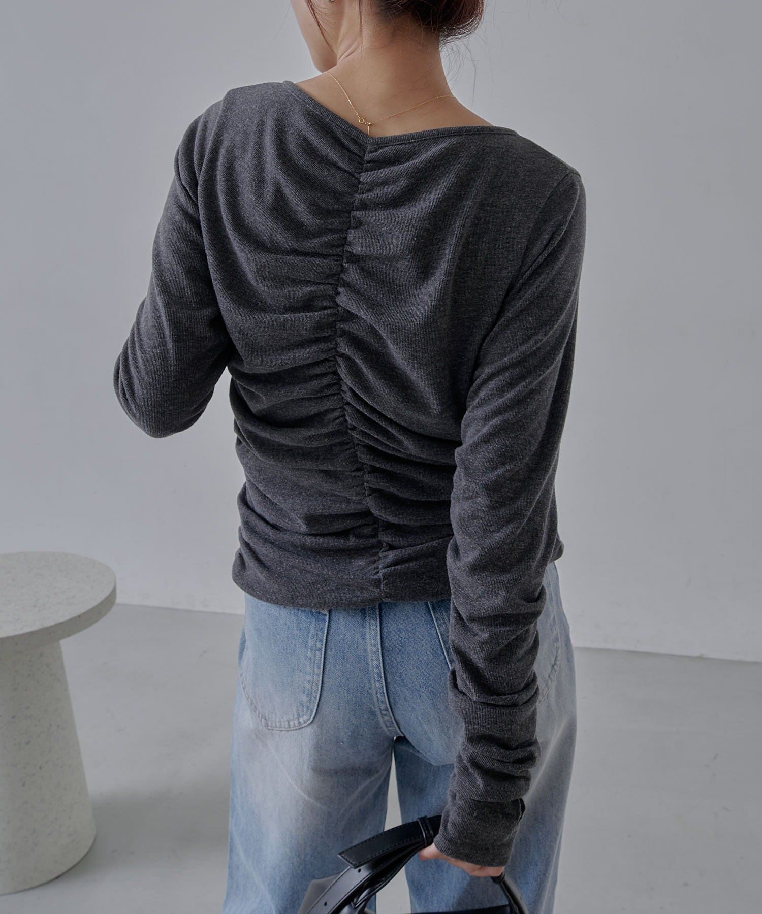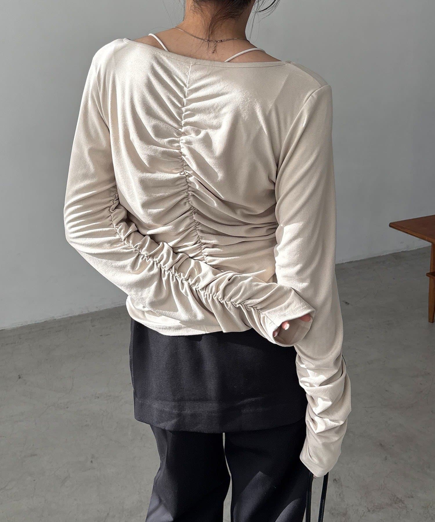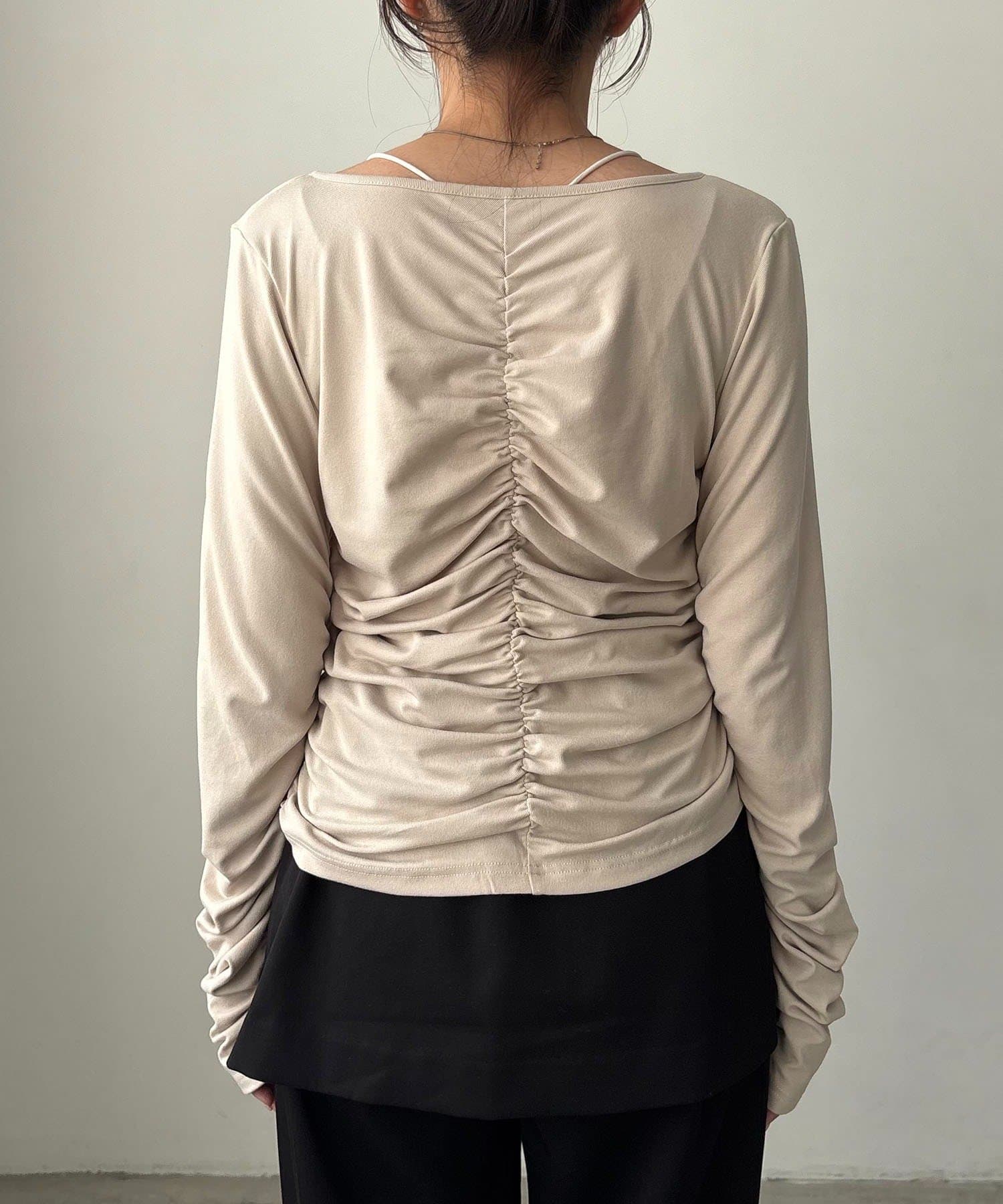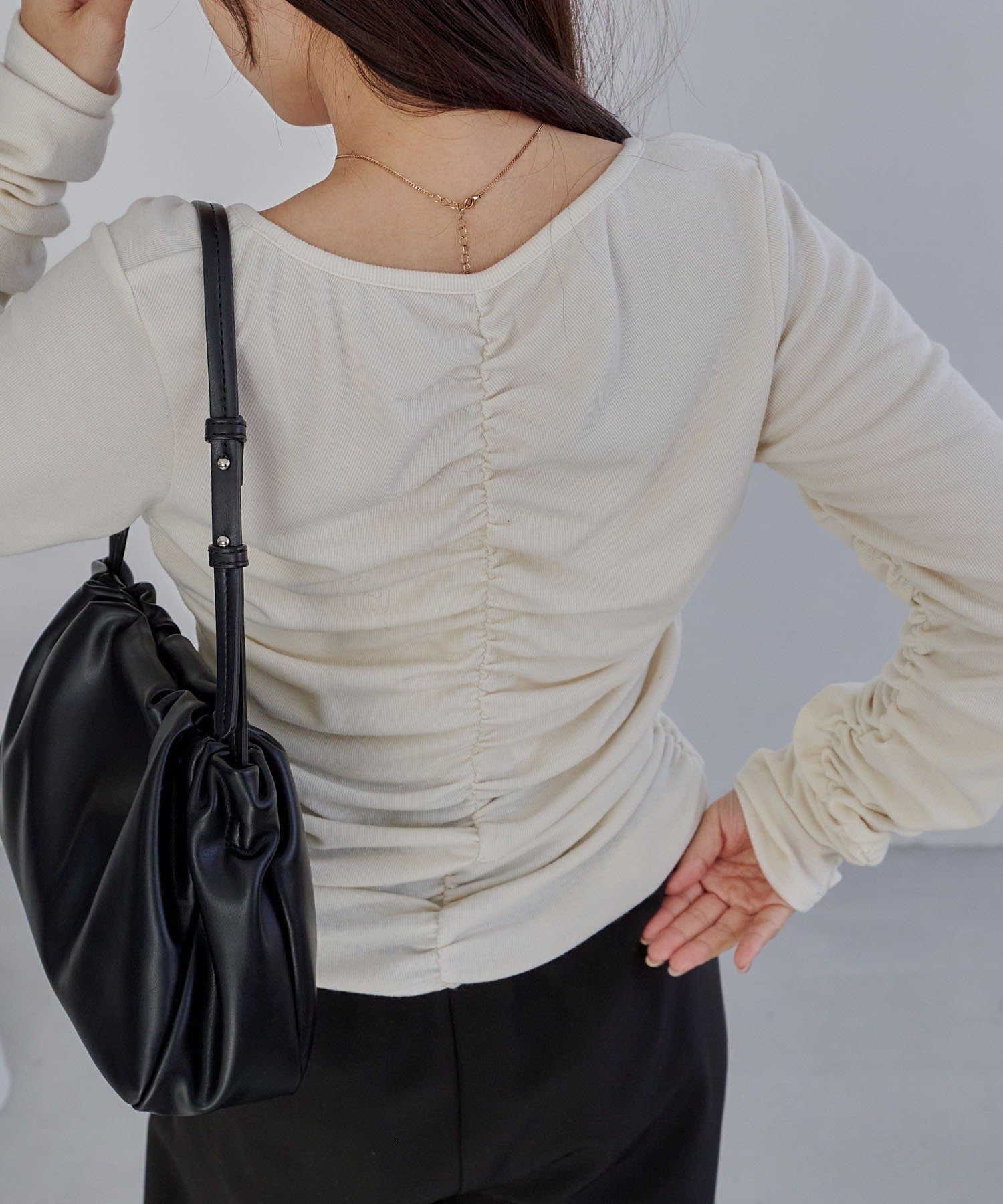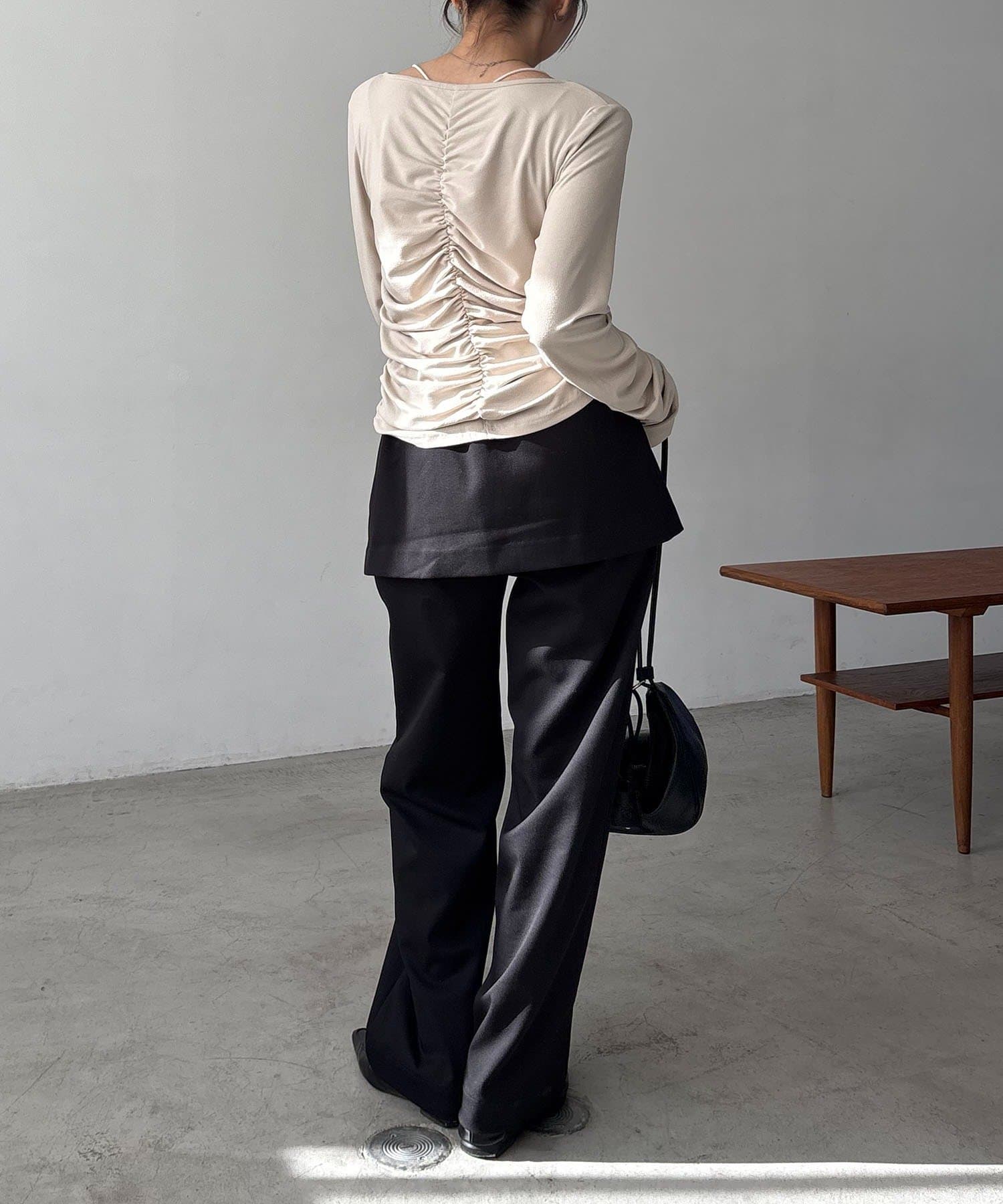 ・背中にもギャザーがあることでボディラインを拾いにくい