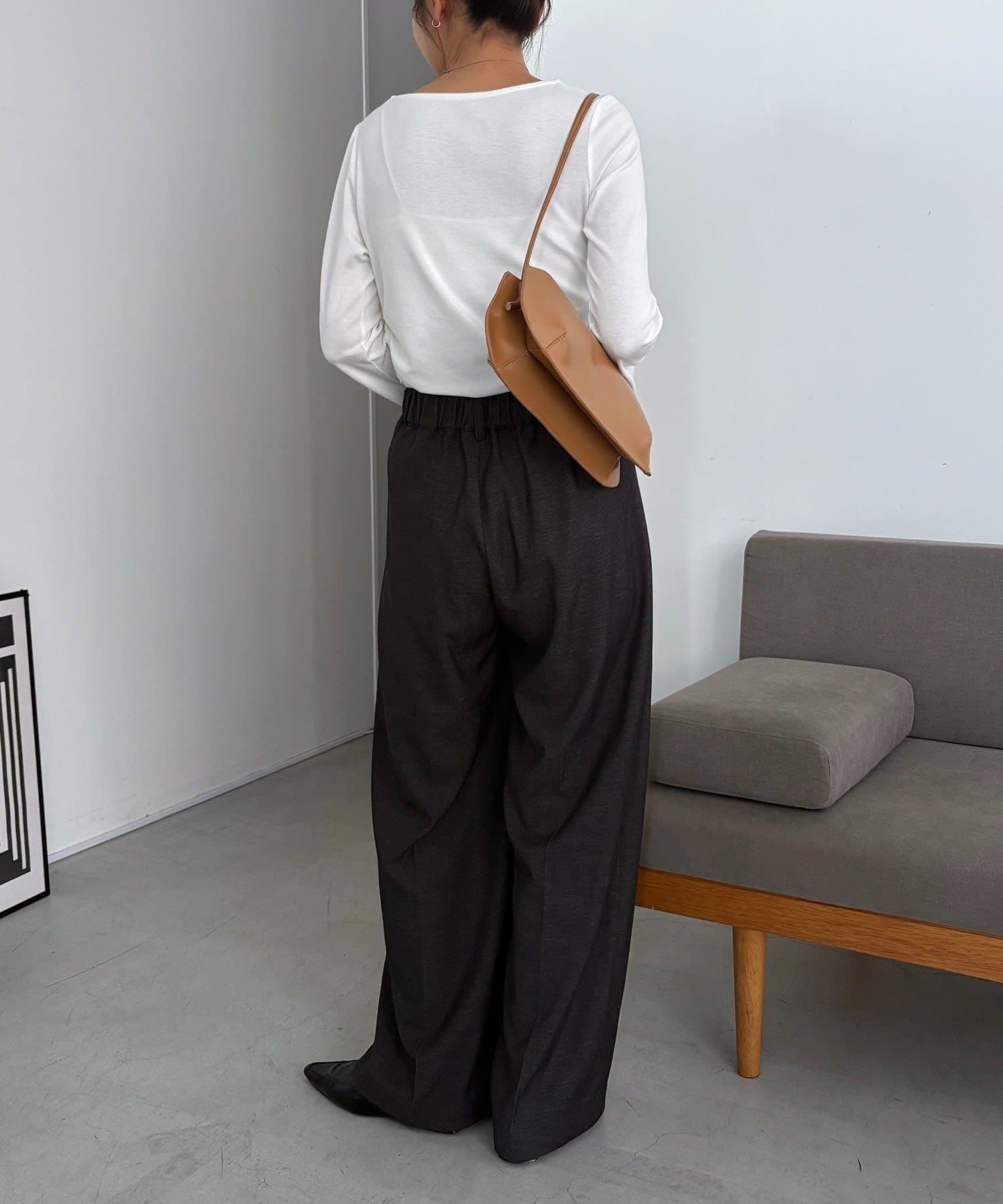・ワイドパンツに合わせてメリハリのあるスタイリングに