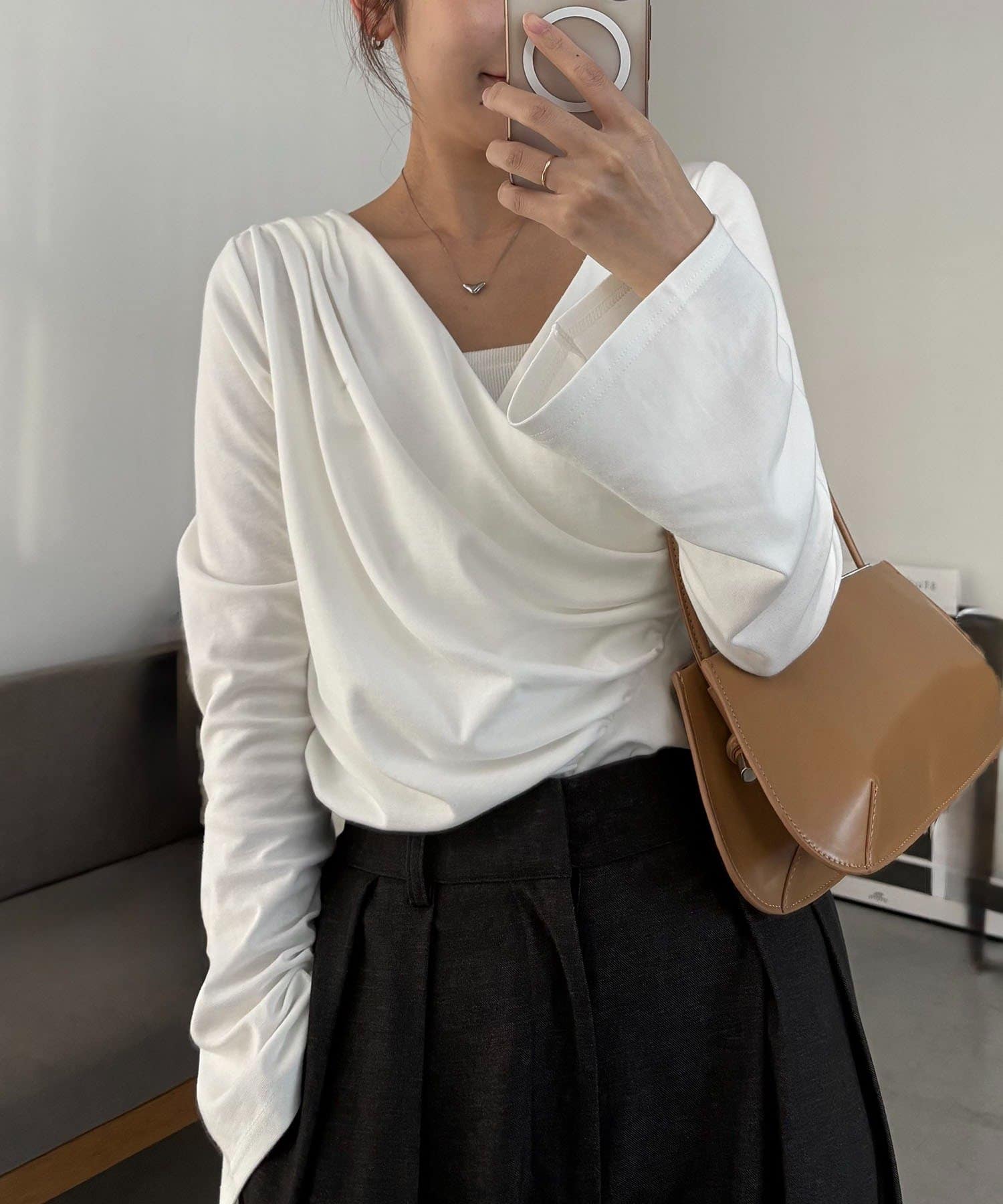 TOP > CAPRICIEUX LE'MAGE > レディース > トップス > Tシャツ/カットソー > ドレープアシメネックTシャツ