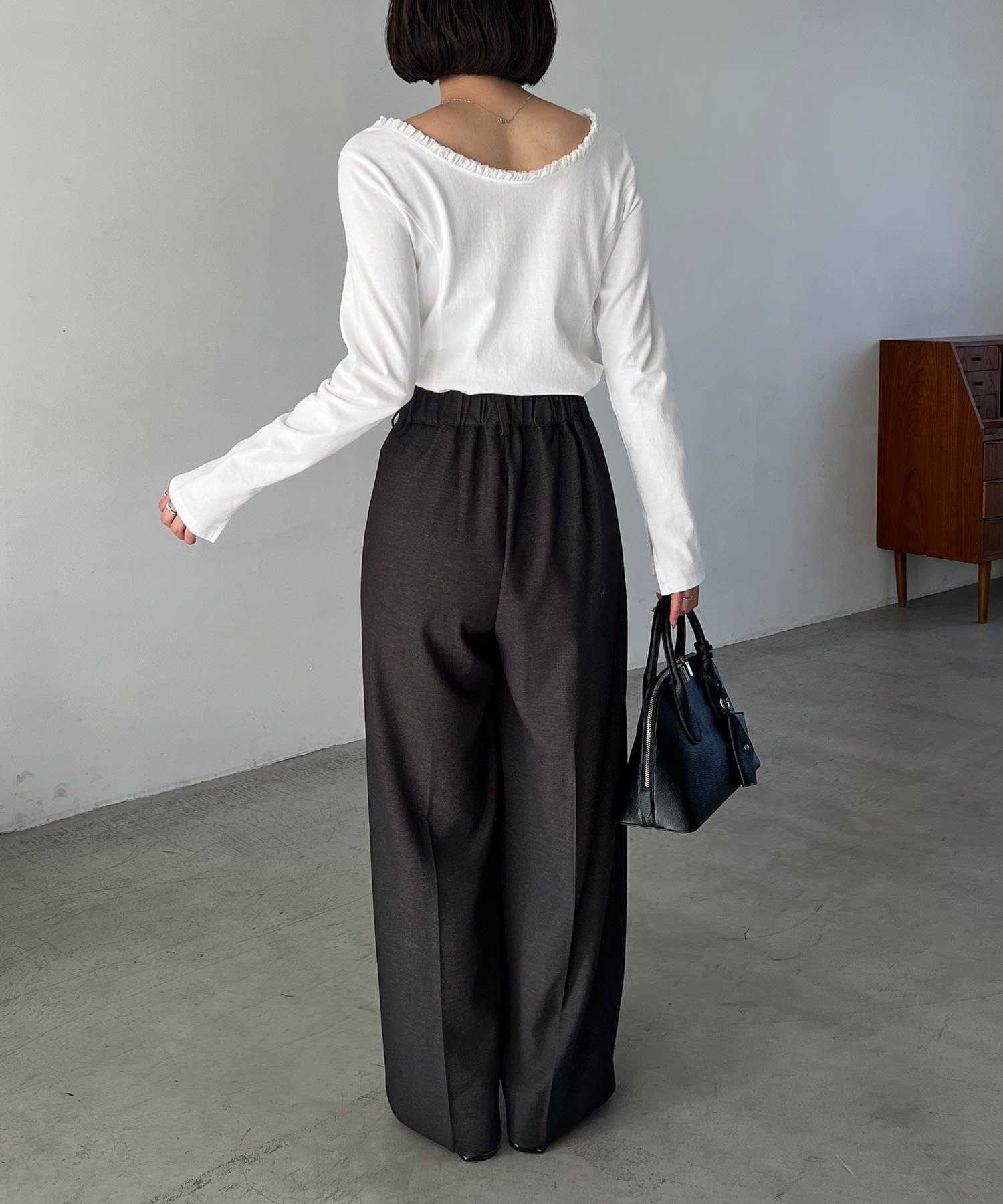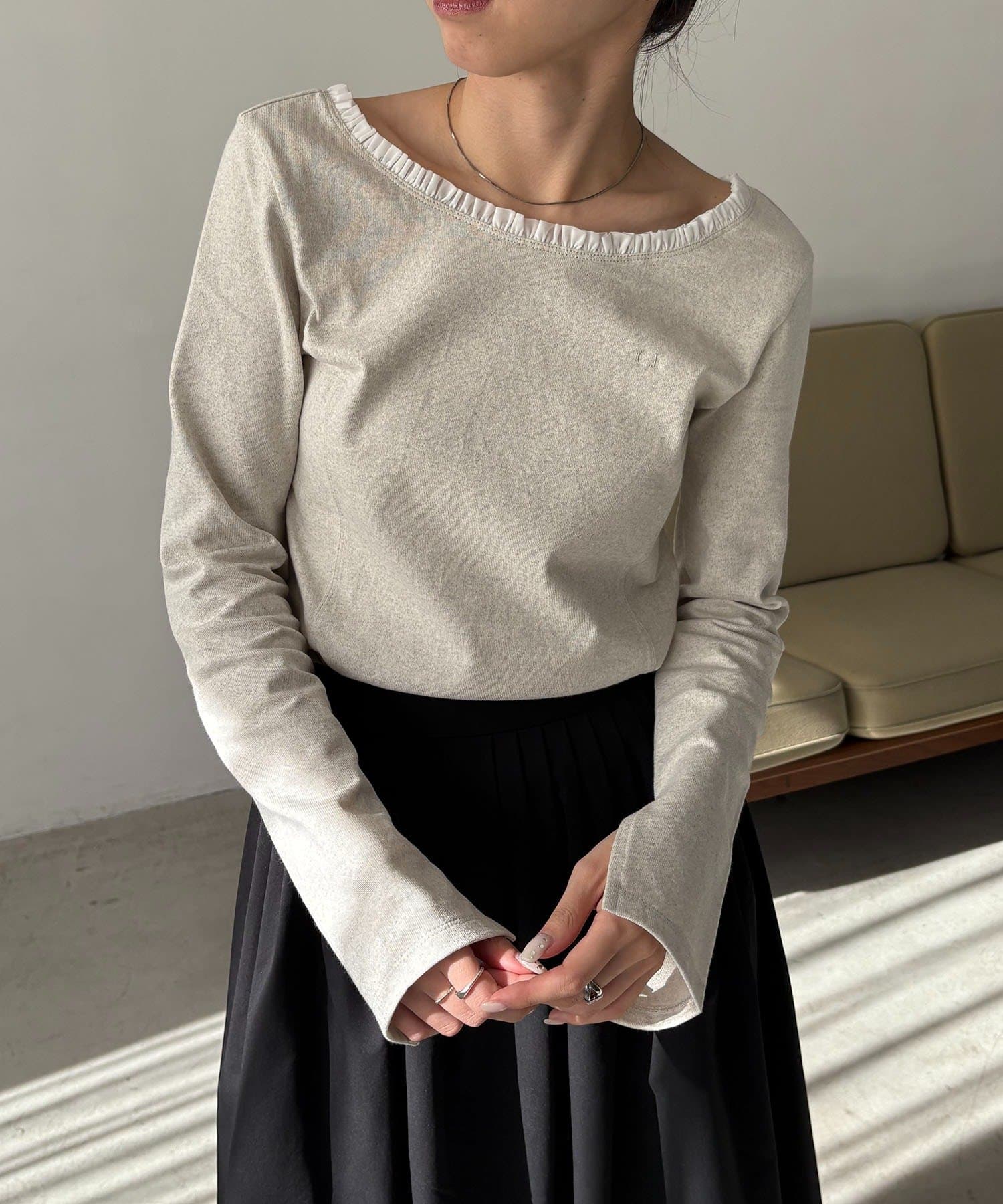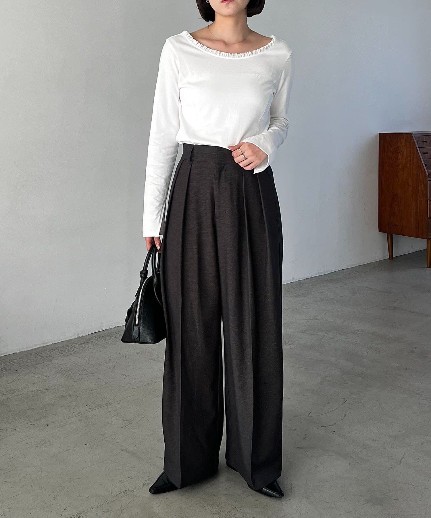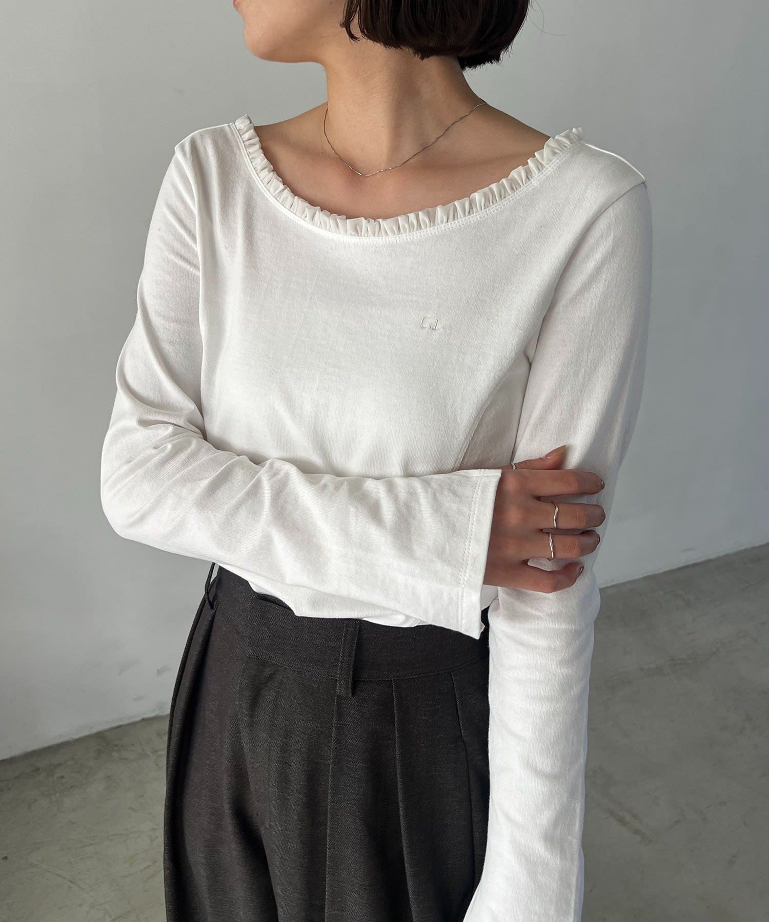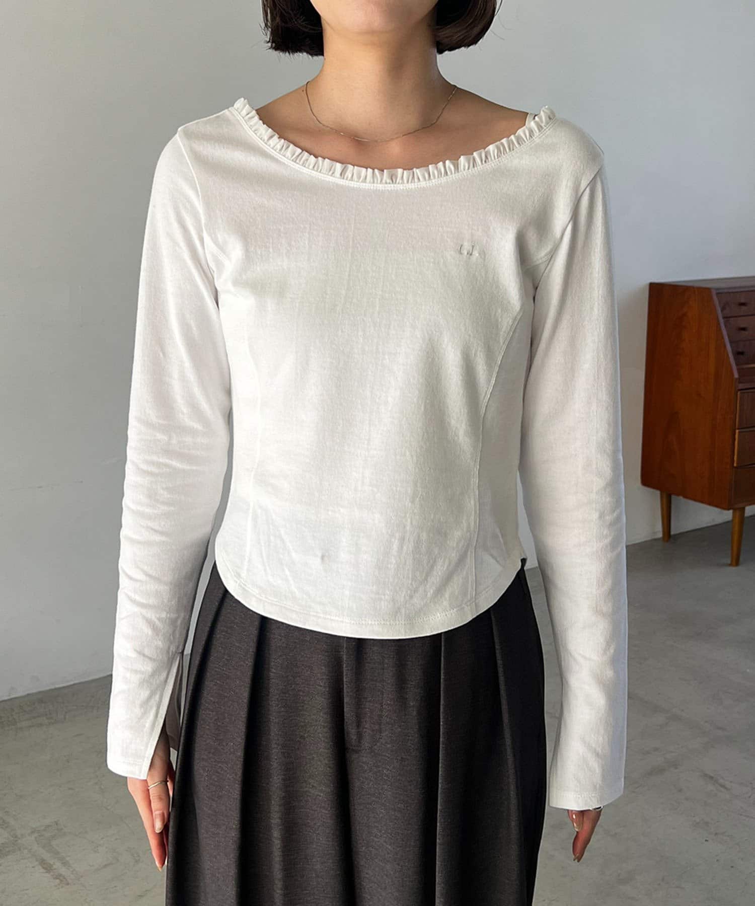 ・首回りを広めに取ってすっきりと抜け感漂う1枚