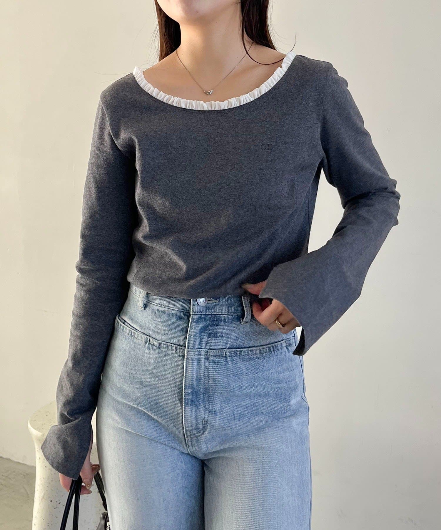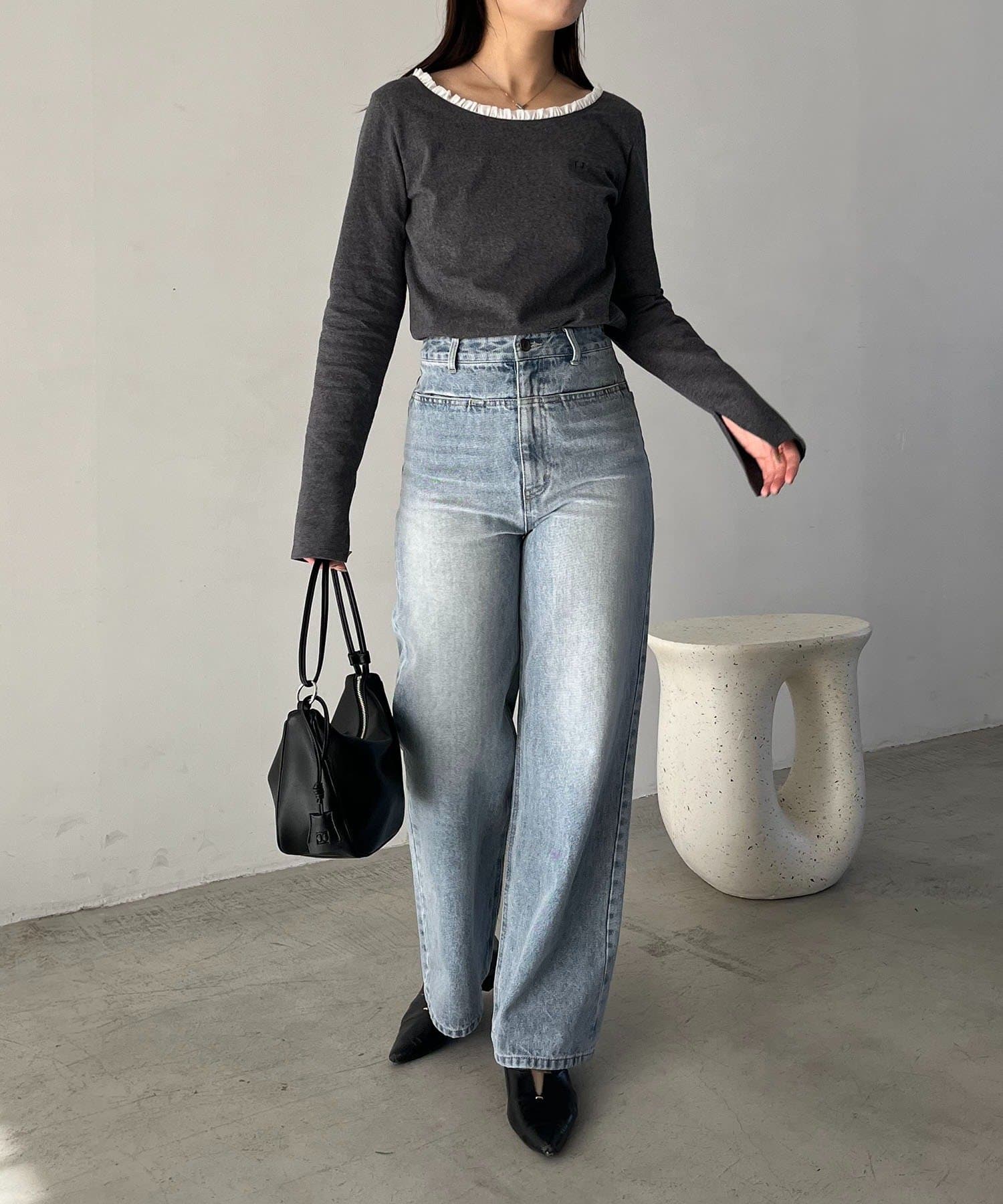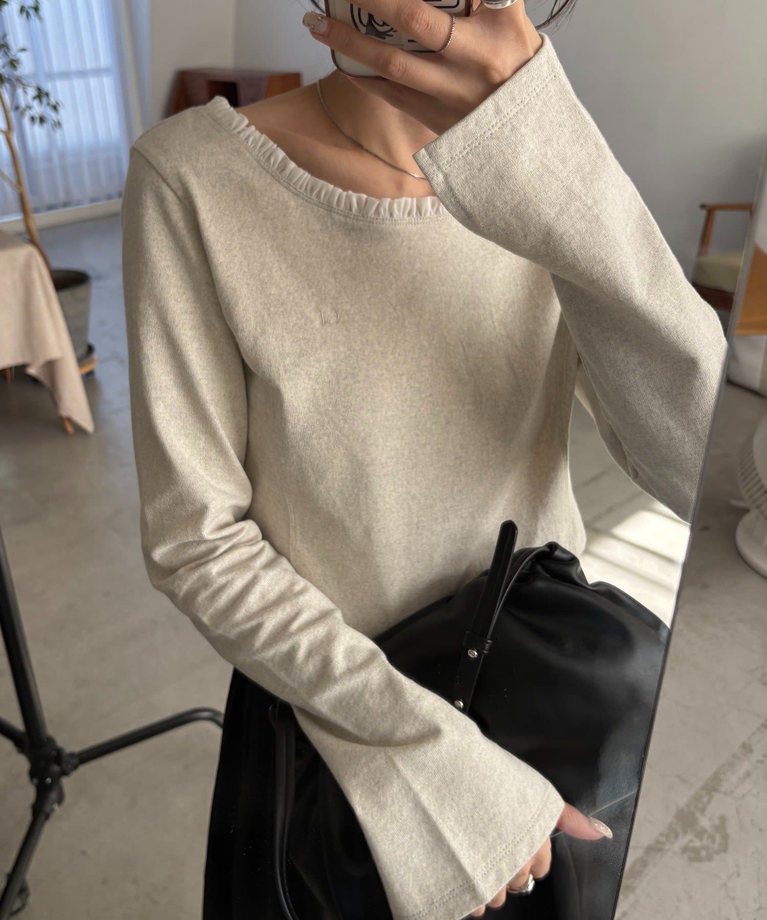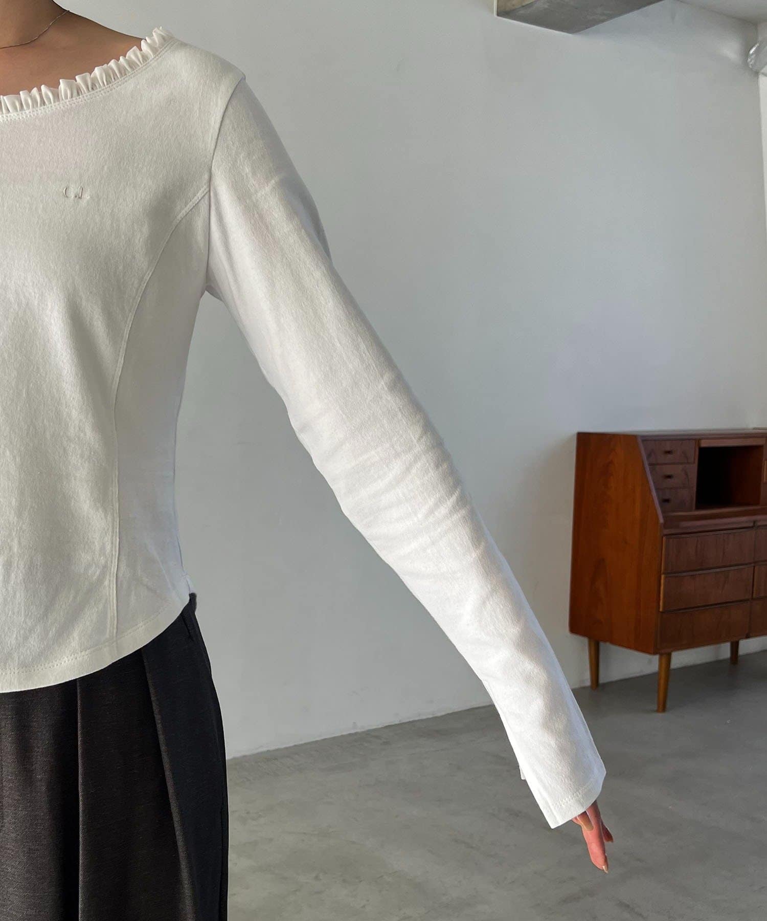 ・首回りを広めに取ってすっきりと抜け感漂う1枚