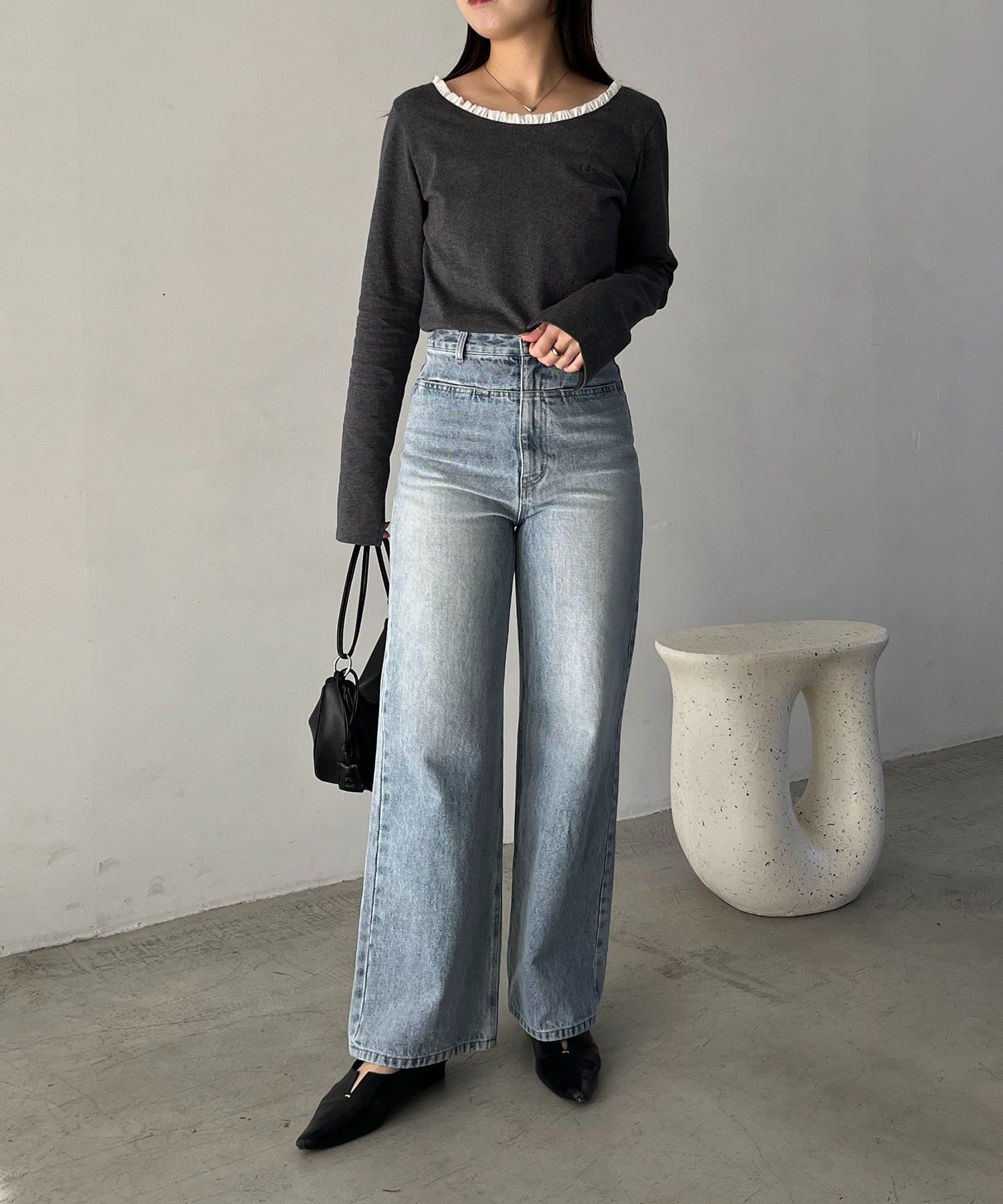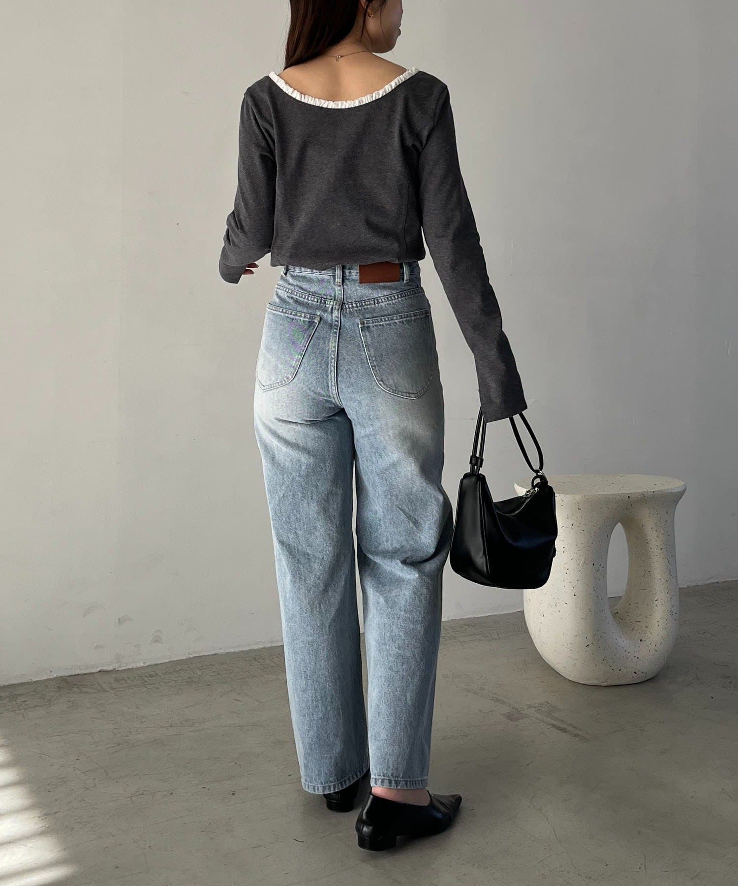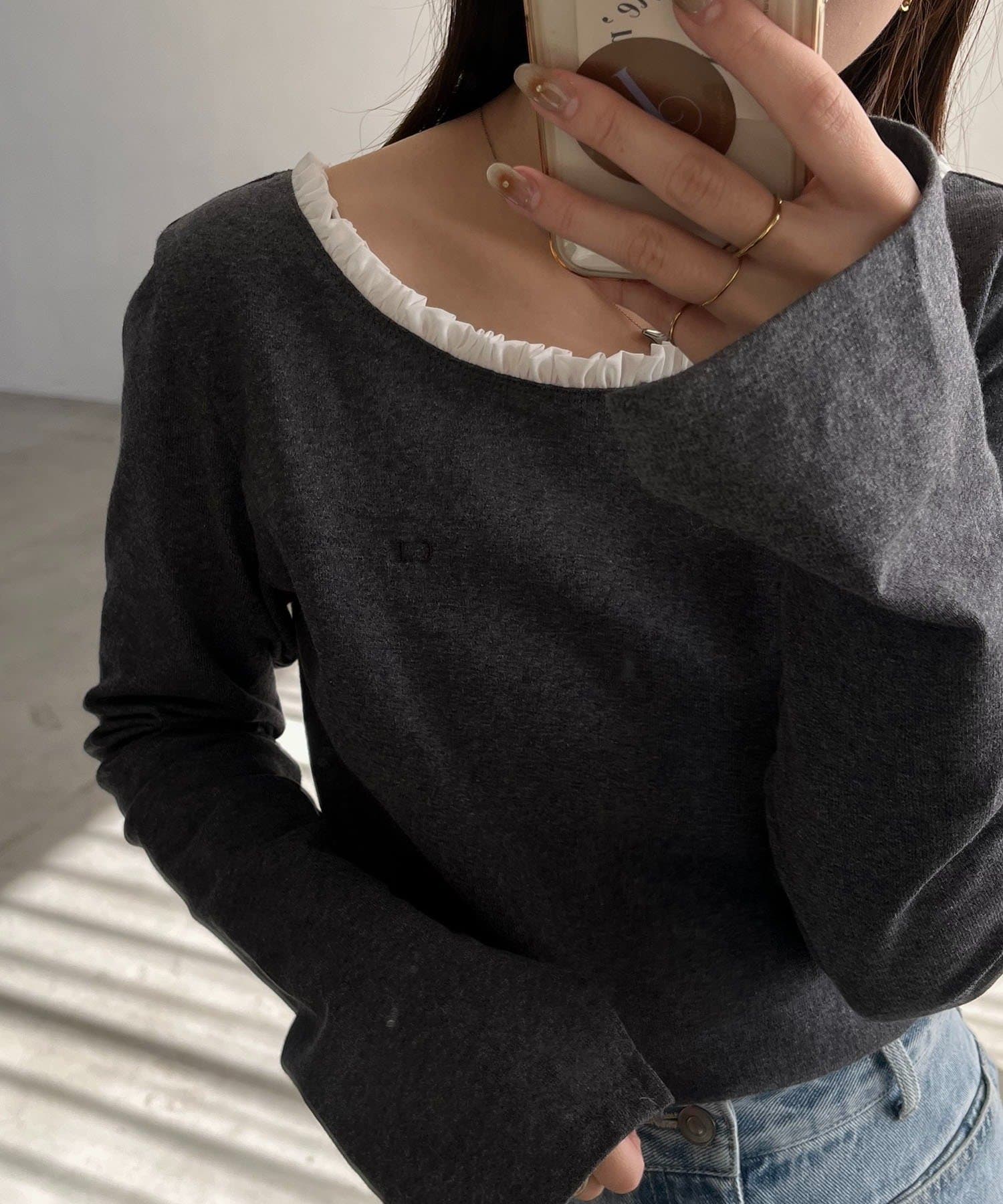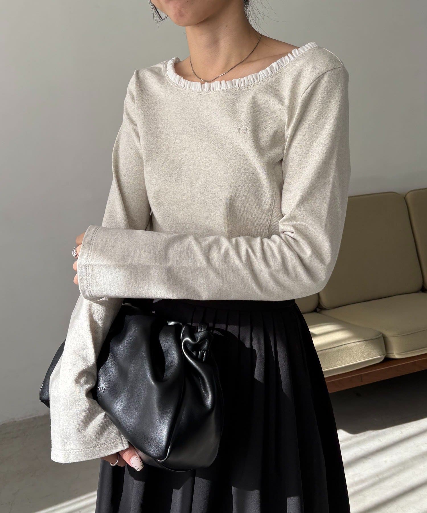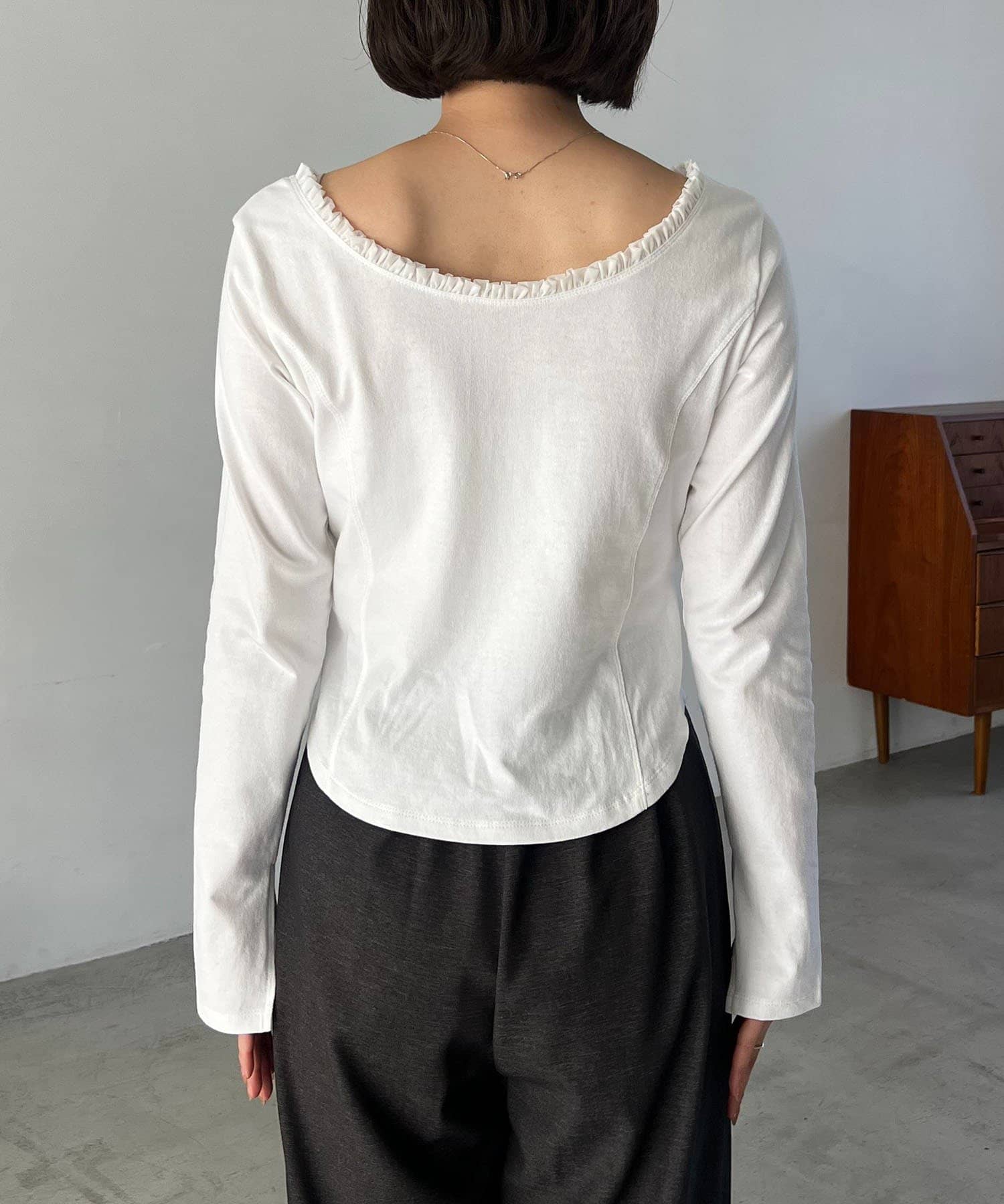 ・首回りを広めに取ってすっきりと抜け感漂う1枚