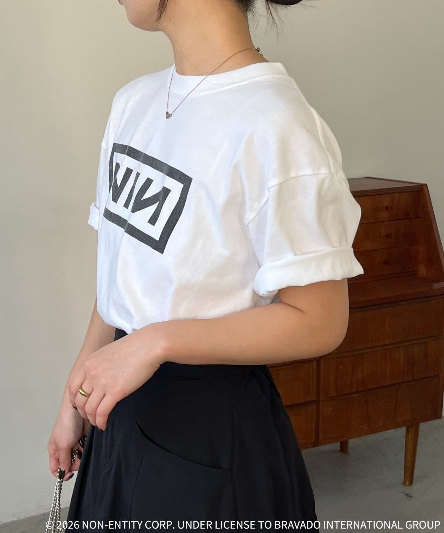 アメリカを代表するバンド、ナインインチネイルズのボックスロゴがプリントされたTシャツ