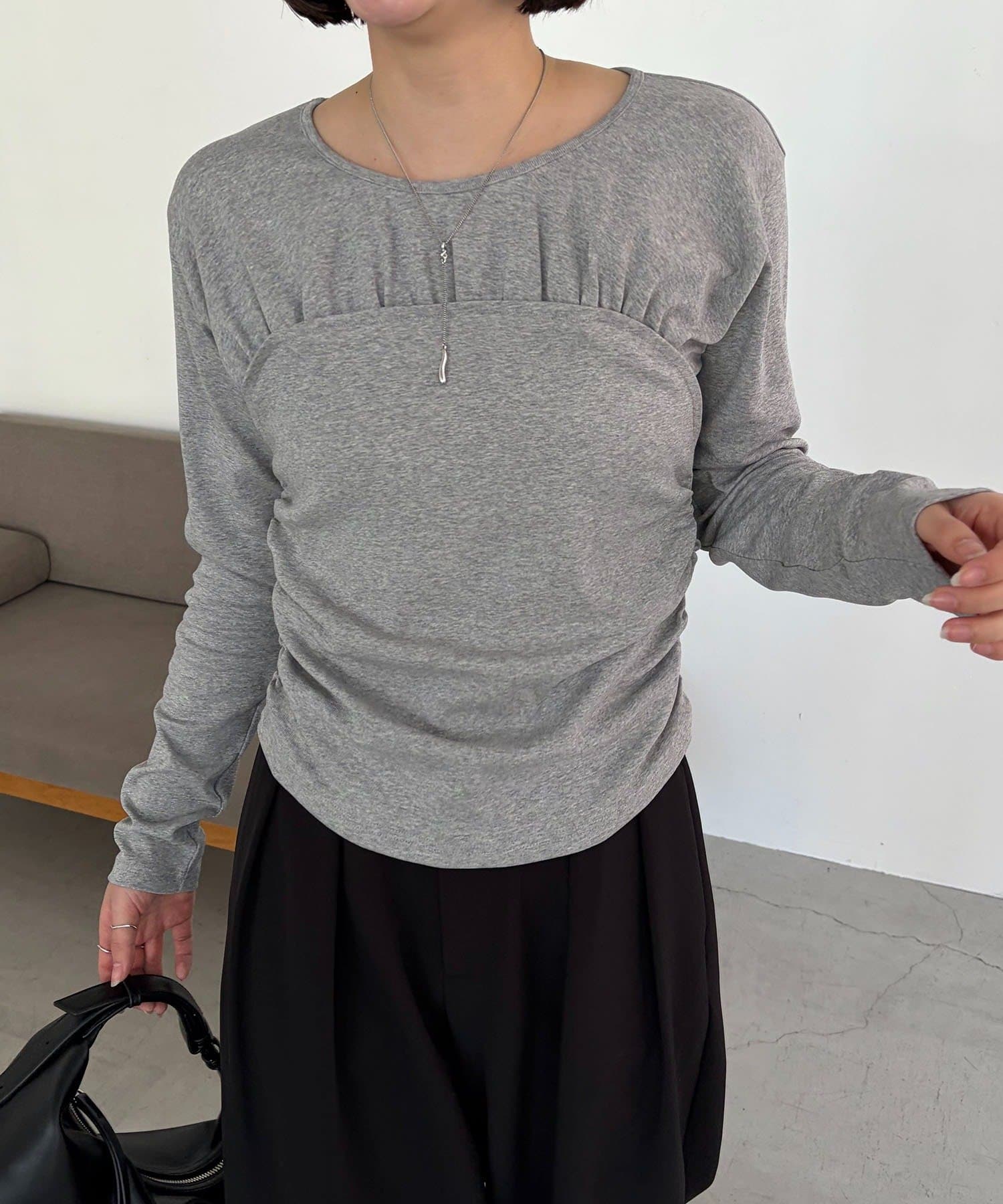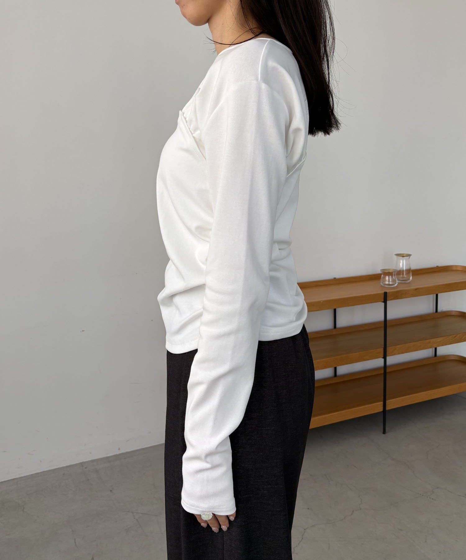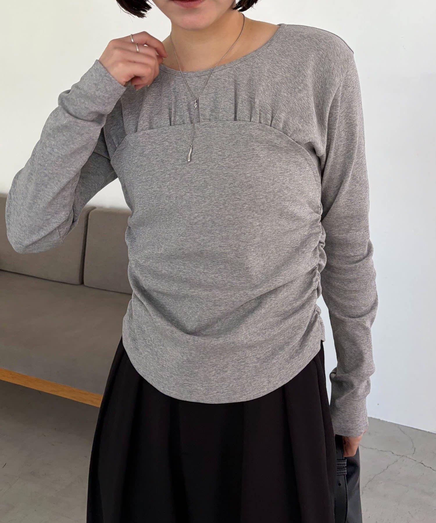 ・フラットになりがちなロンTに立体感が生まれこなれた印象に
