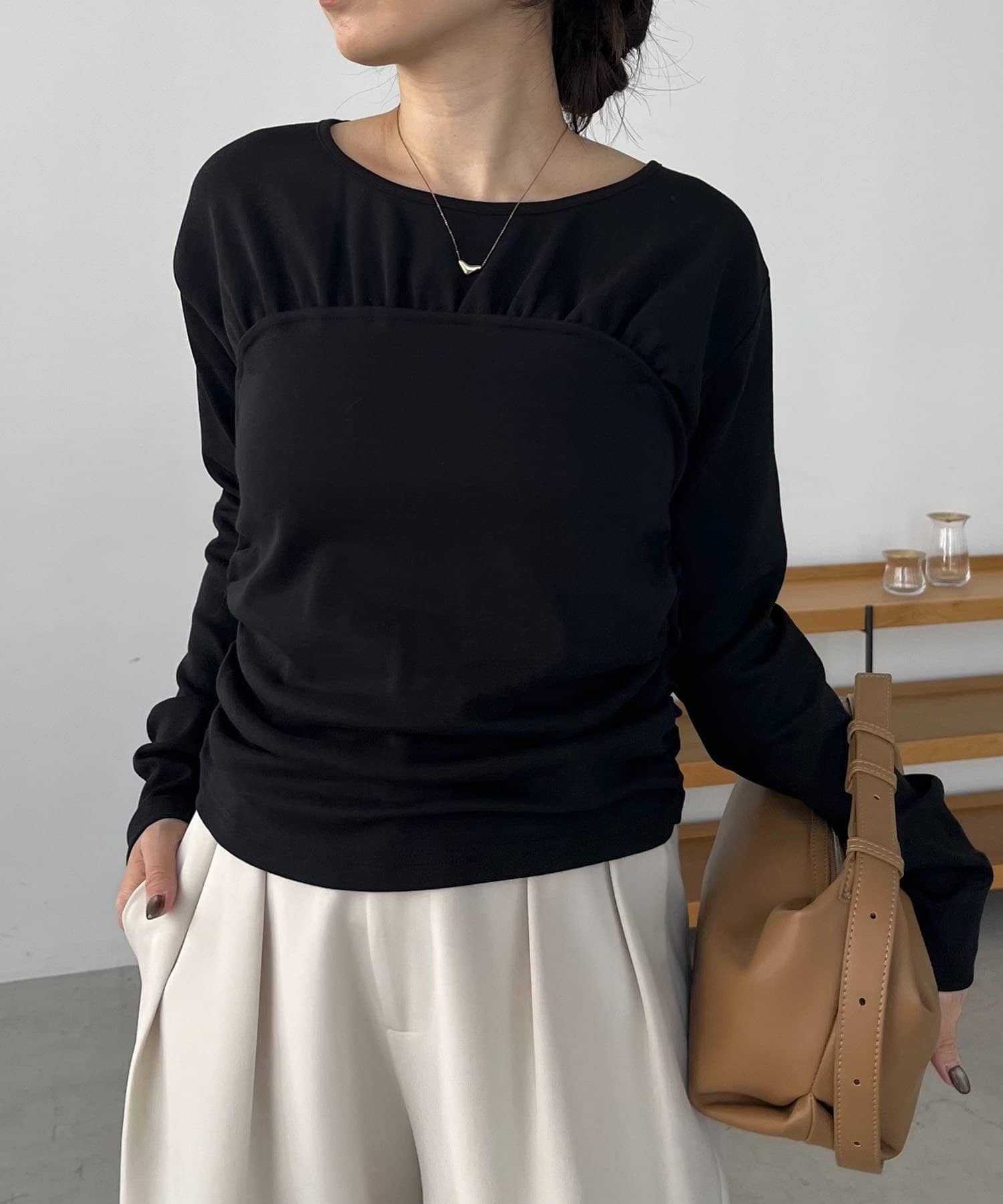 ・脇のシャーリングが細みえ効果◎