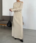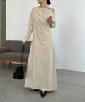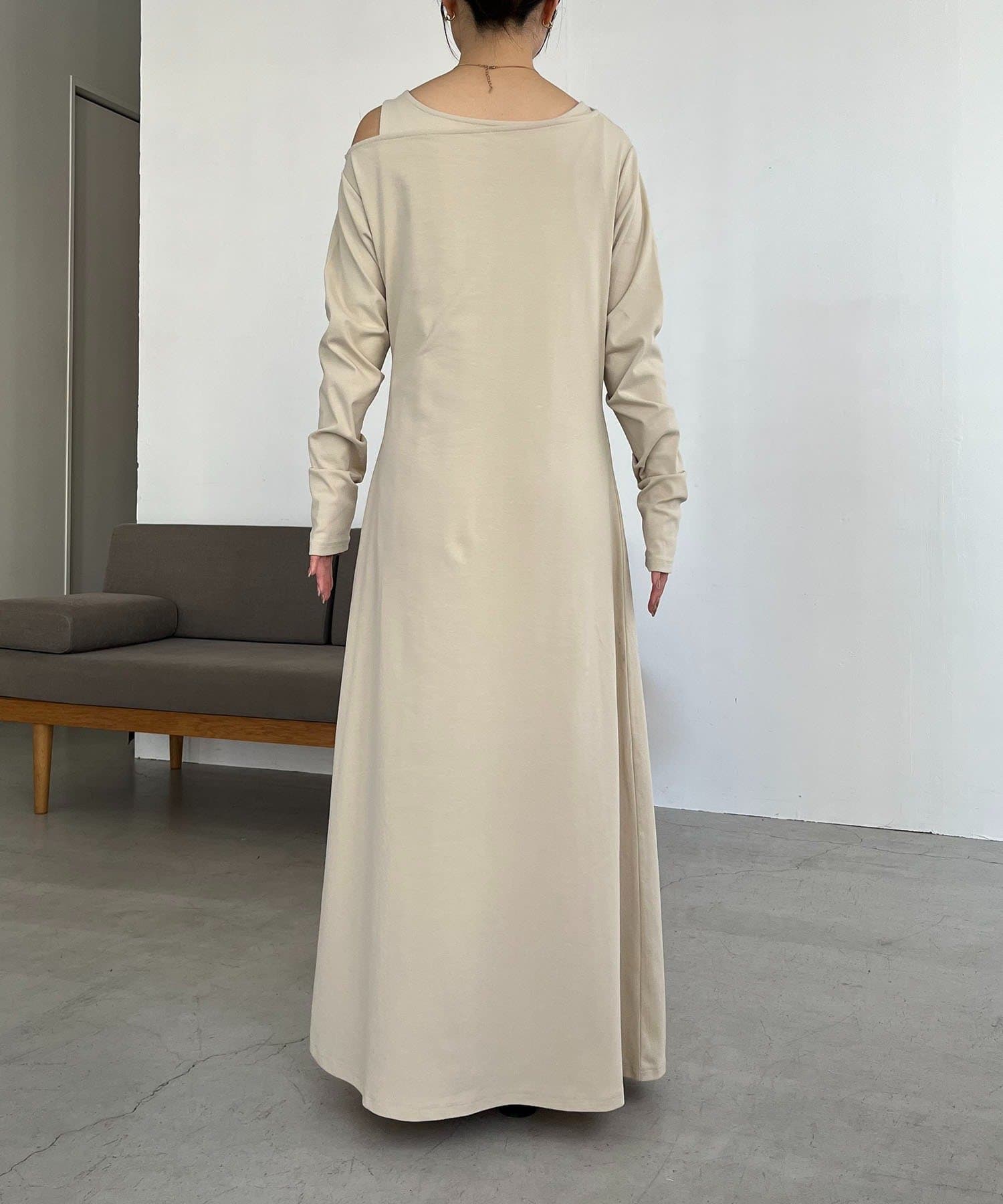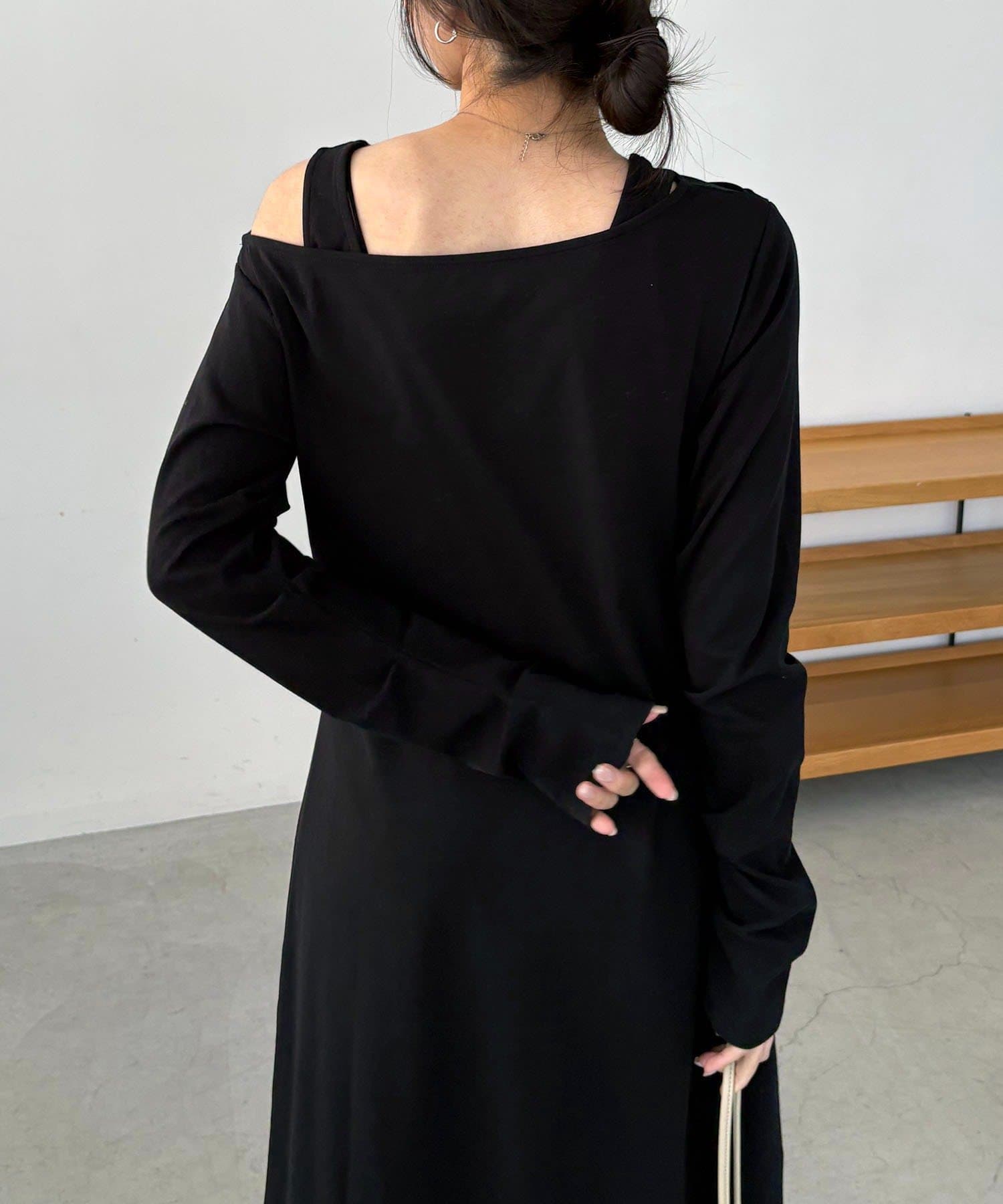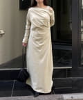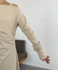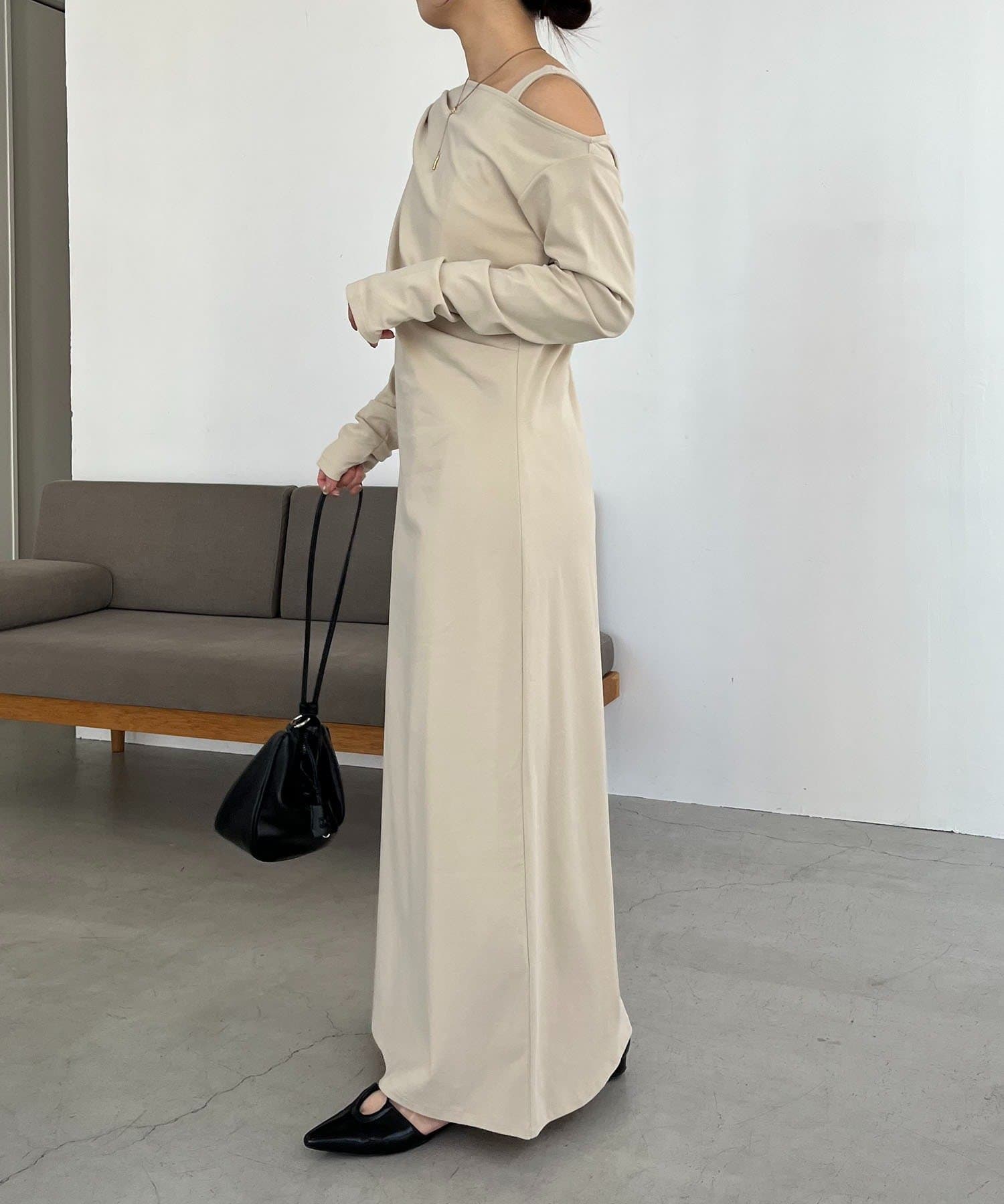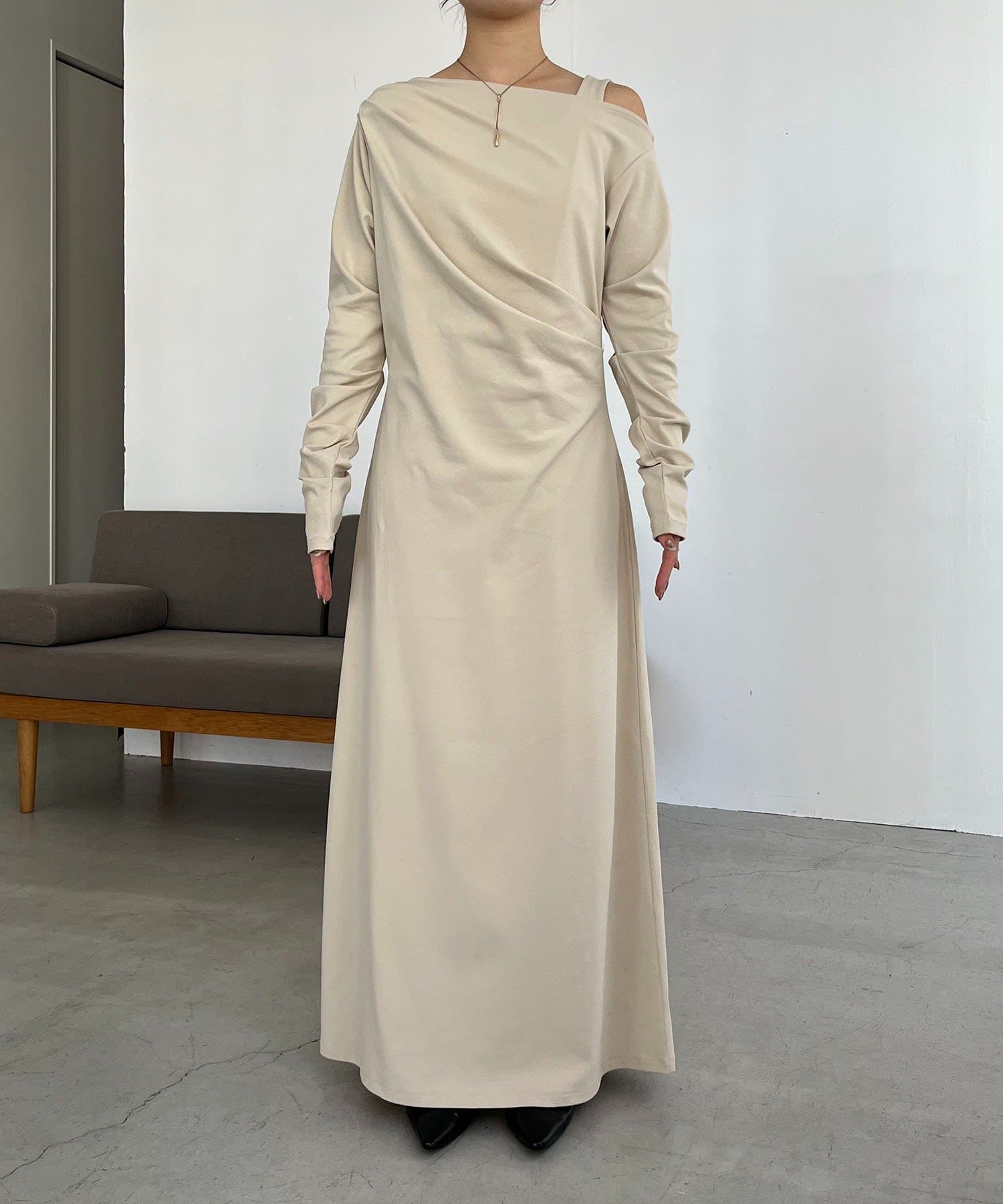 視線を惹きつけるアシンメトリーな肩周りが大人な印象