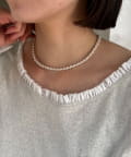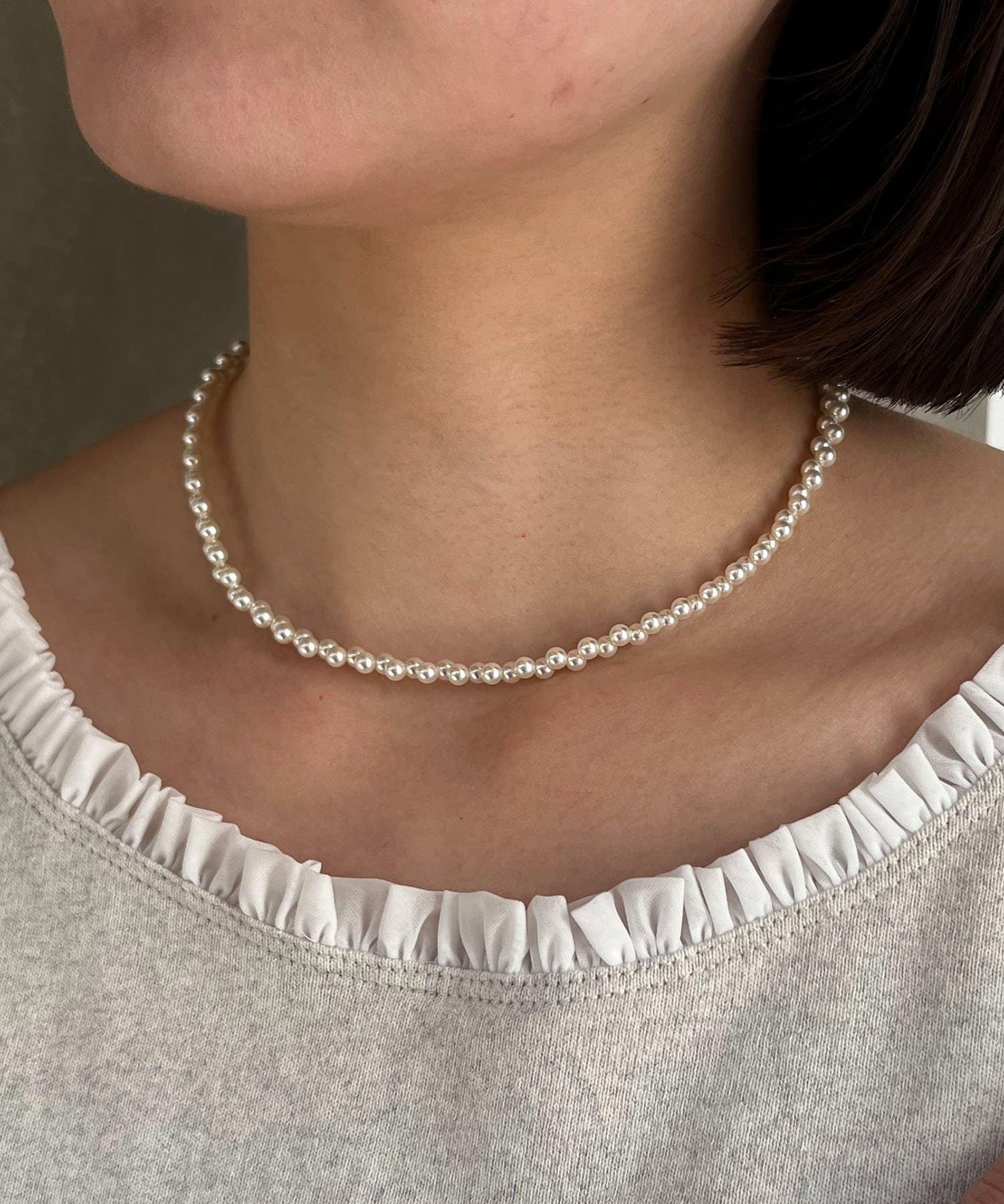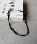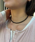 パールやブラックのビーズを交互にずらして並べた、シンプルながらも目を惹くネックレス。