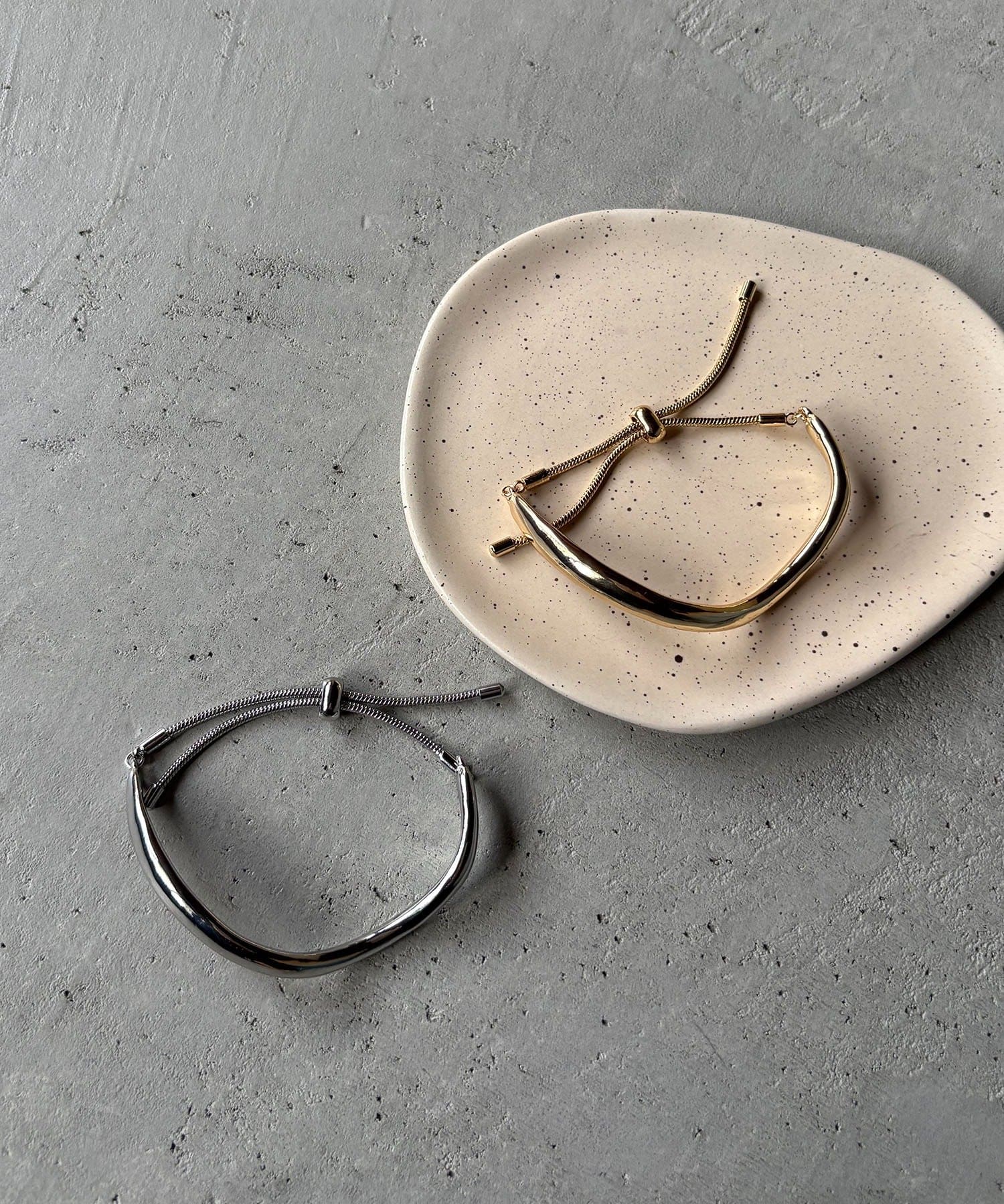 優美なメタルラインにスネークチェーンを組み合わせたバングルは、