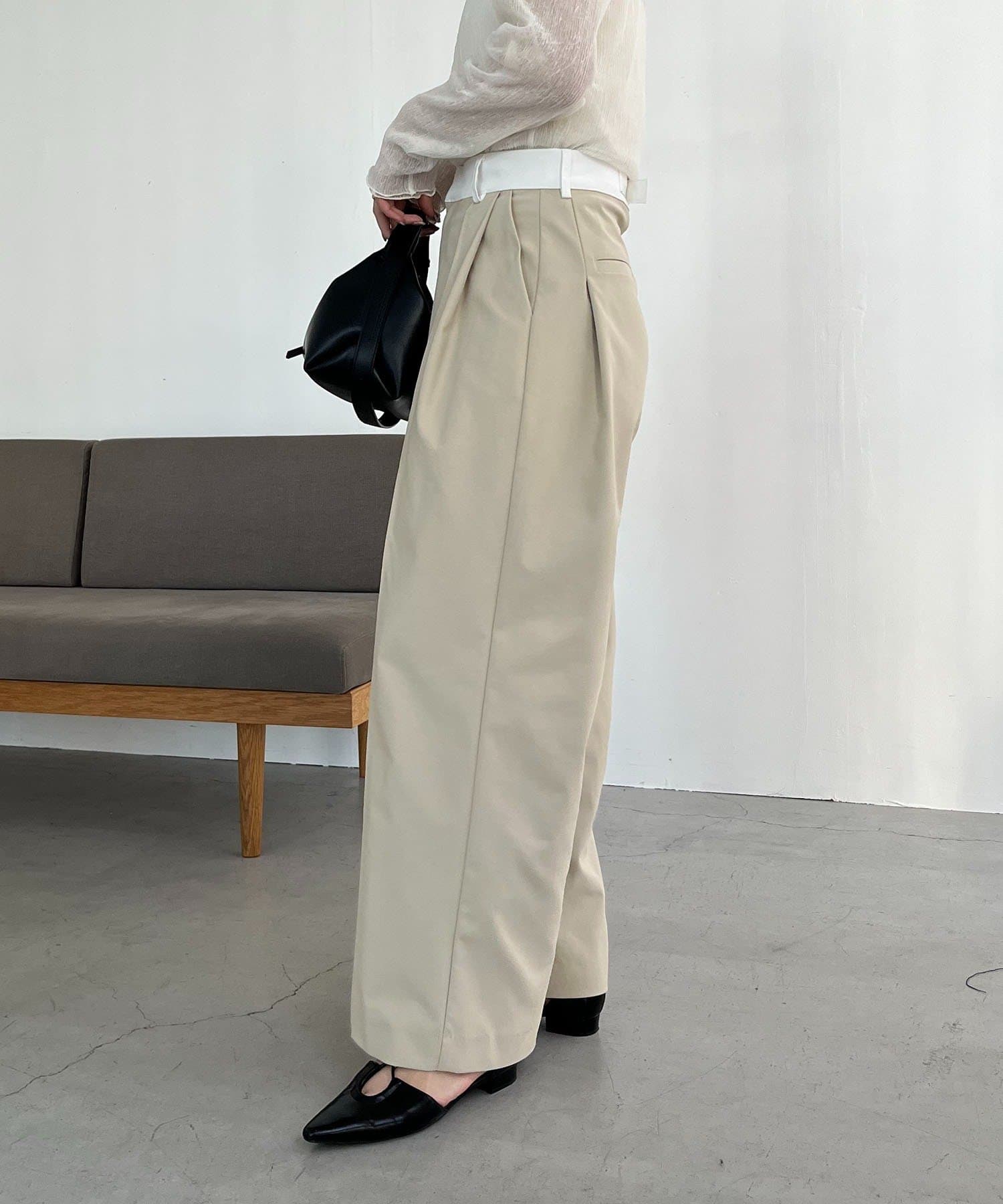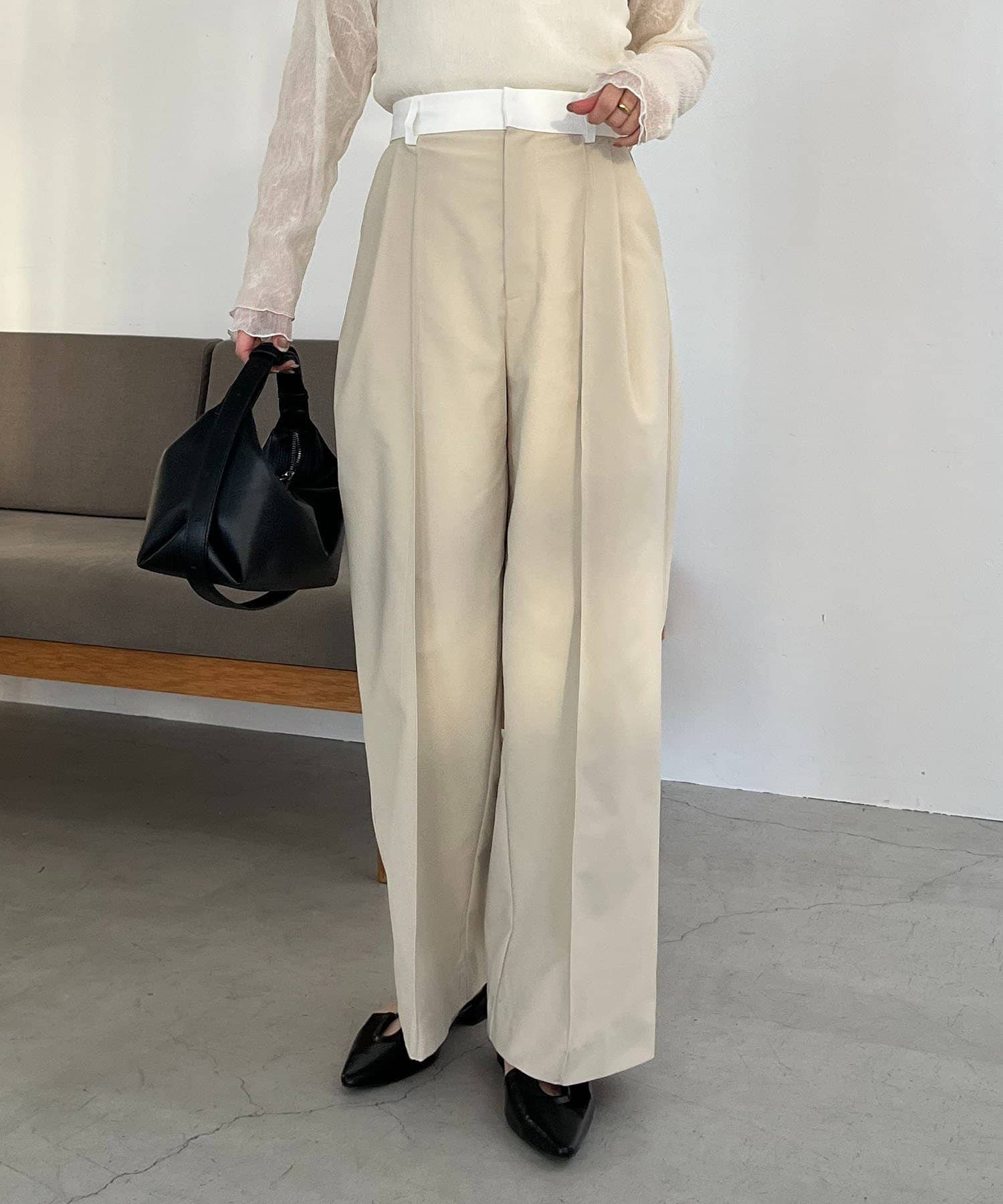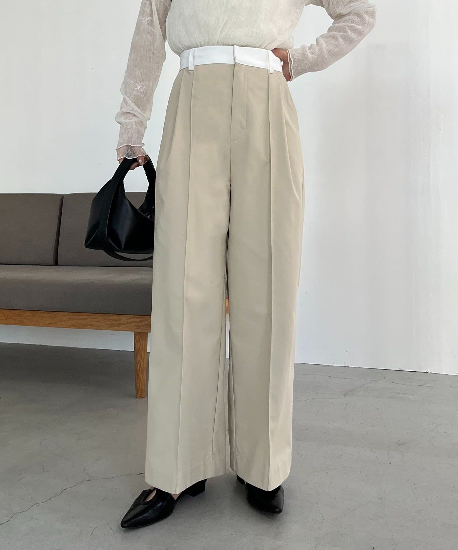 ウエストベルトが配色に切り替わった着映えするワイドパンツ