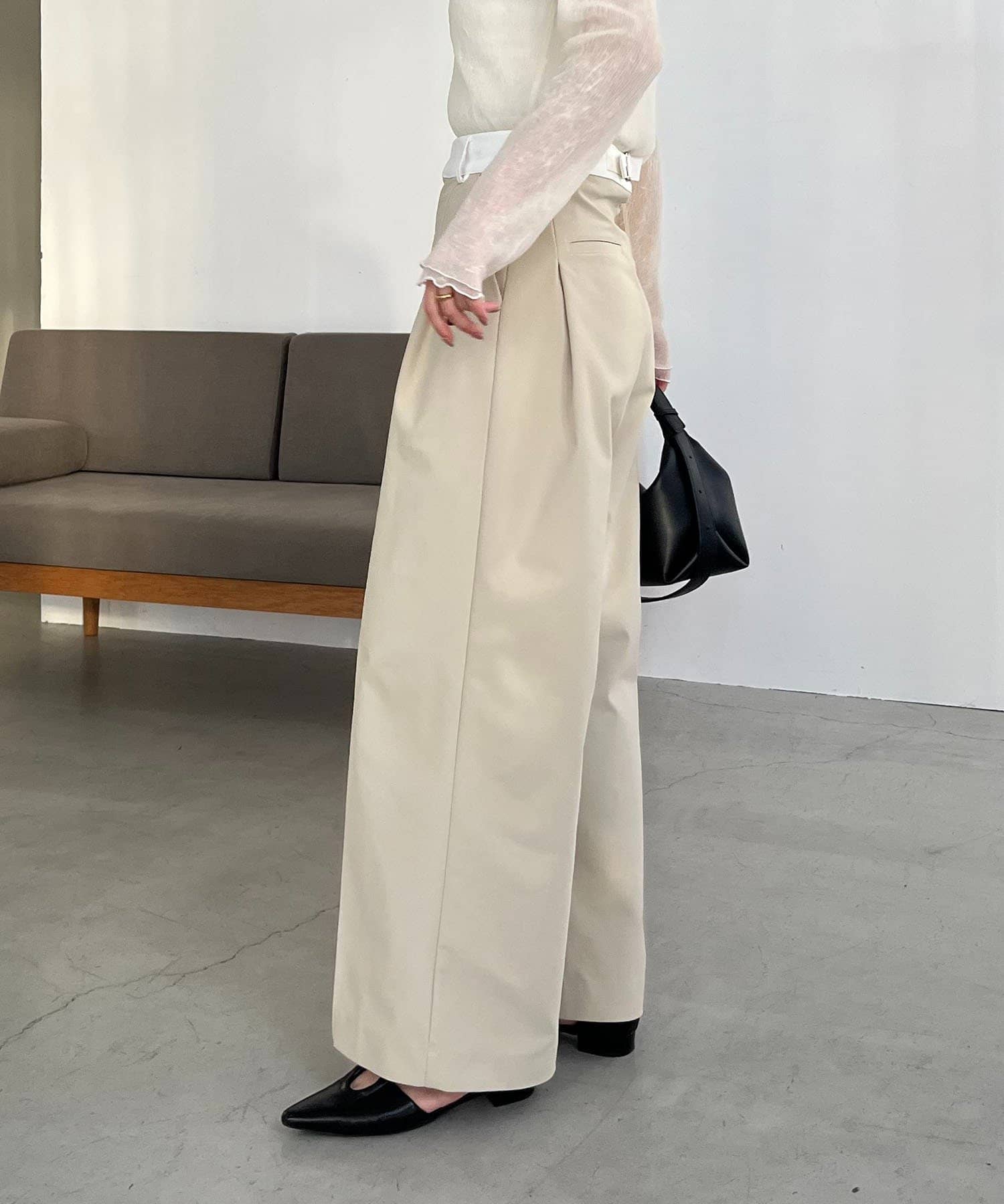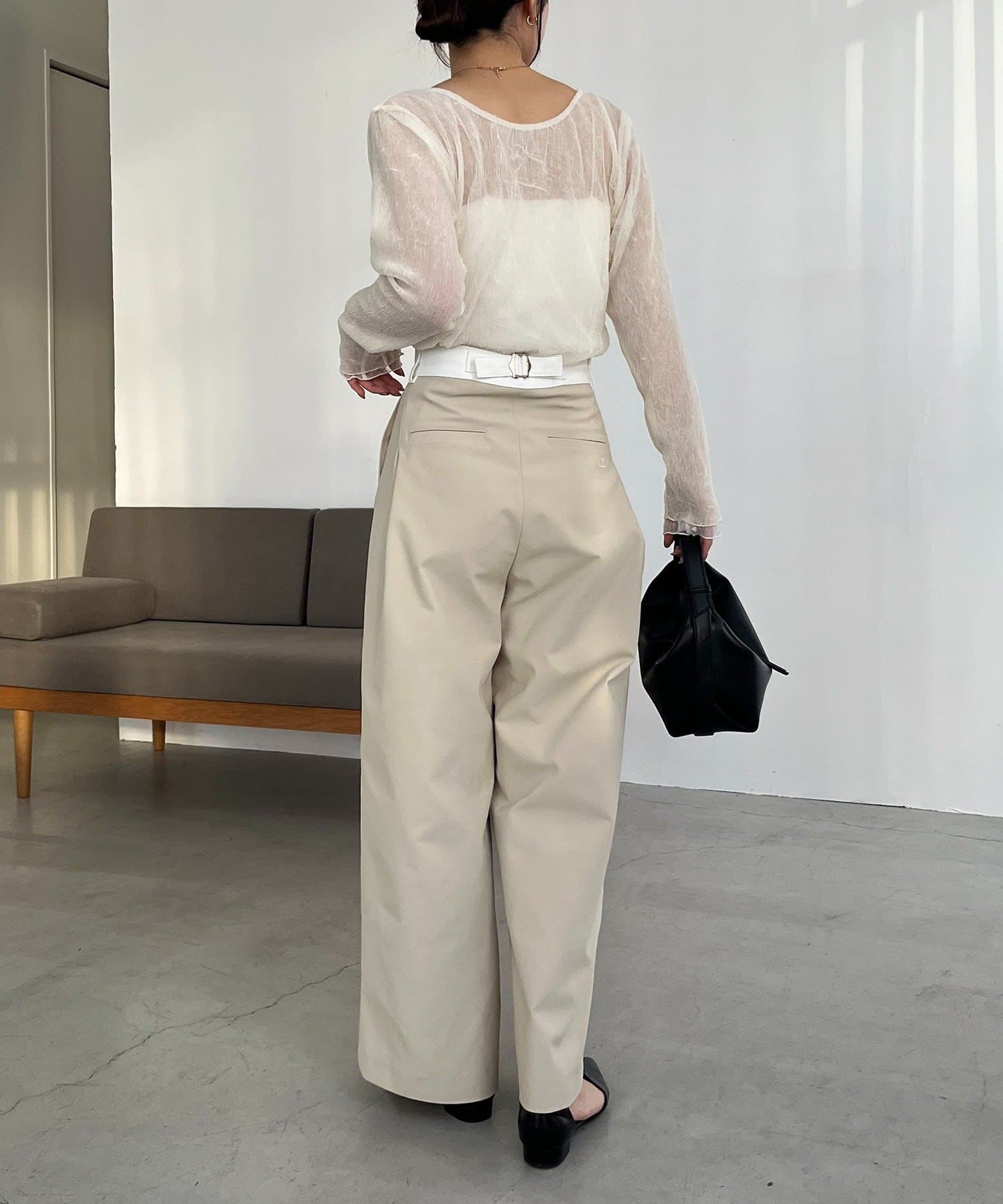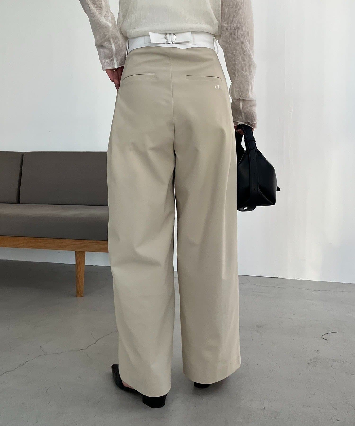 ウエストベルトが配色に切り替わった着映えするワイドパンツ