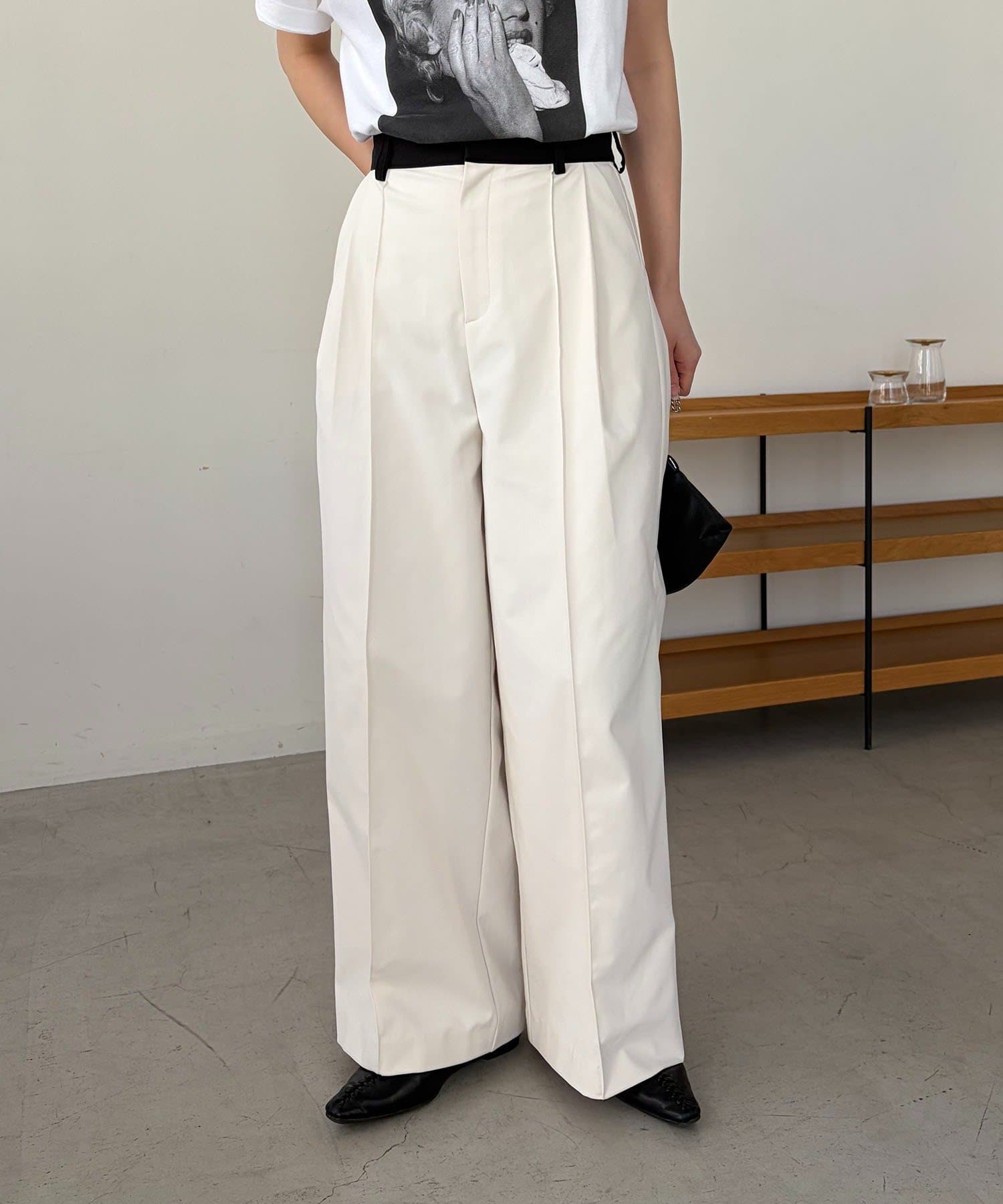 ウエストベルトが配色に切り替わった着映えするワイドパンツ