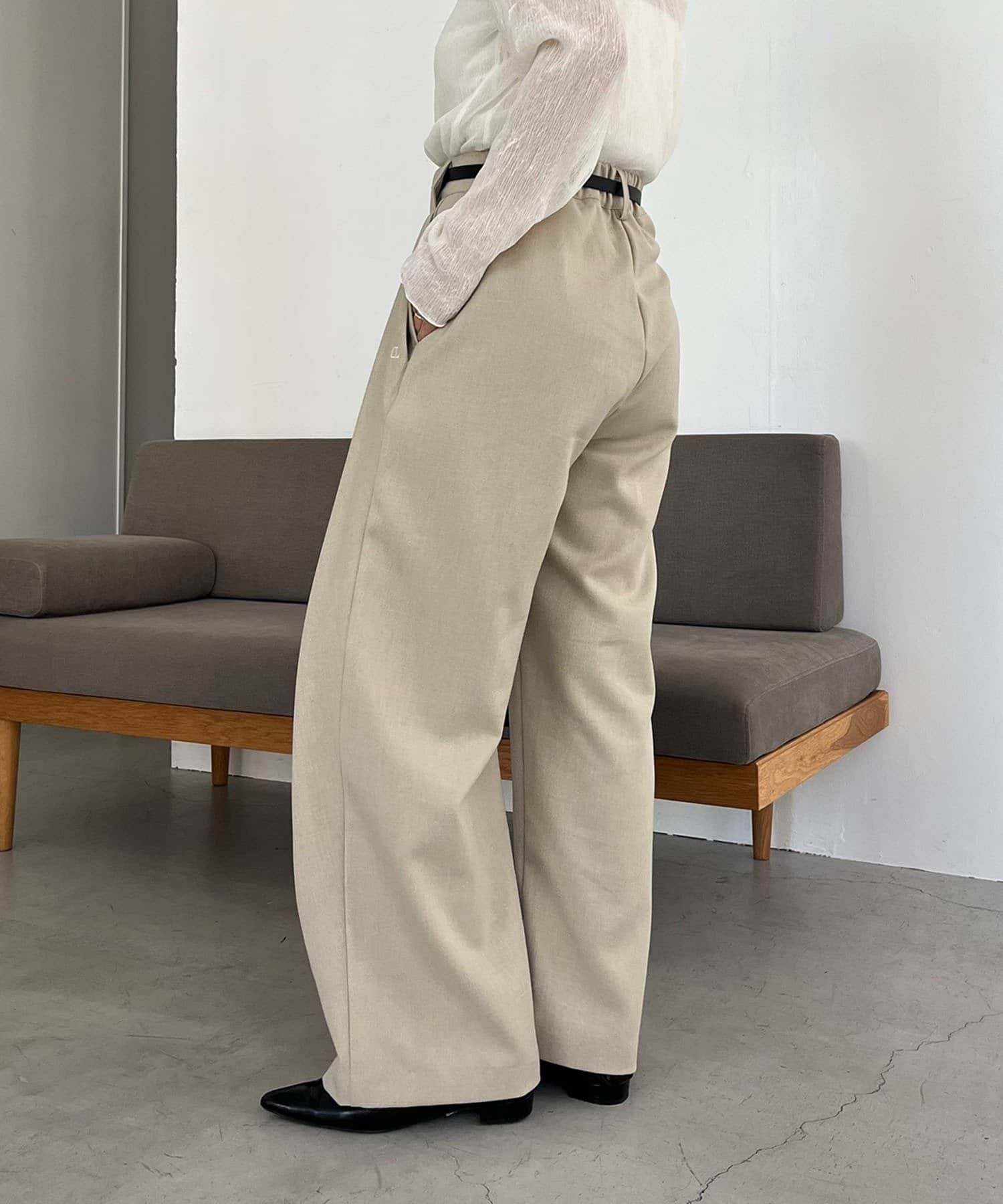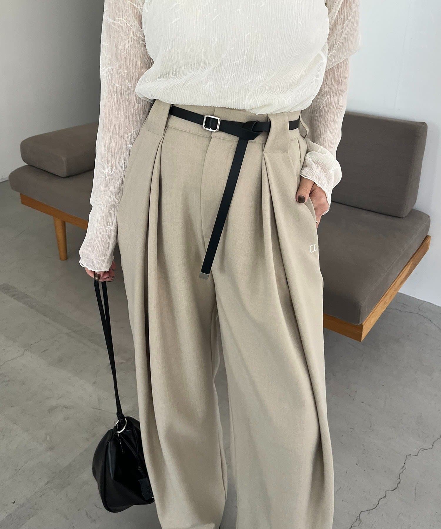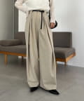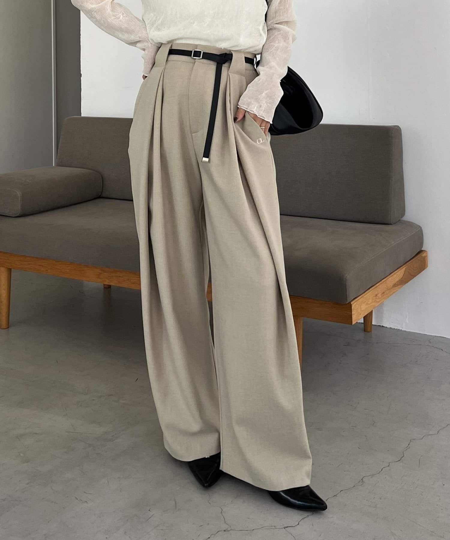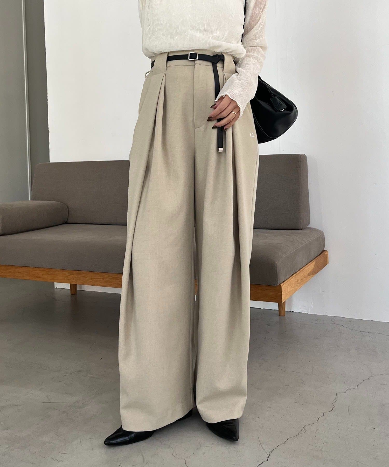 〈C.L〉レザーベルト付変形タックパンツ