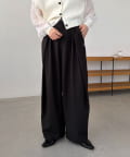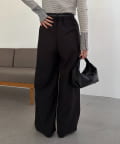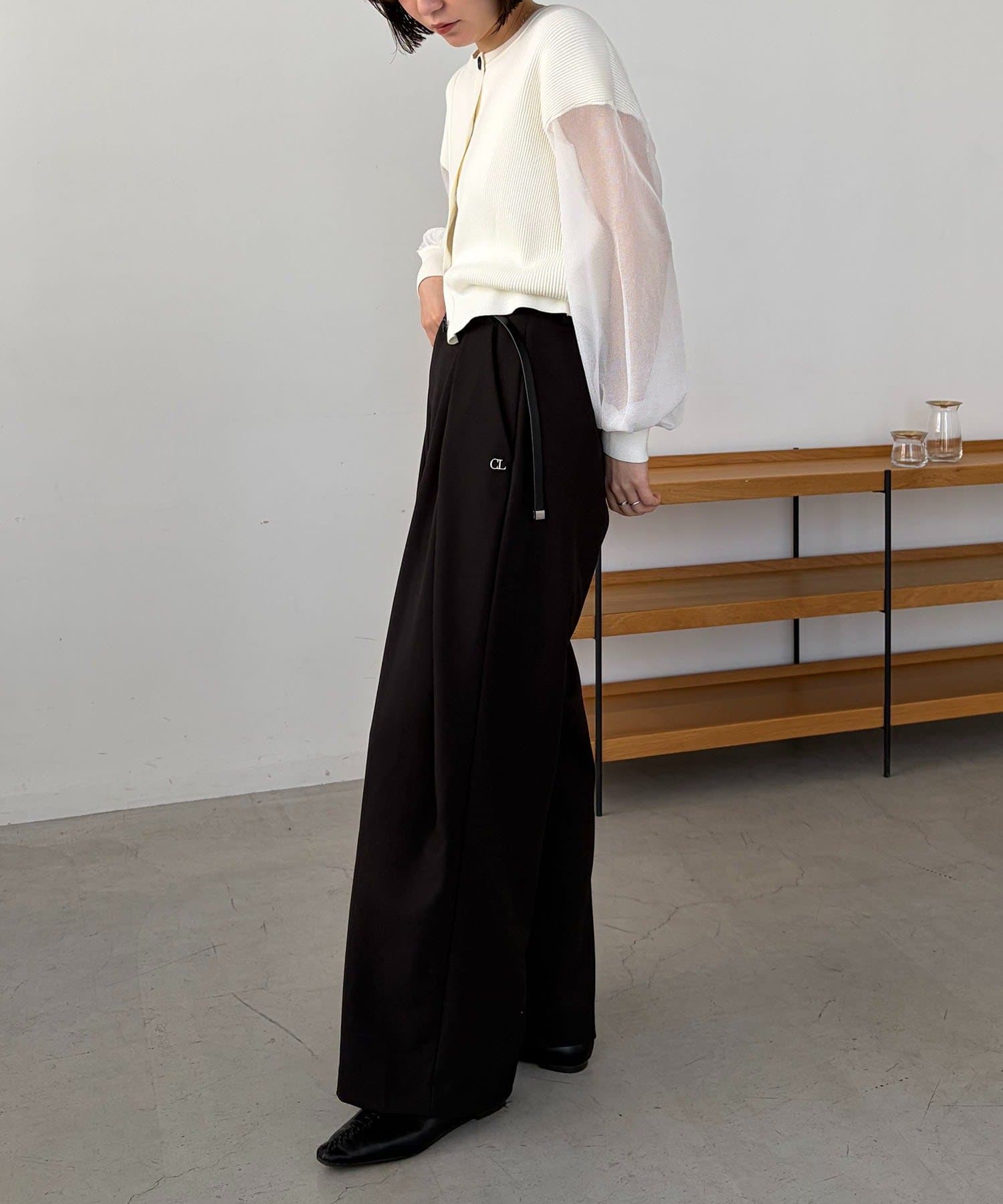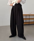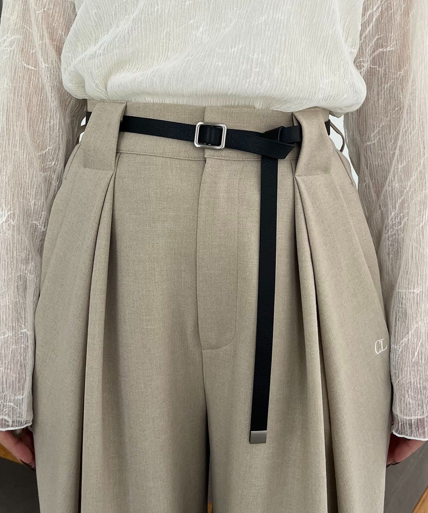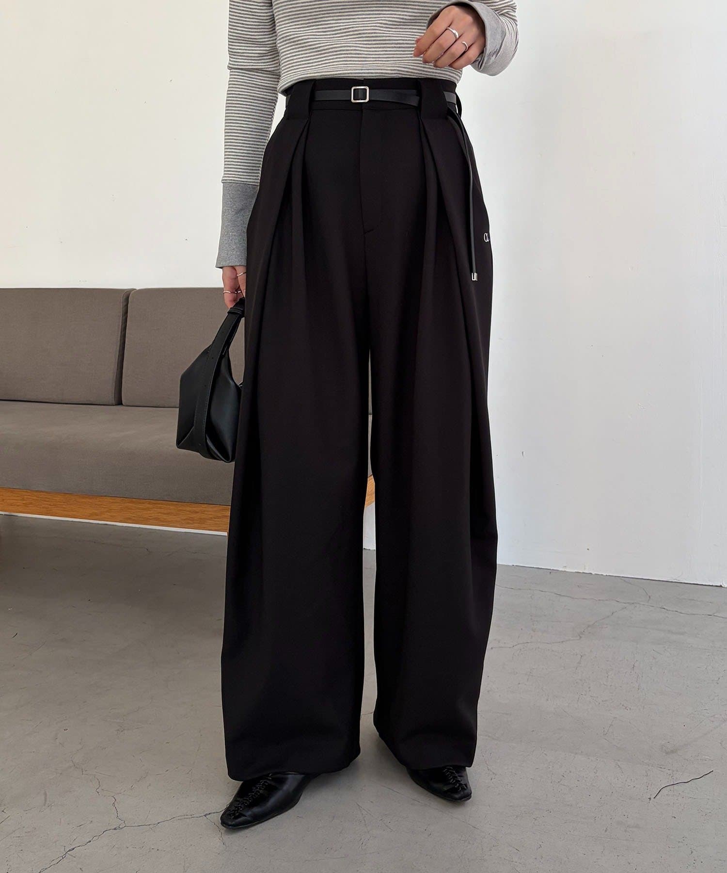 〈C.L〉レザーベルト付変形タックパンツ