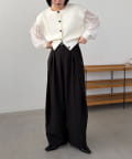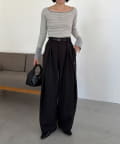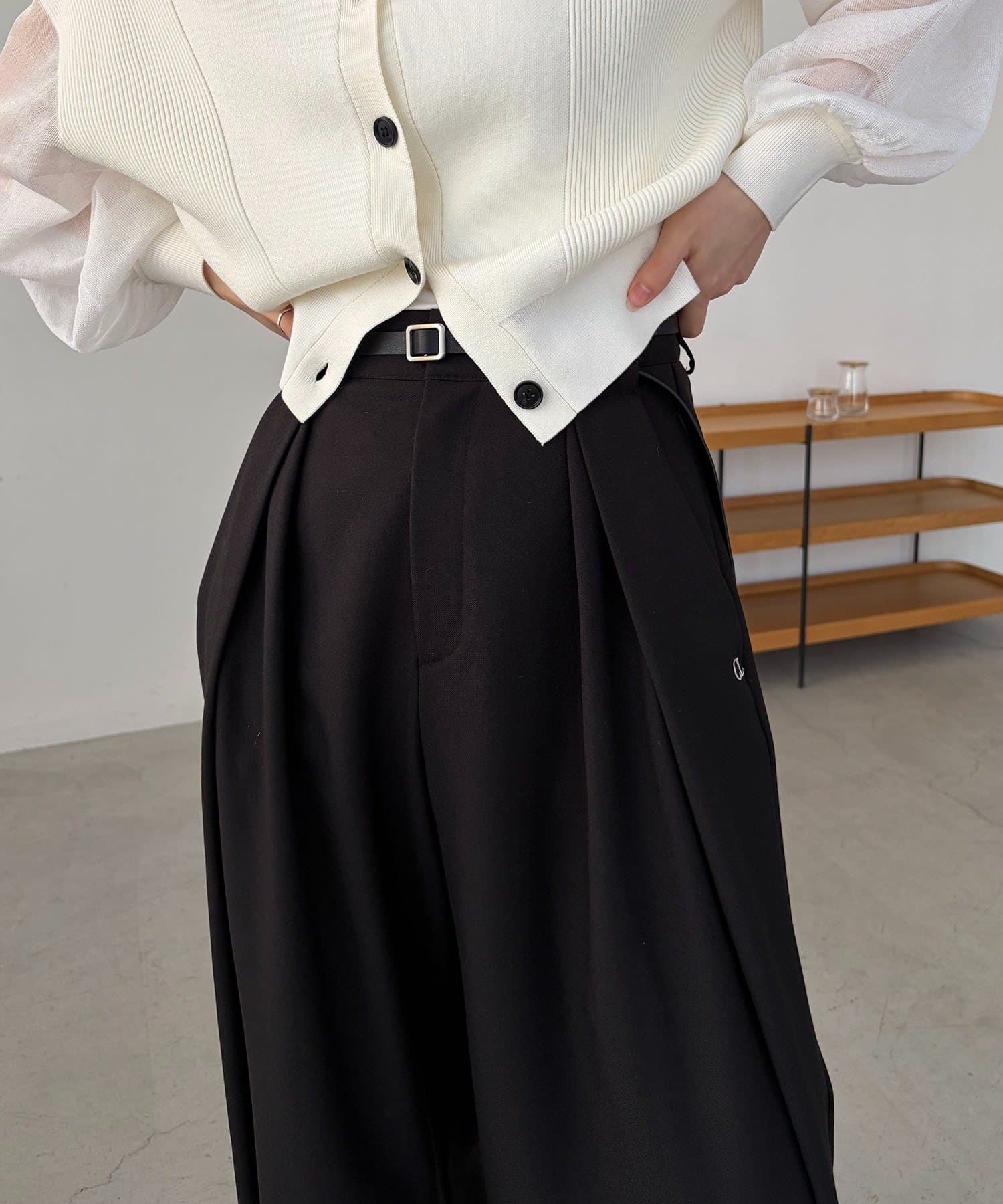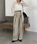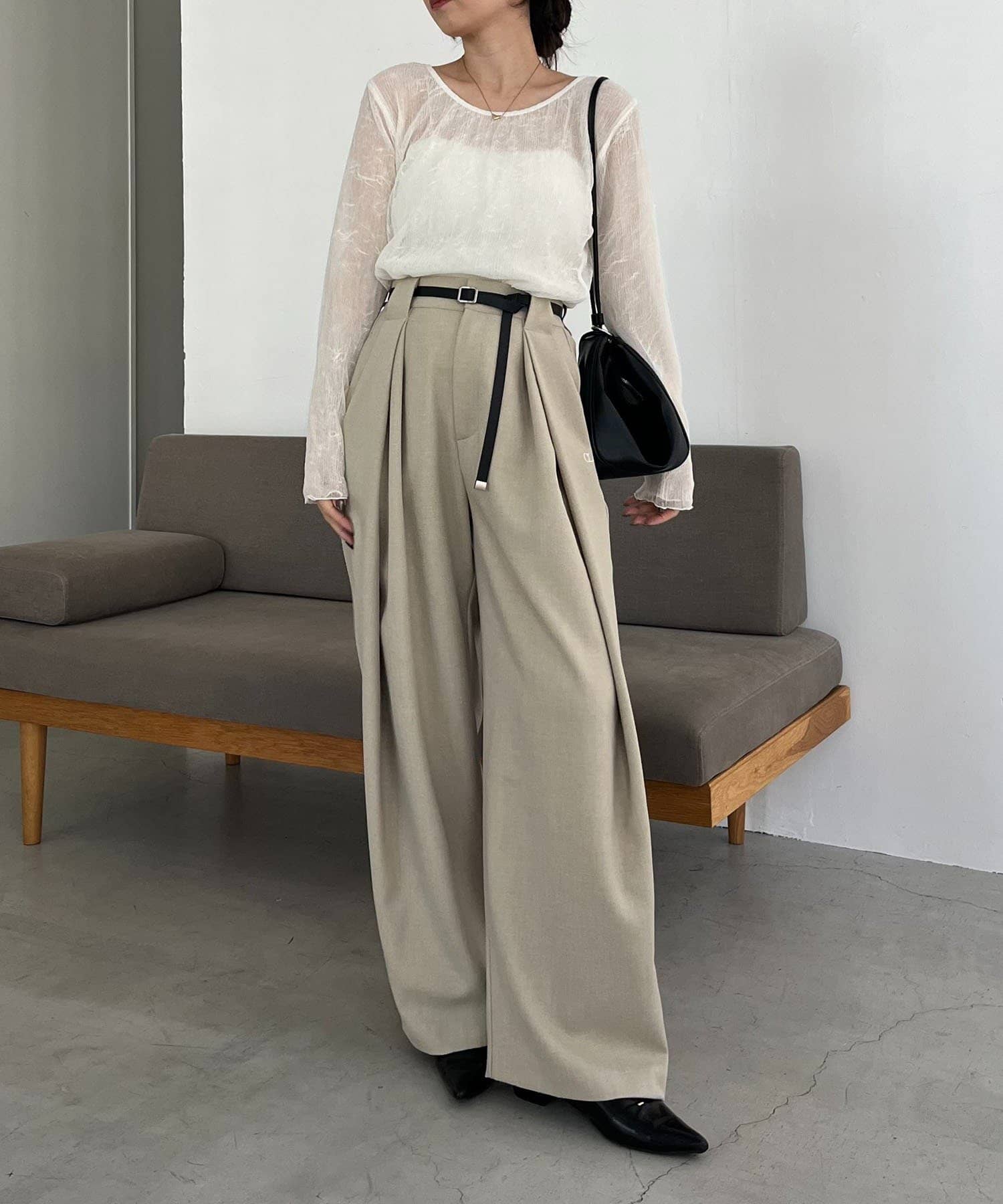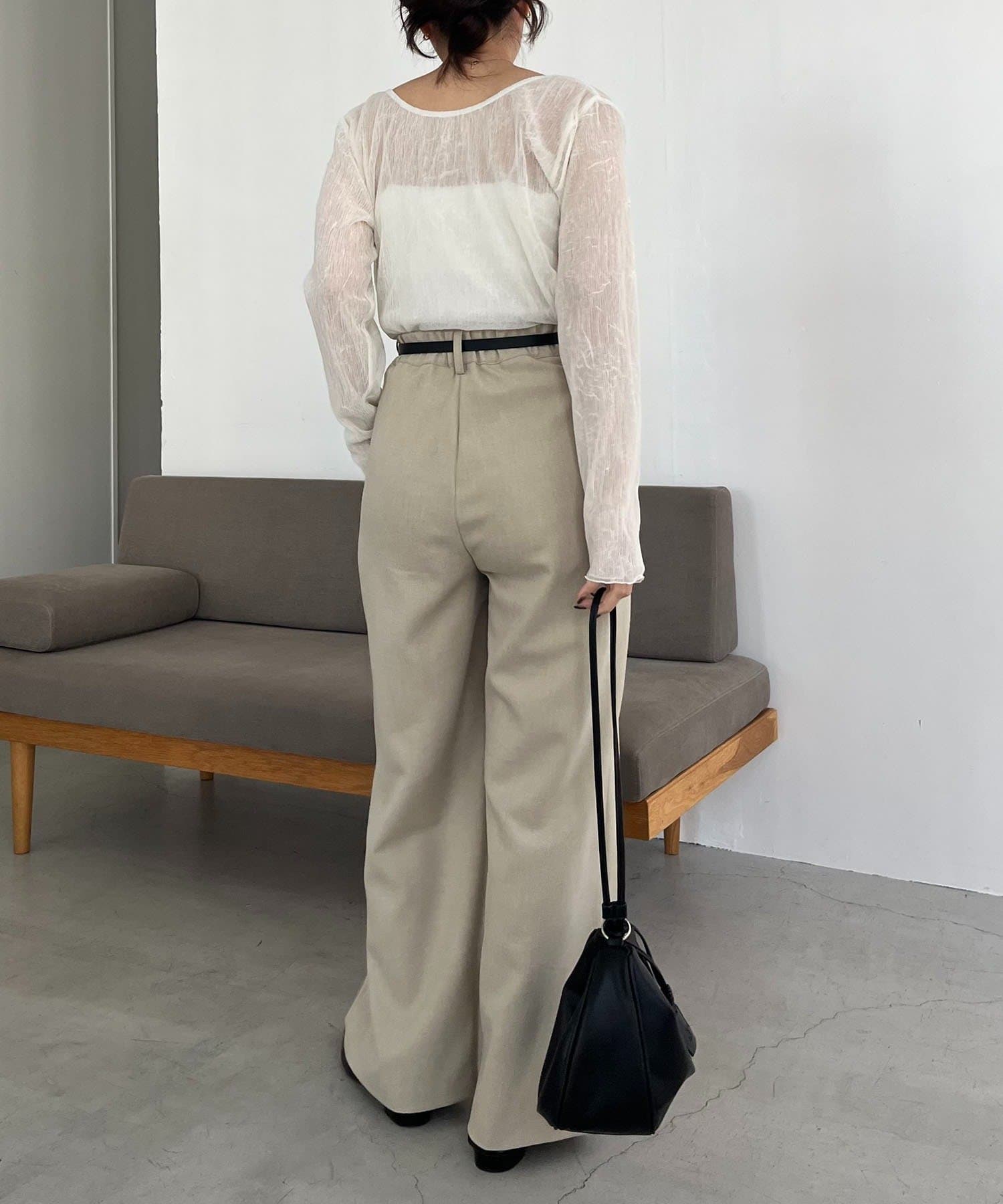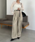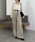 ・長めの細ベルトがセットになったワイドパンツ