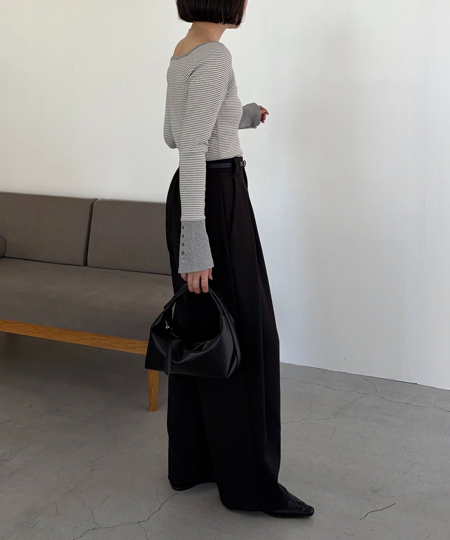 【ブラック着用アイテム②】ボーダー袖ボタンロンT
