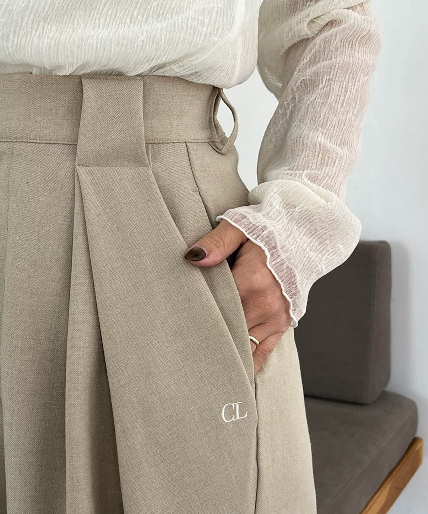 • CAPRICIEUX LE'MAGE(カプリシュレマージュ) 〈C.L〉レザーベルト付変形タックパンツ