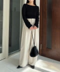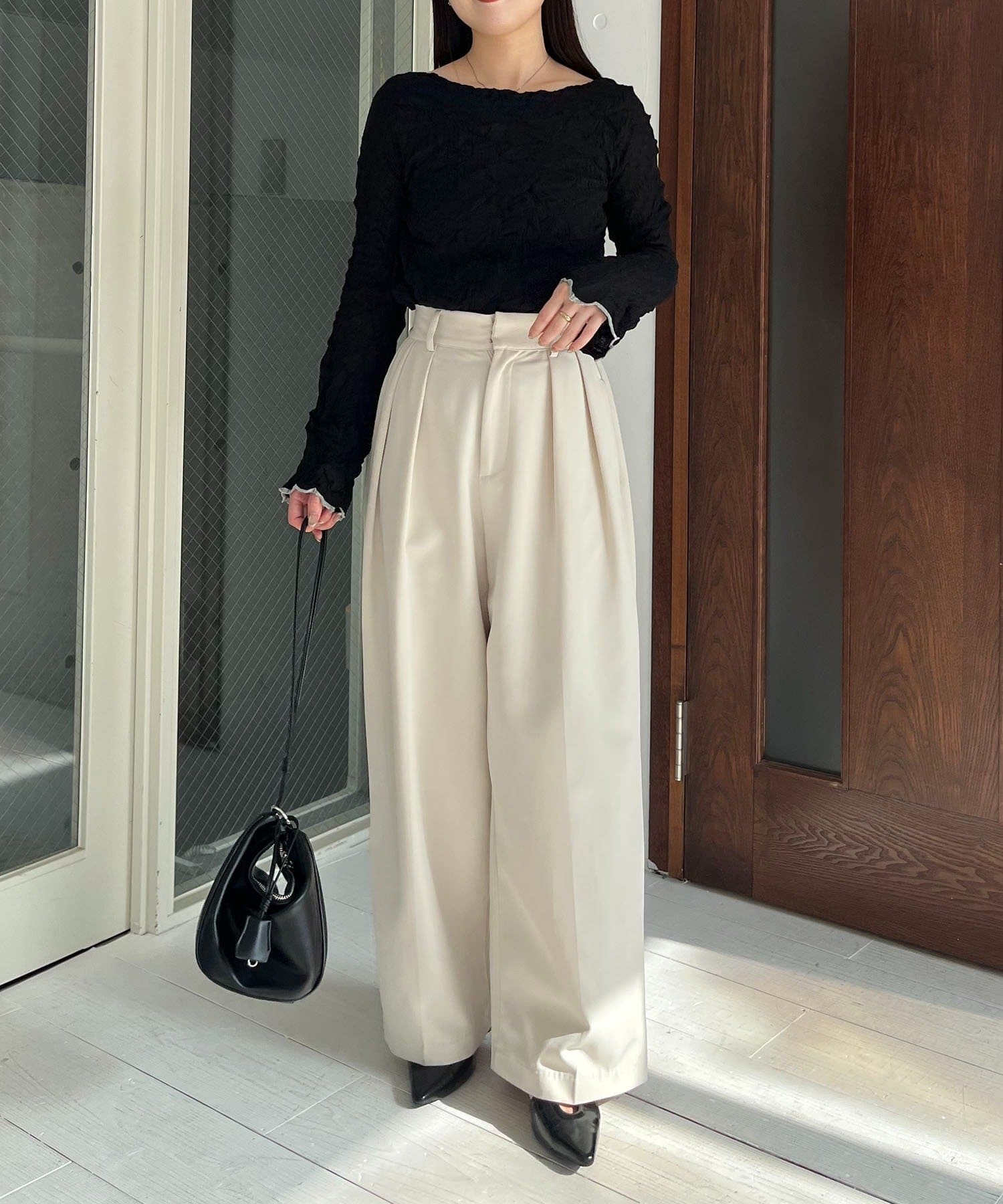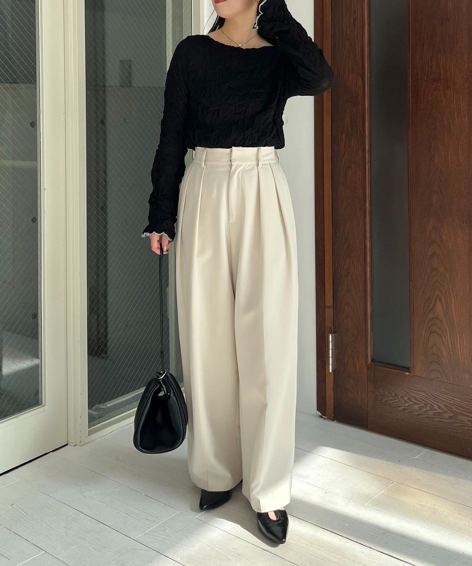 ・平面的な生地がふんわりと立体的になりこなれ感を演出