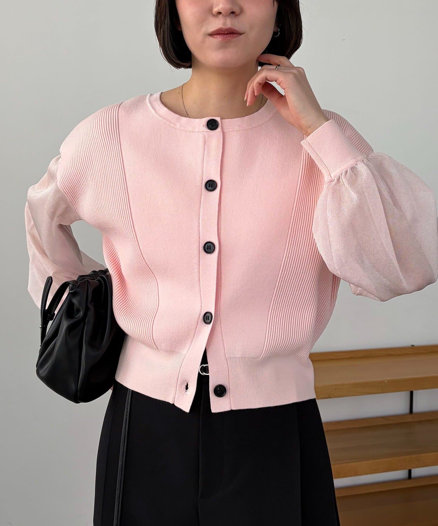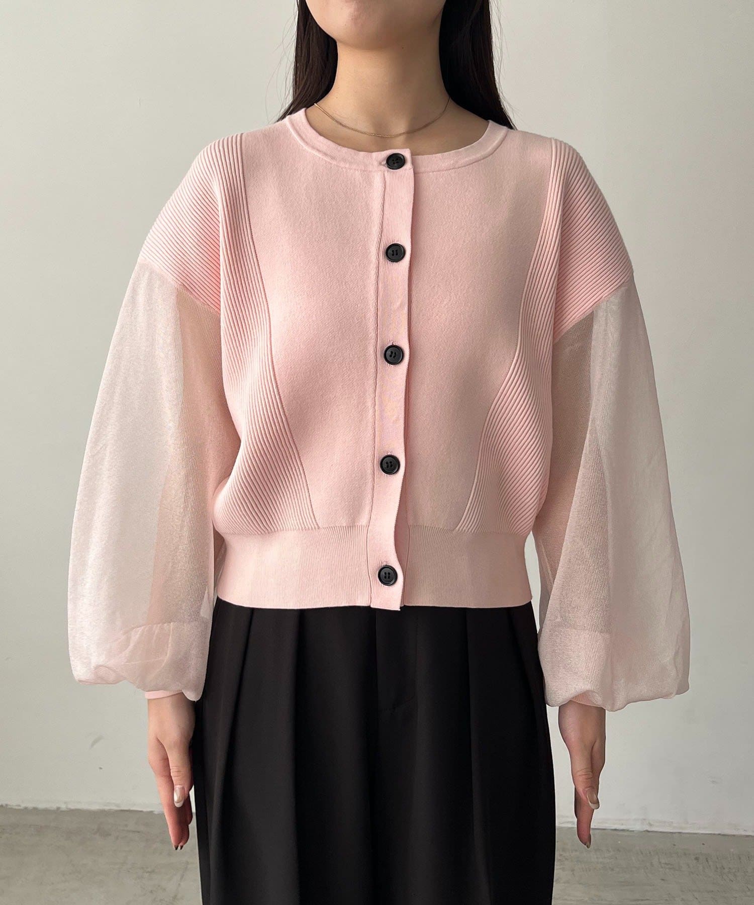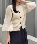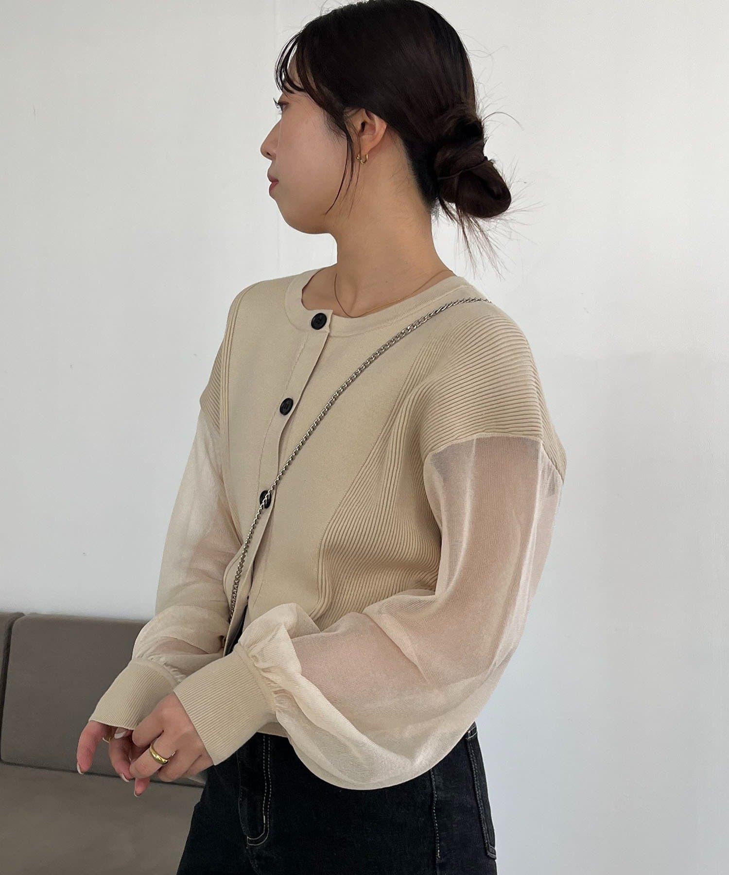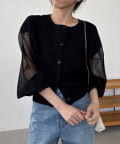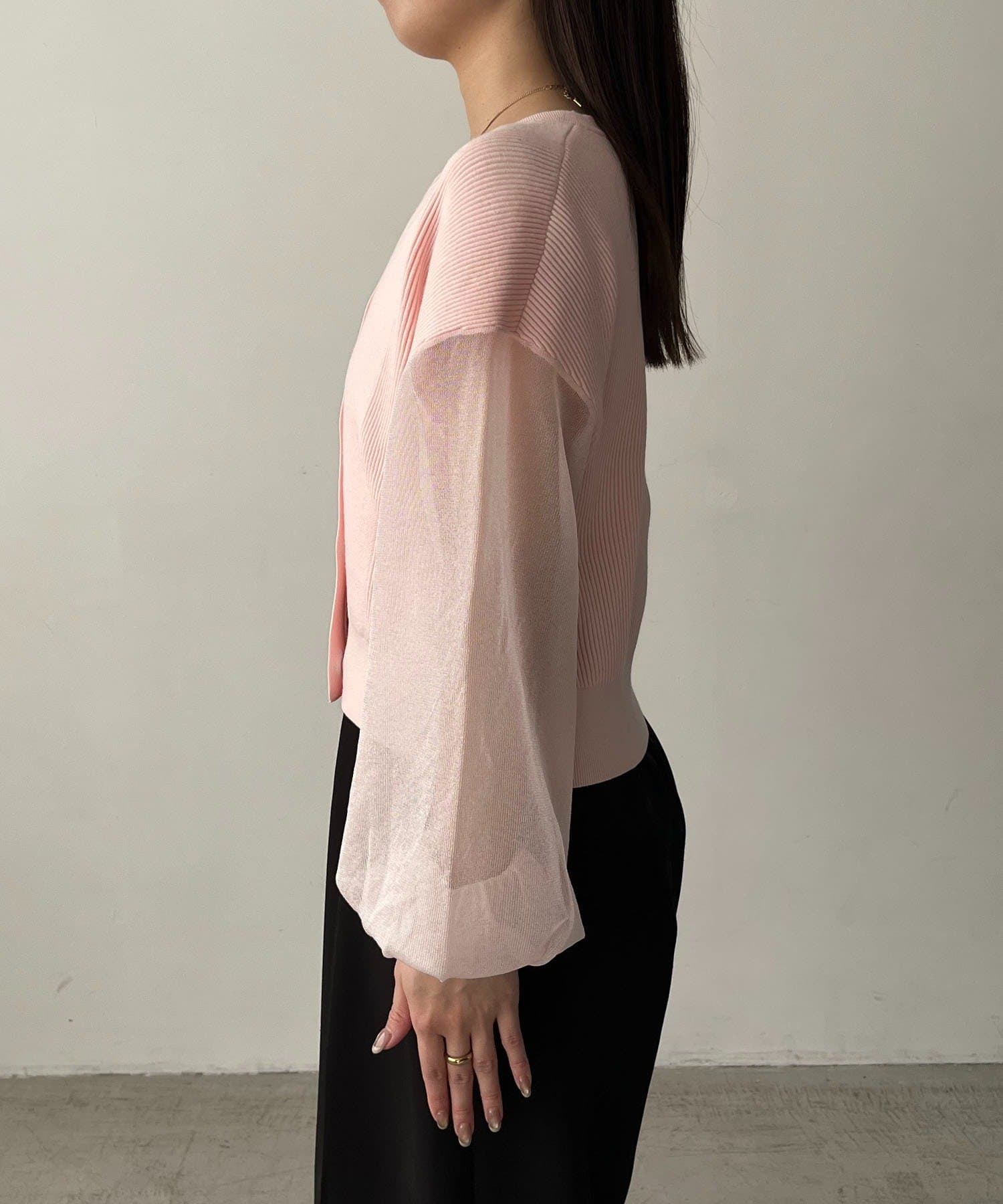袖がシアーに切り替わった春らしいカーディガン