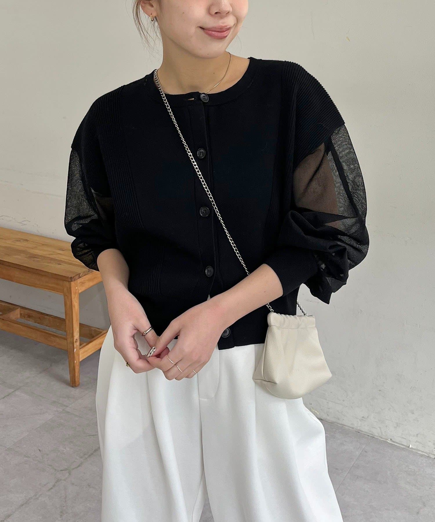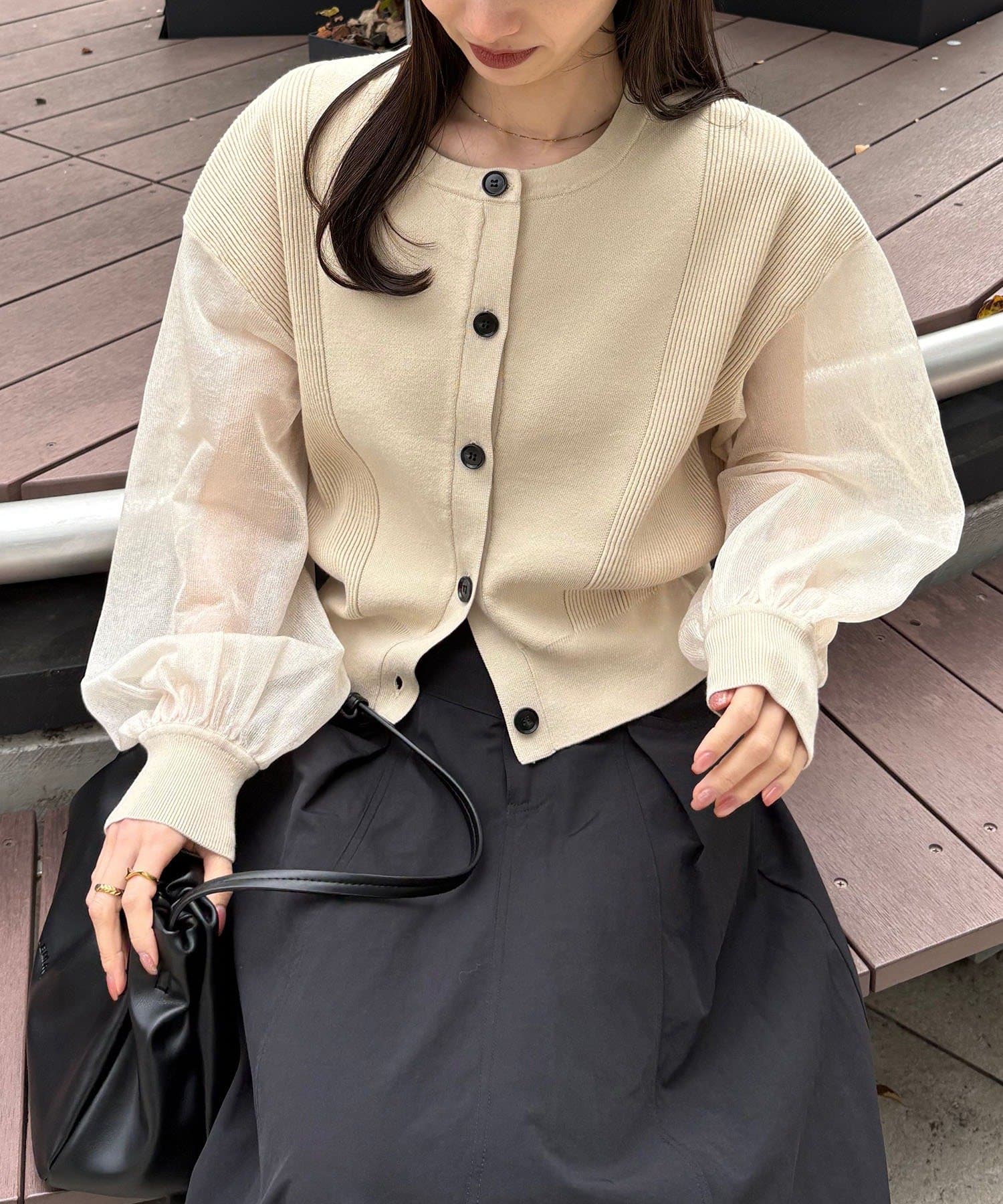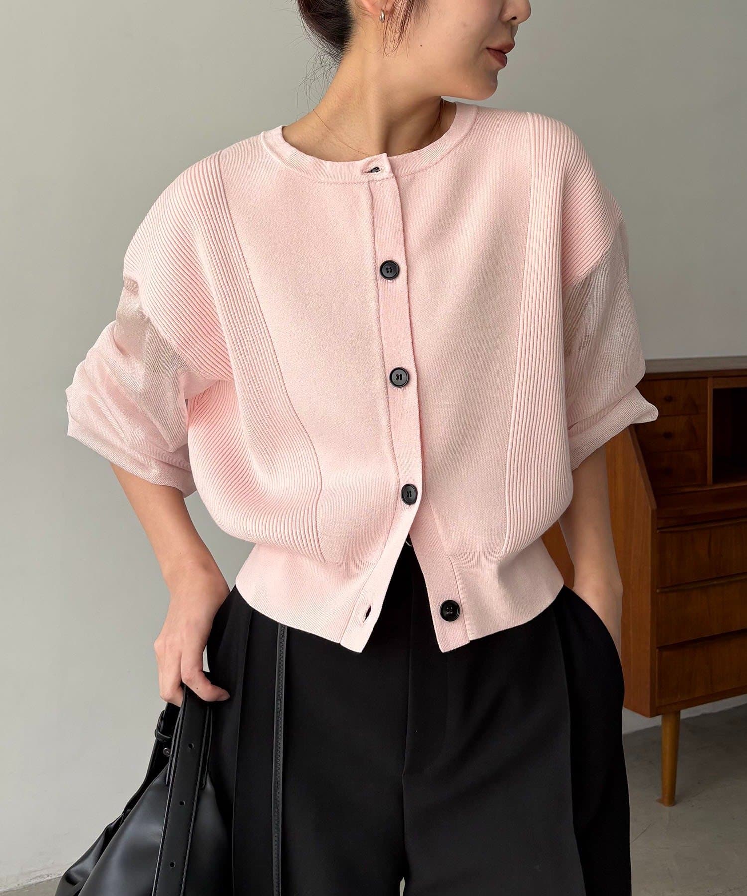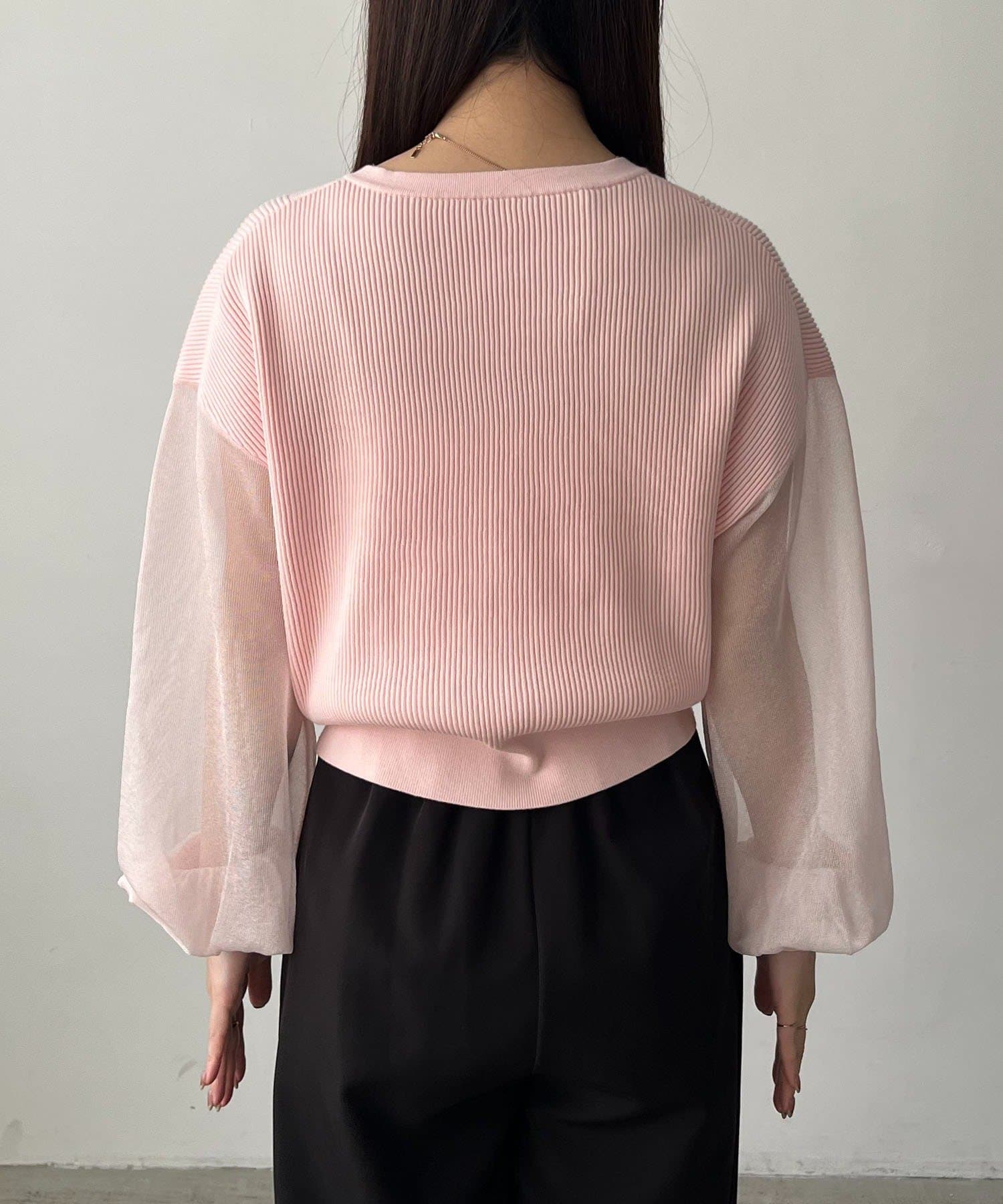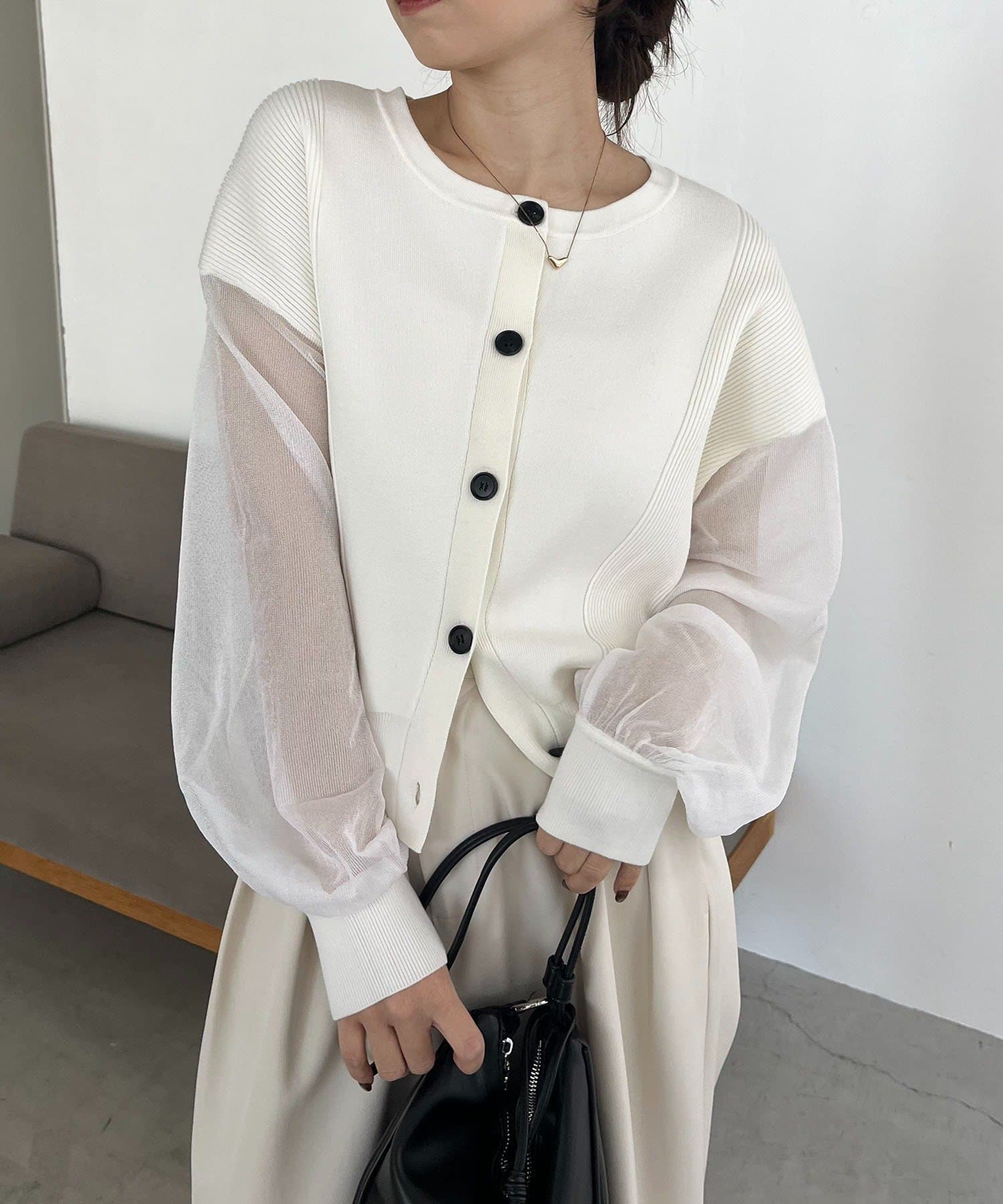 袖がシアーに切り替わった春らしいカーディガン
