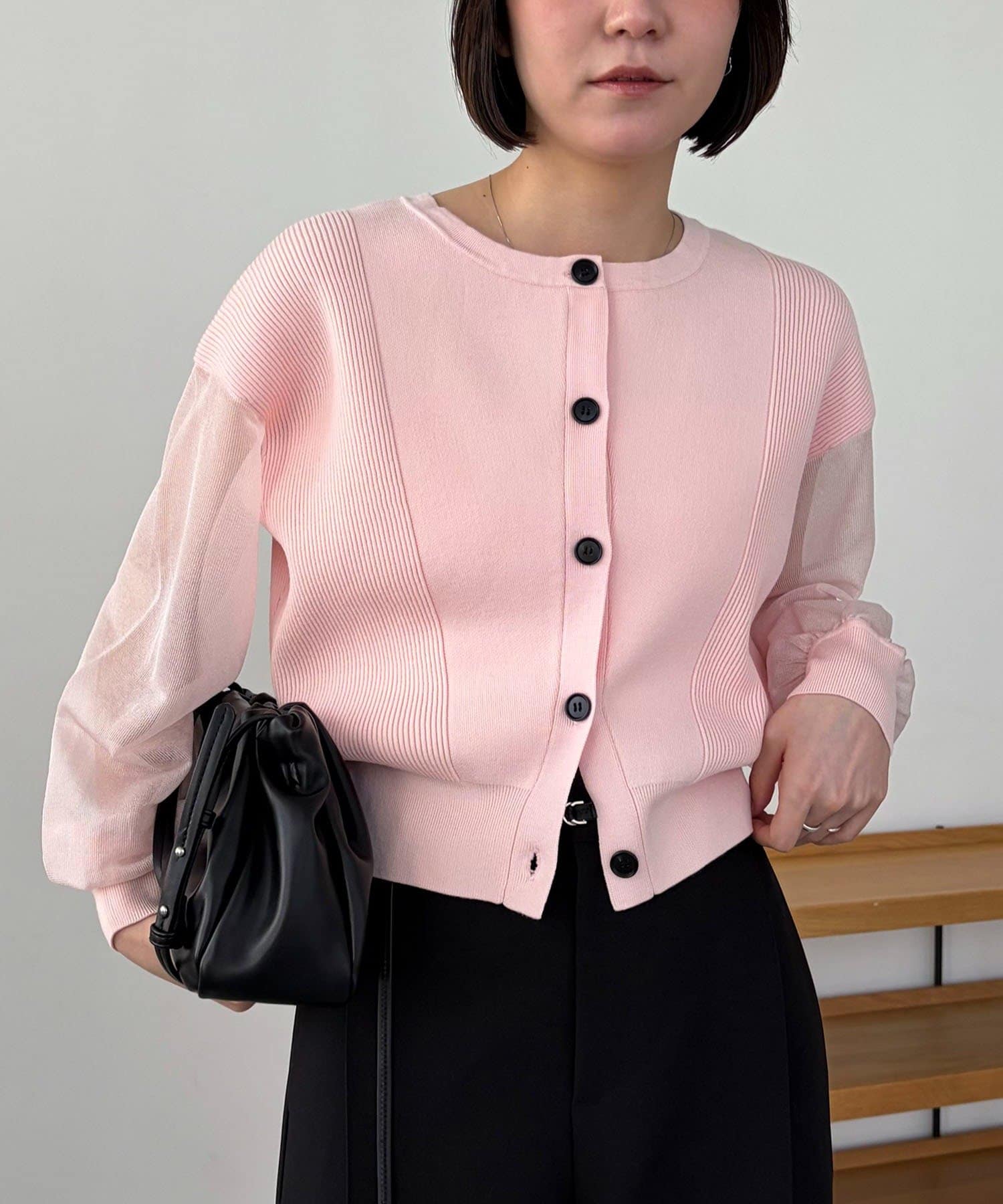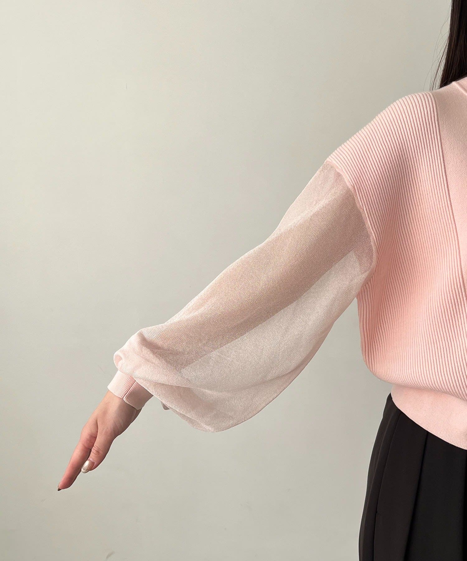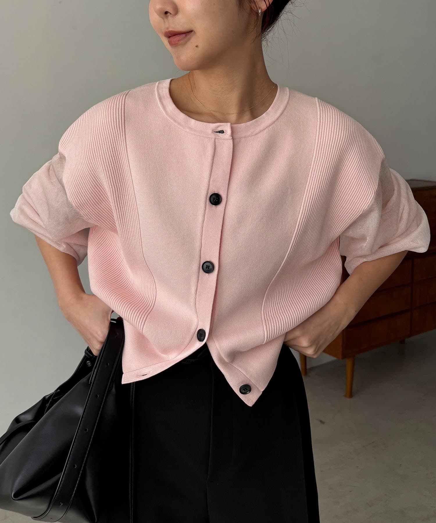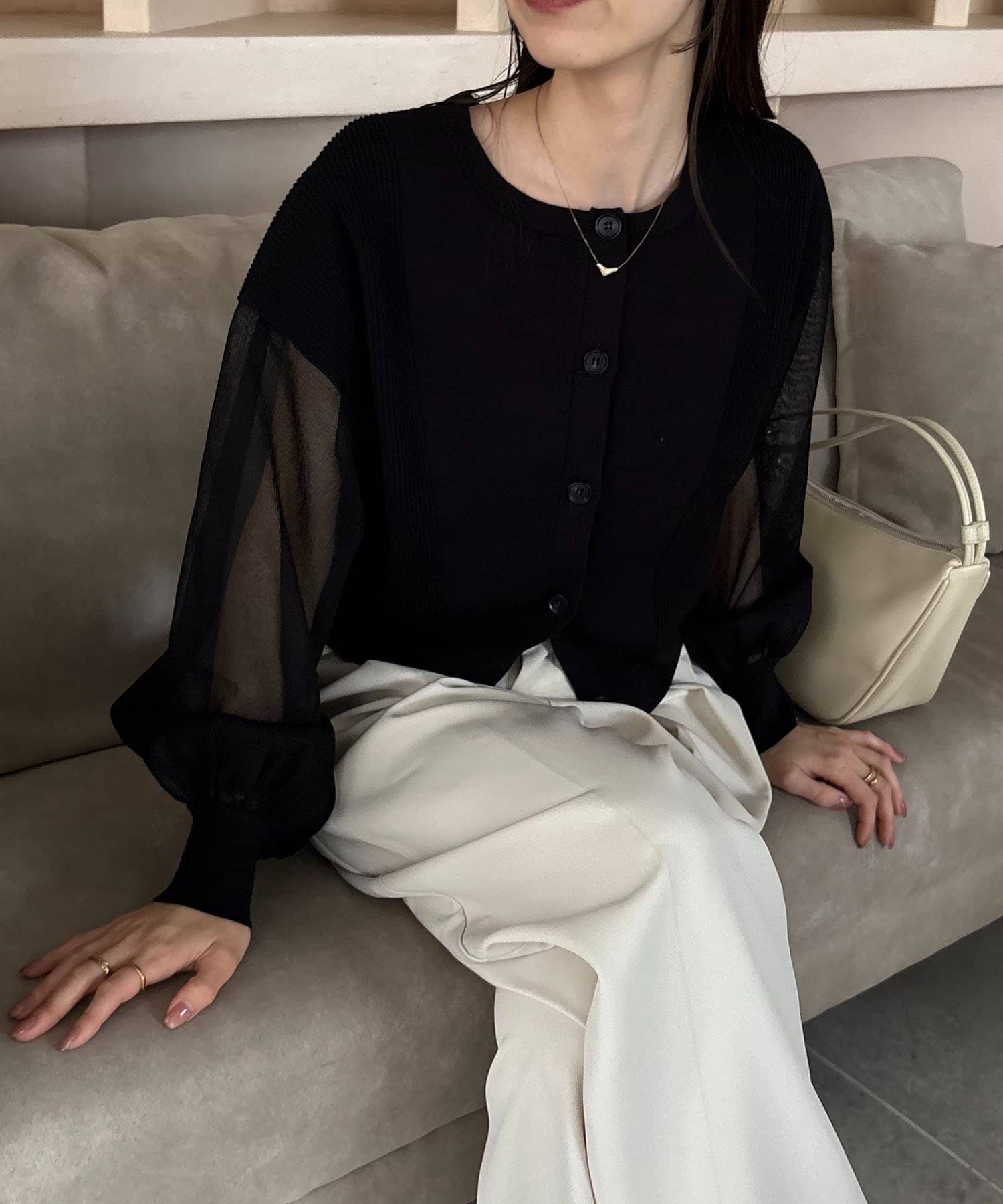 袖がシアーに切り替わった春らしいカーディガン
