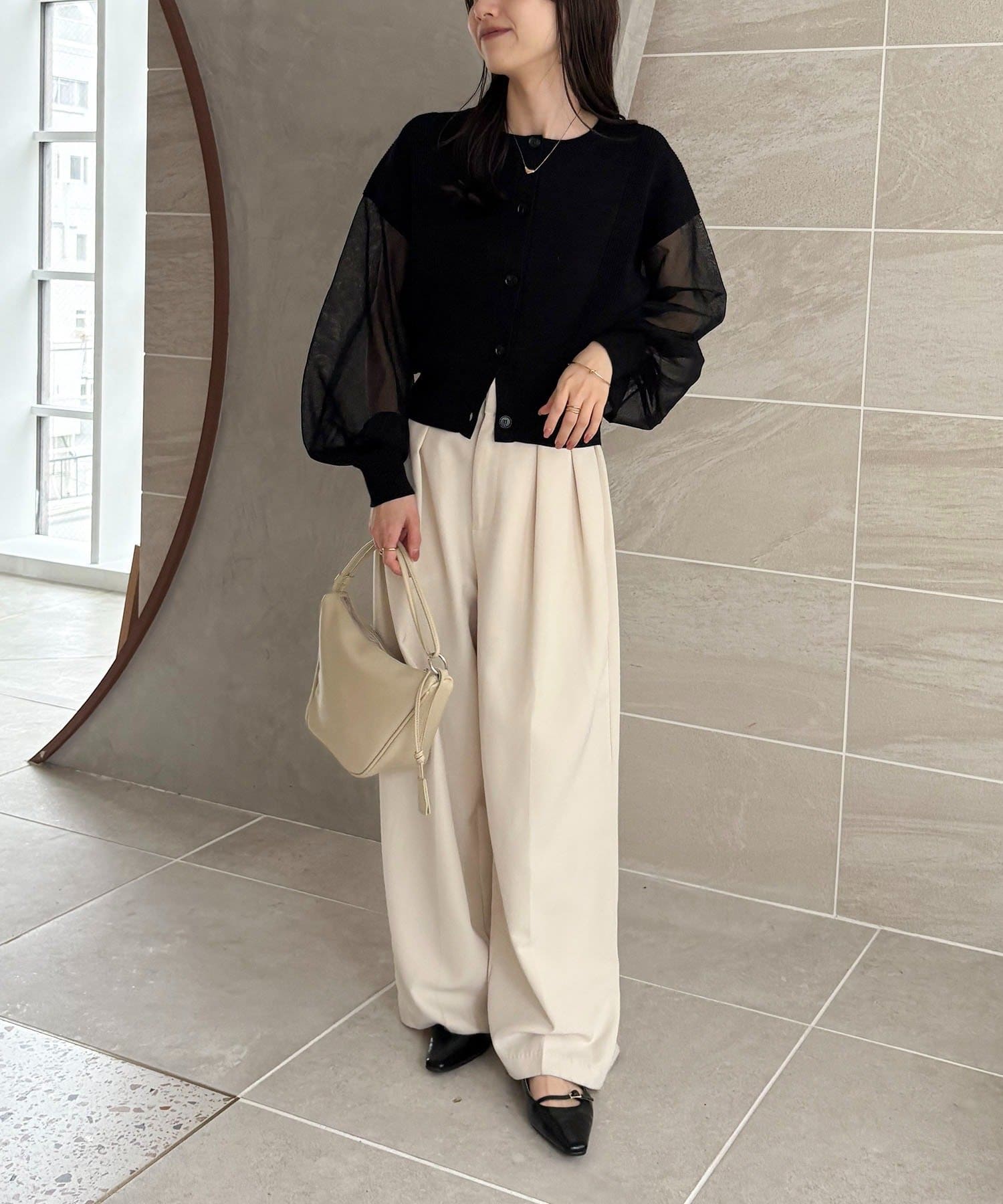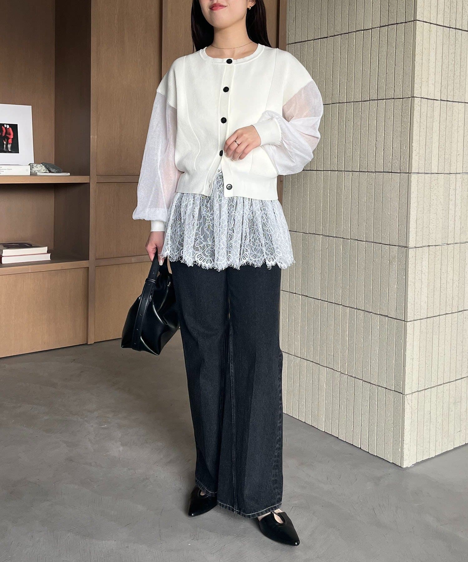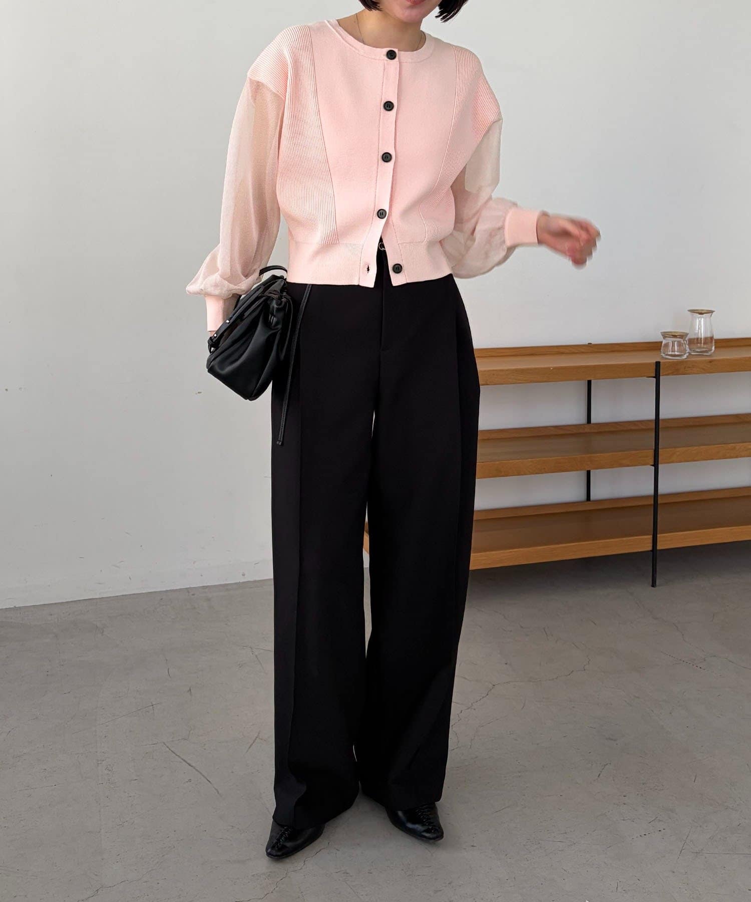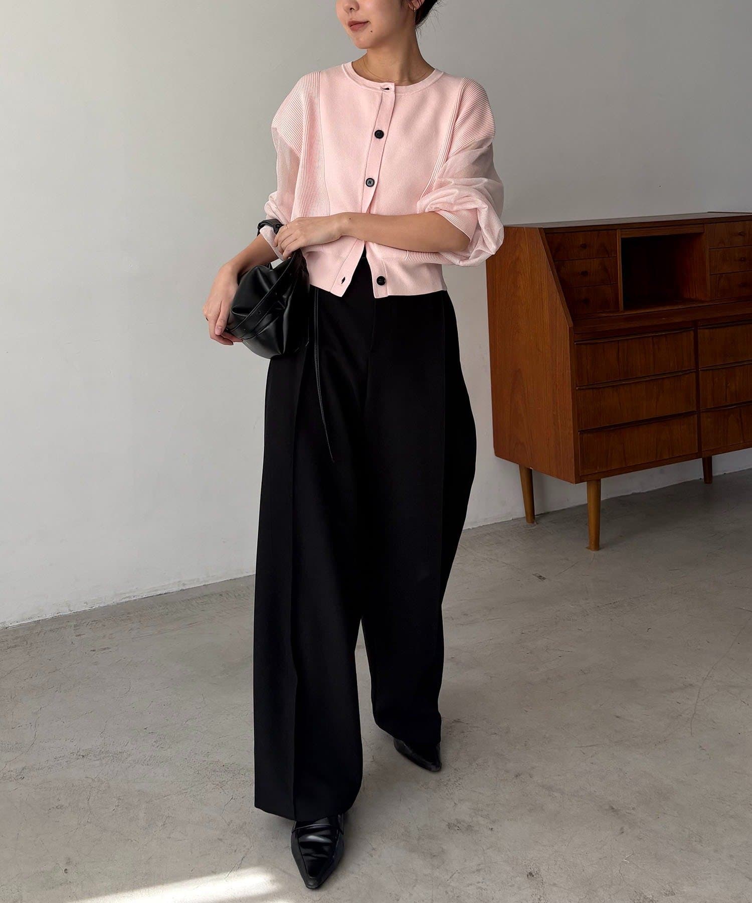 袖がシアーに切り替わった春らしいカーディガン