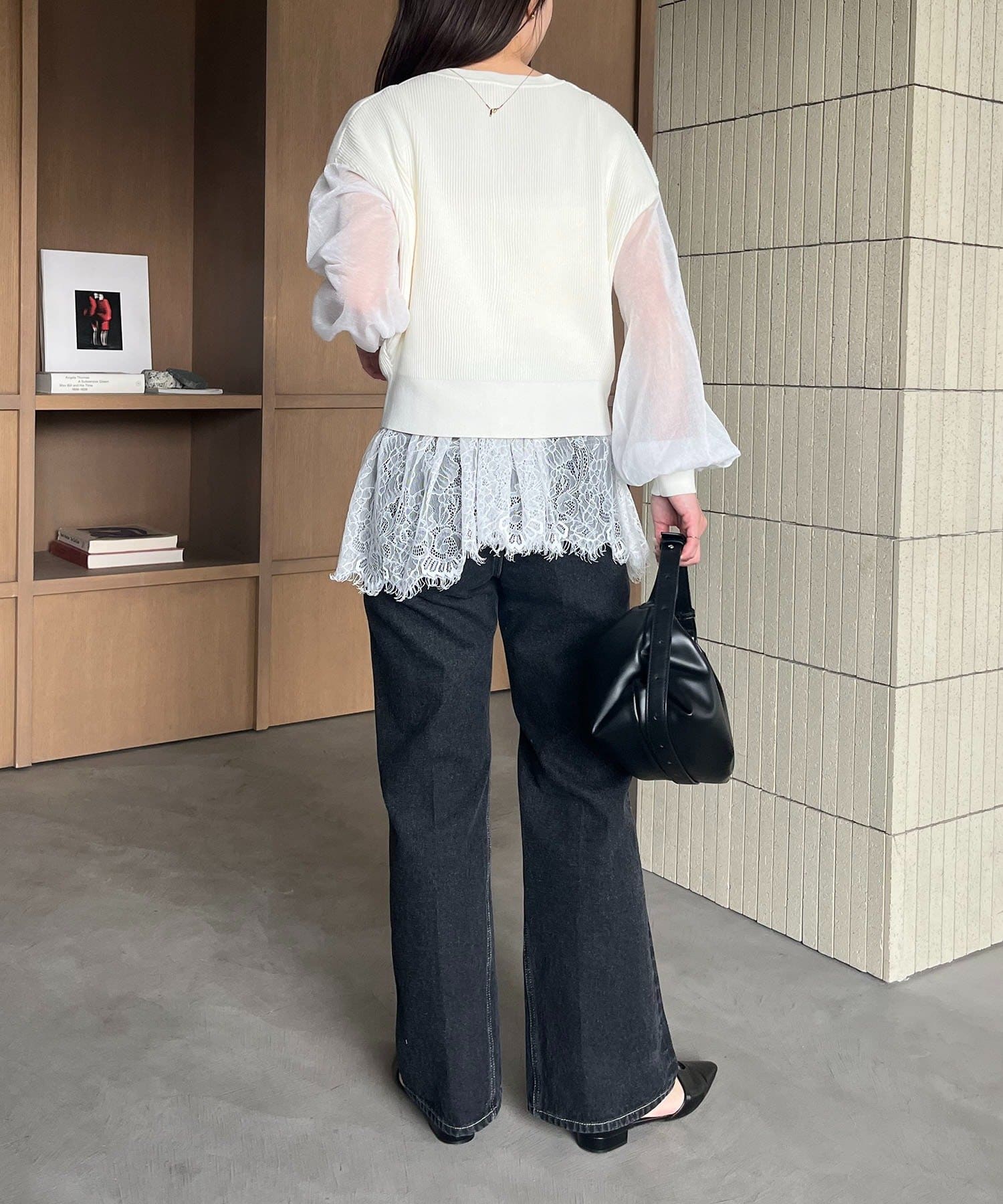 【ブラック着用アイテム④】inner:レースキャミ・pants:セミフレアデニム
