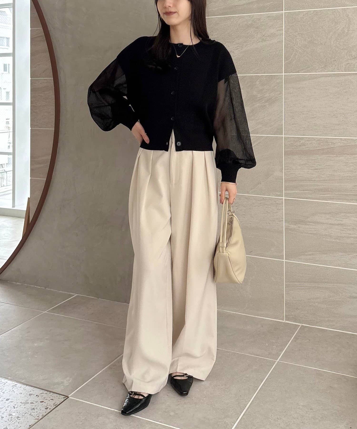 ・ワイドパンツに合わせて大人カジュアルコーデに