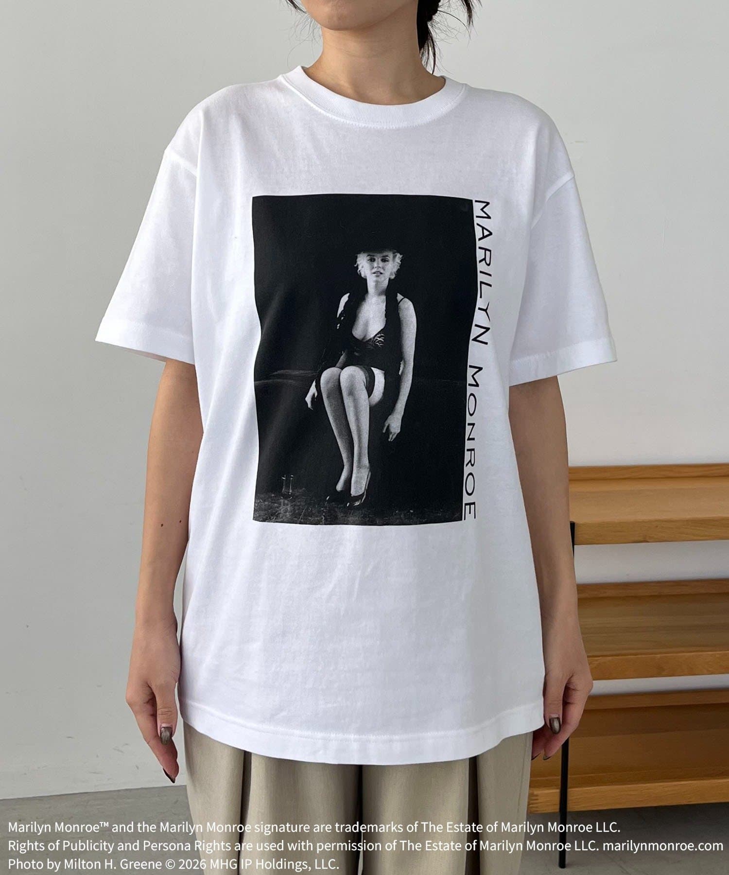 マリリン・モンローのフォトプリントが目を惹くTシャツ
