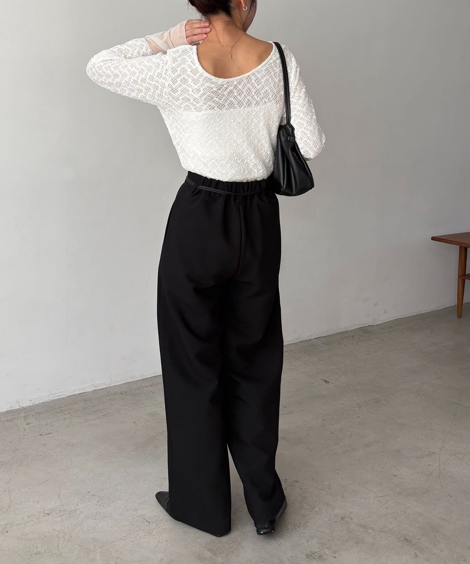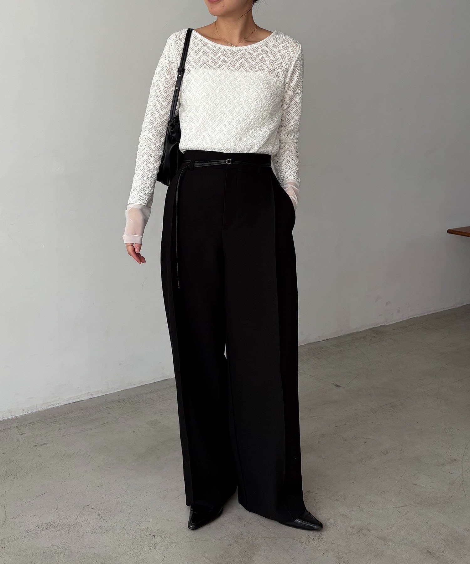 【ホワイト着用アイテム】カーブタックベルト付パンツ