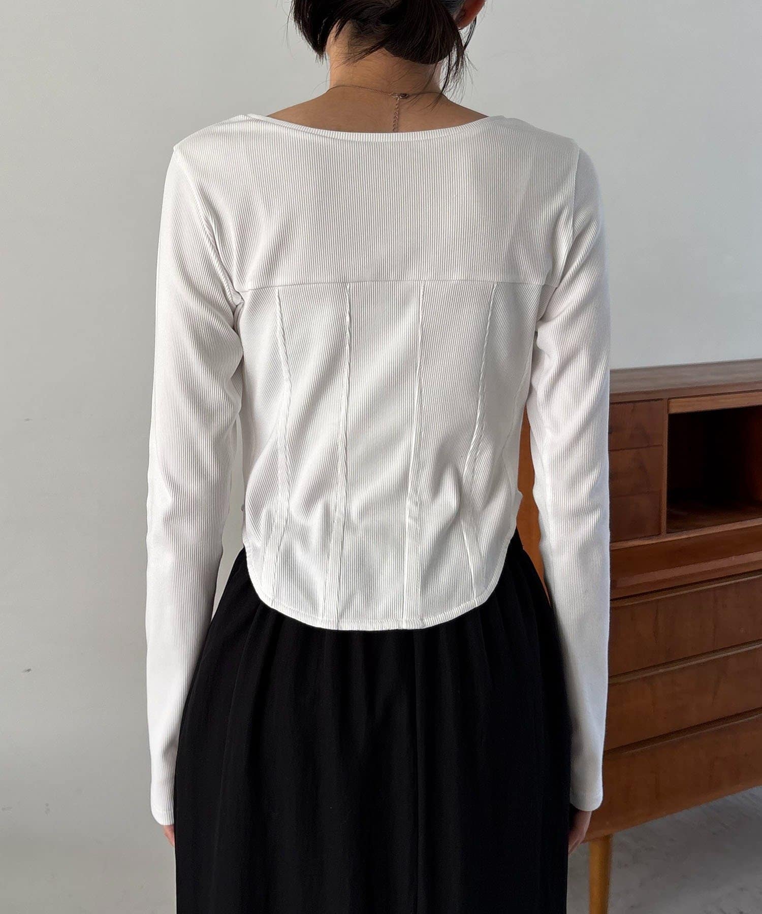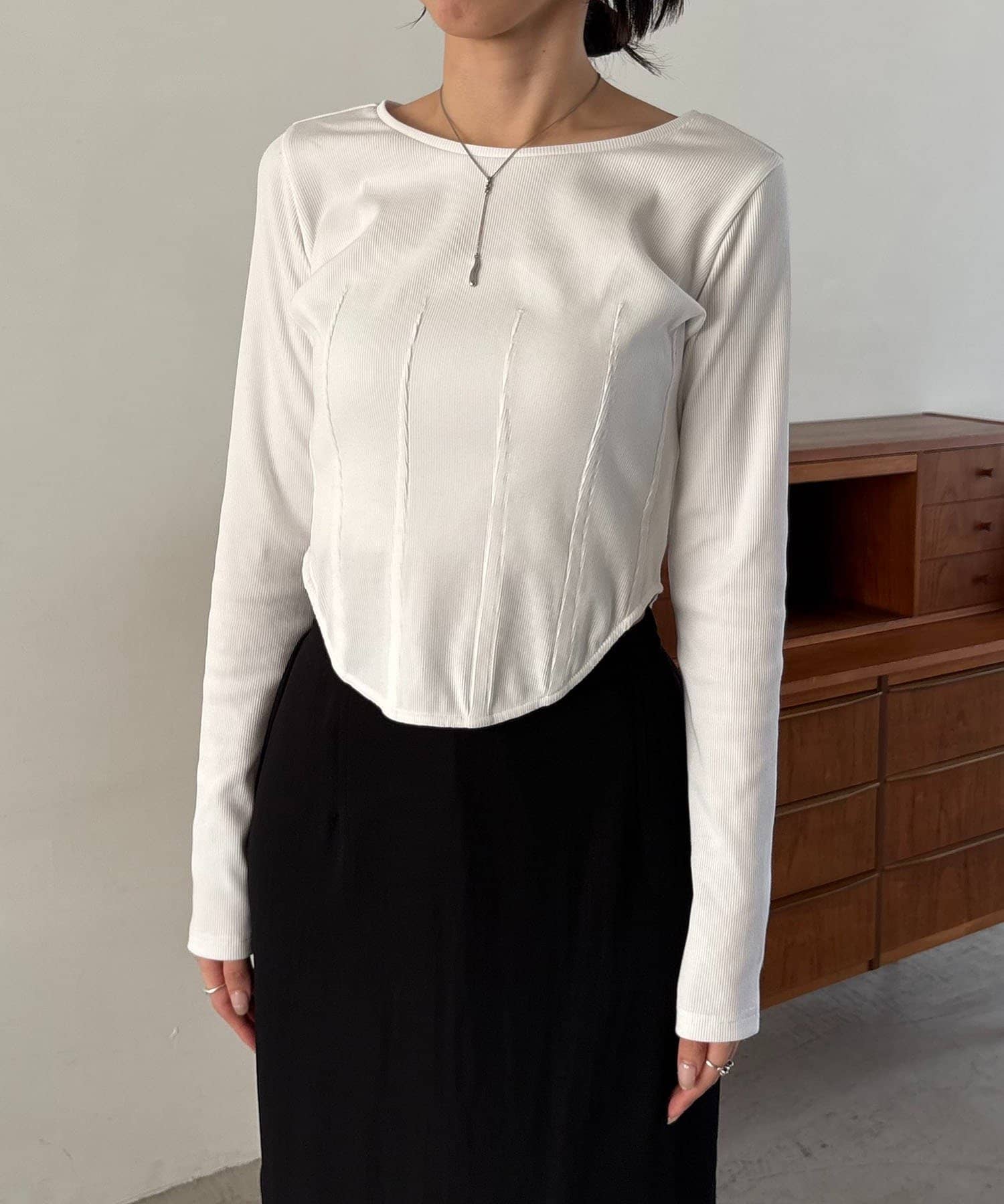 ・コルセット風に入ったダーツ切替で立体的なシルエットに