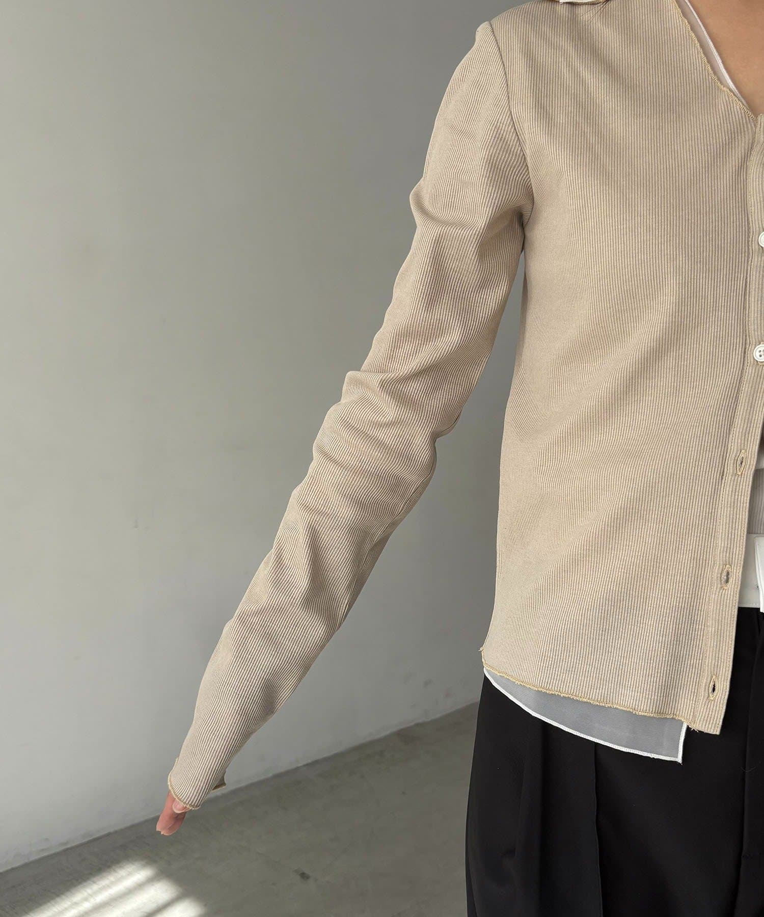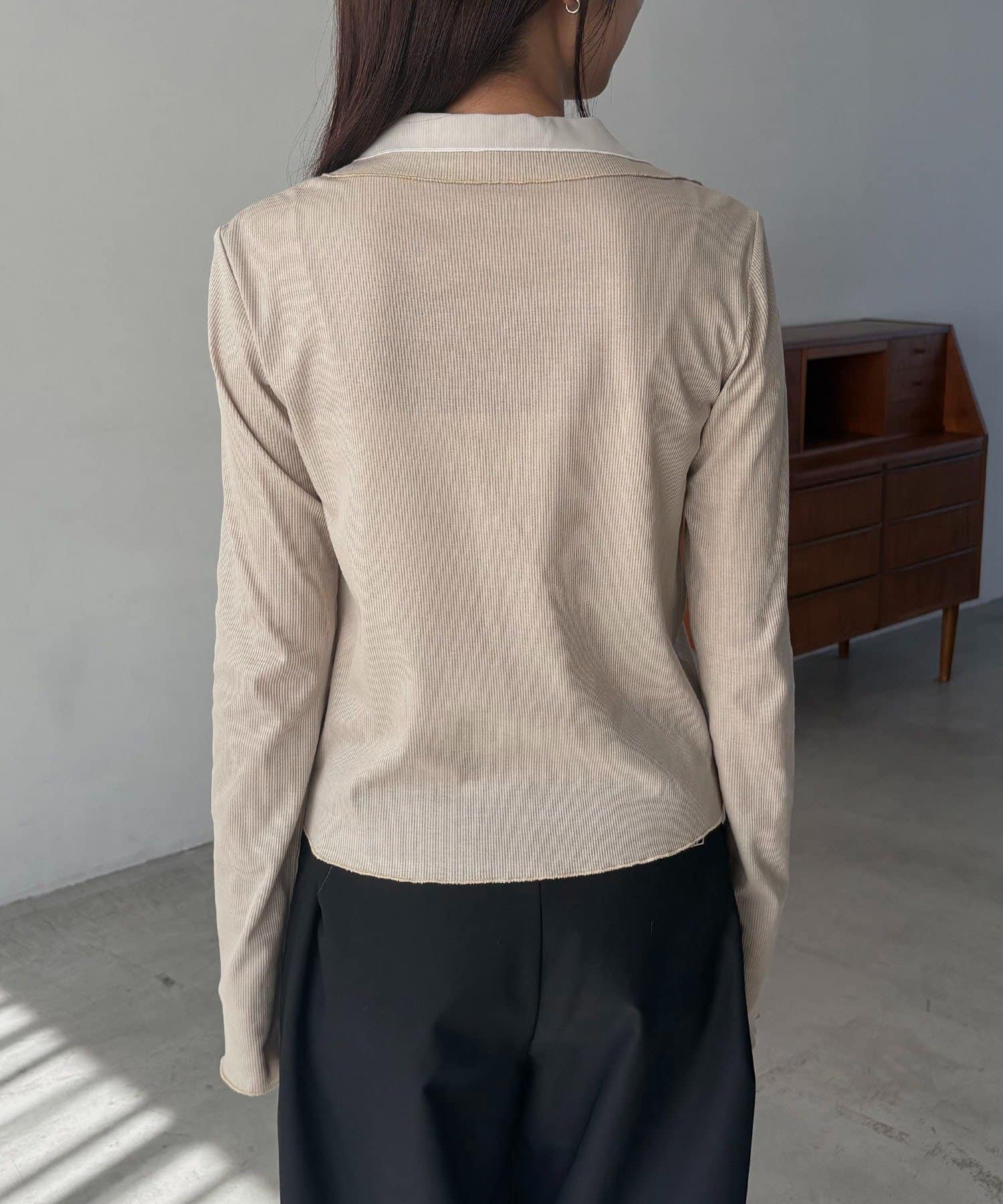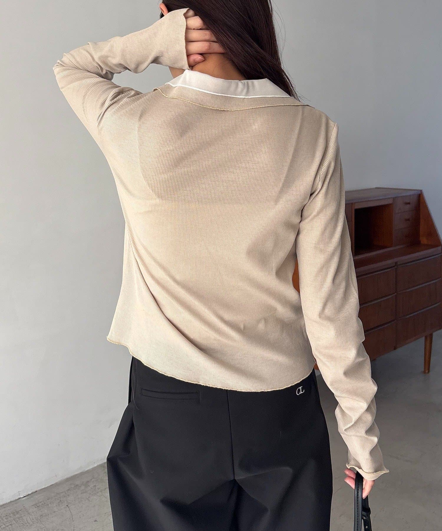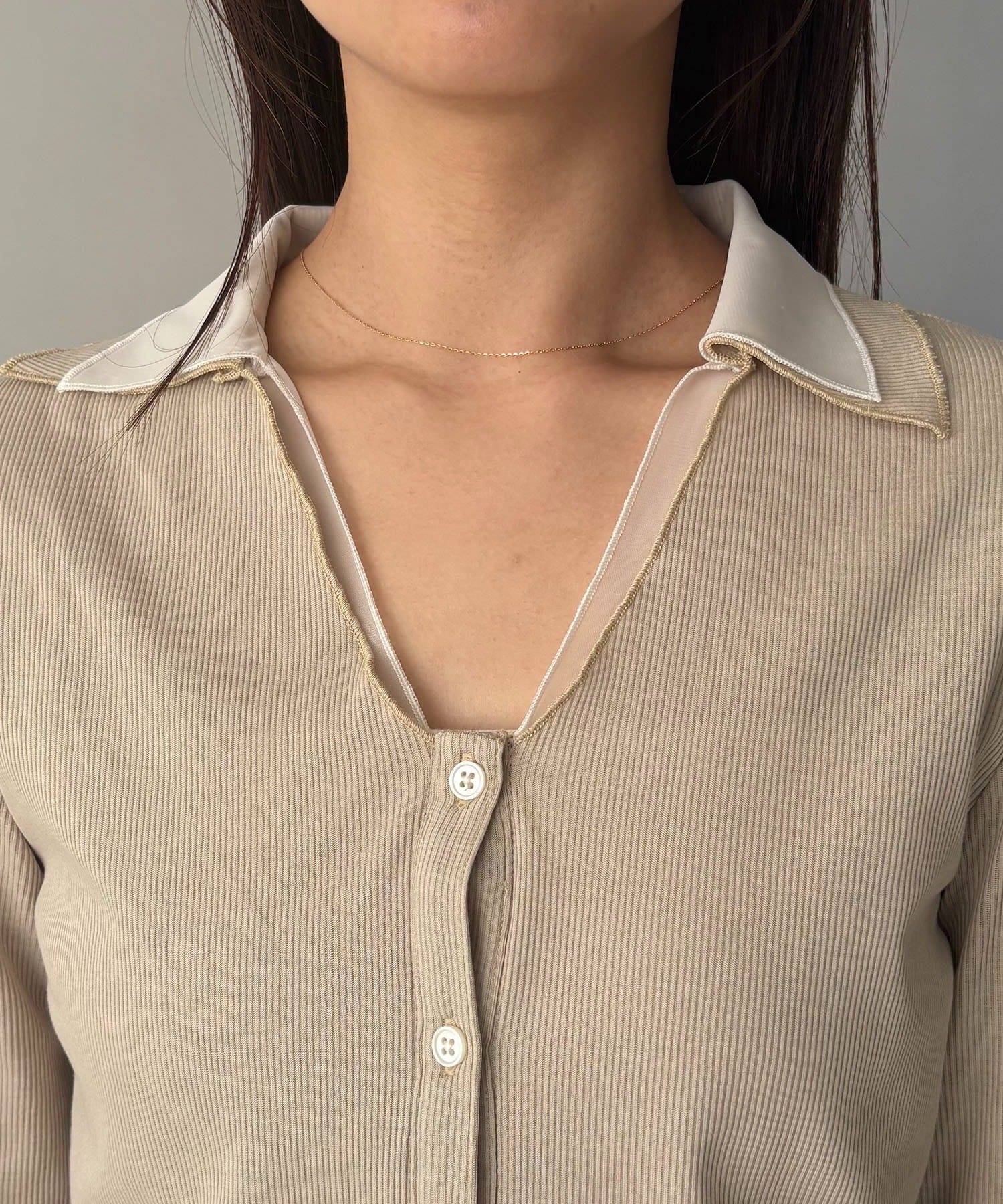 ・シアーと細リブのカットソーをレイヤードさせた着映えするデザイン