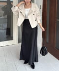 【ベージュ着用アイテム】pants:2タックワイドパンツ、inner:シャーリングニット