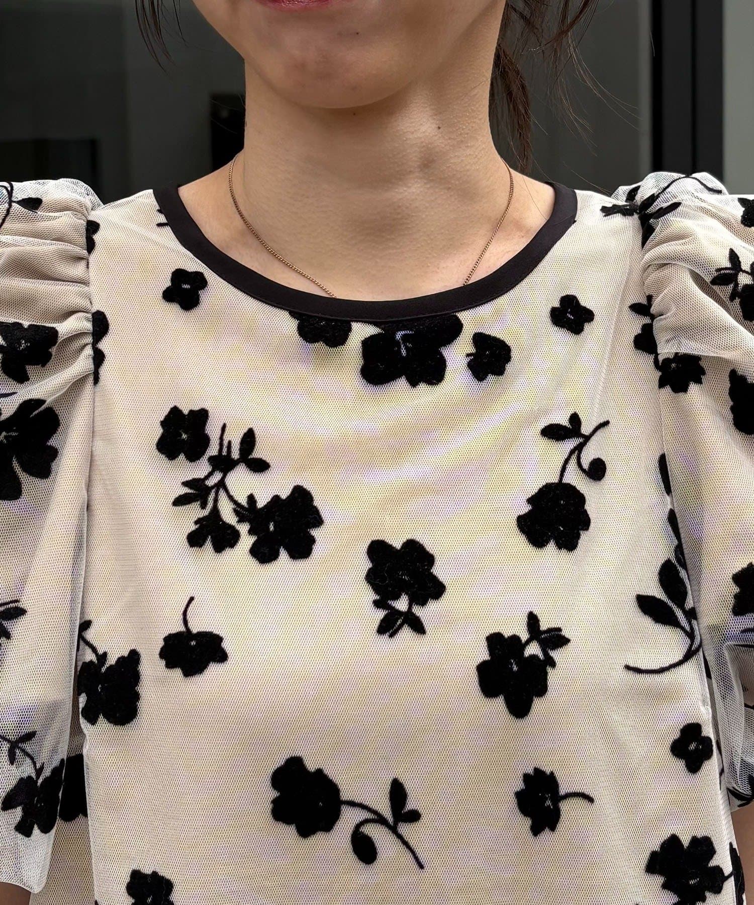 ・立体的なフロッキーの花柄が上品で大人な印象に