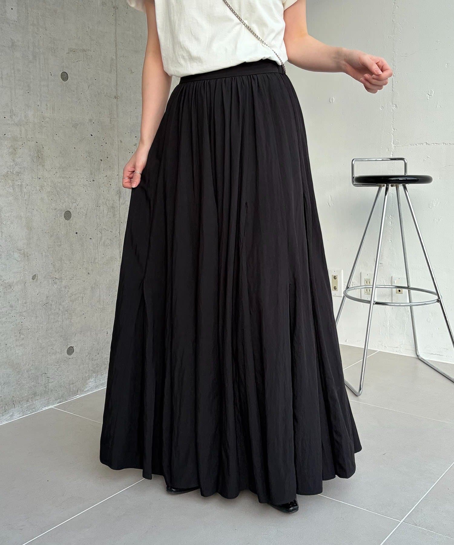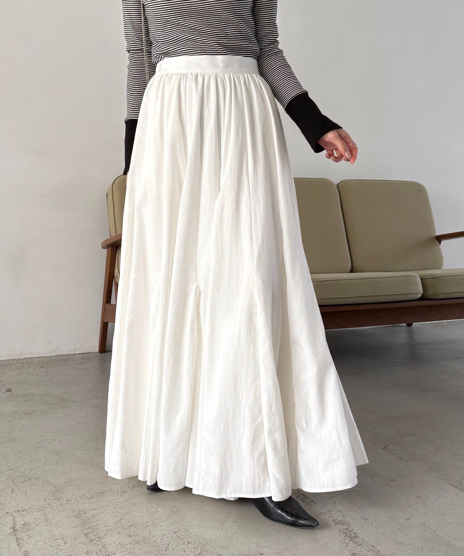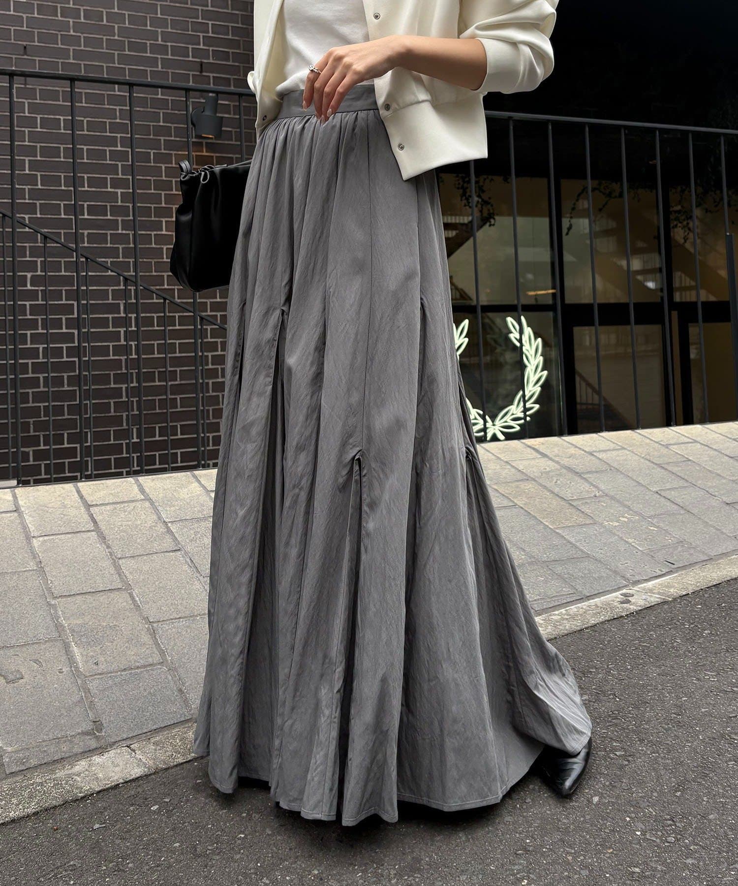 三角のマチをランダムに入れてフレア感を出したマキシスカート
