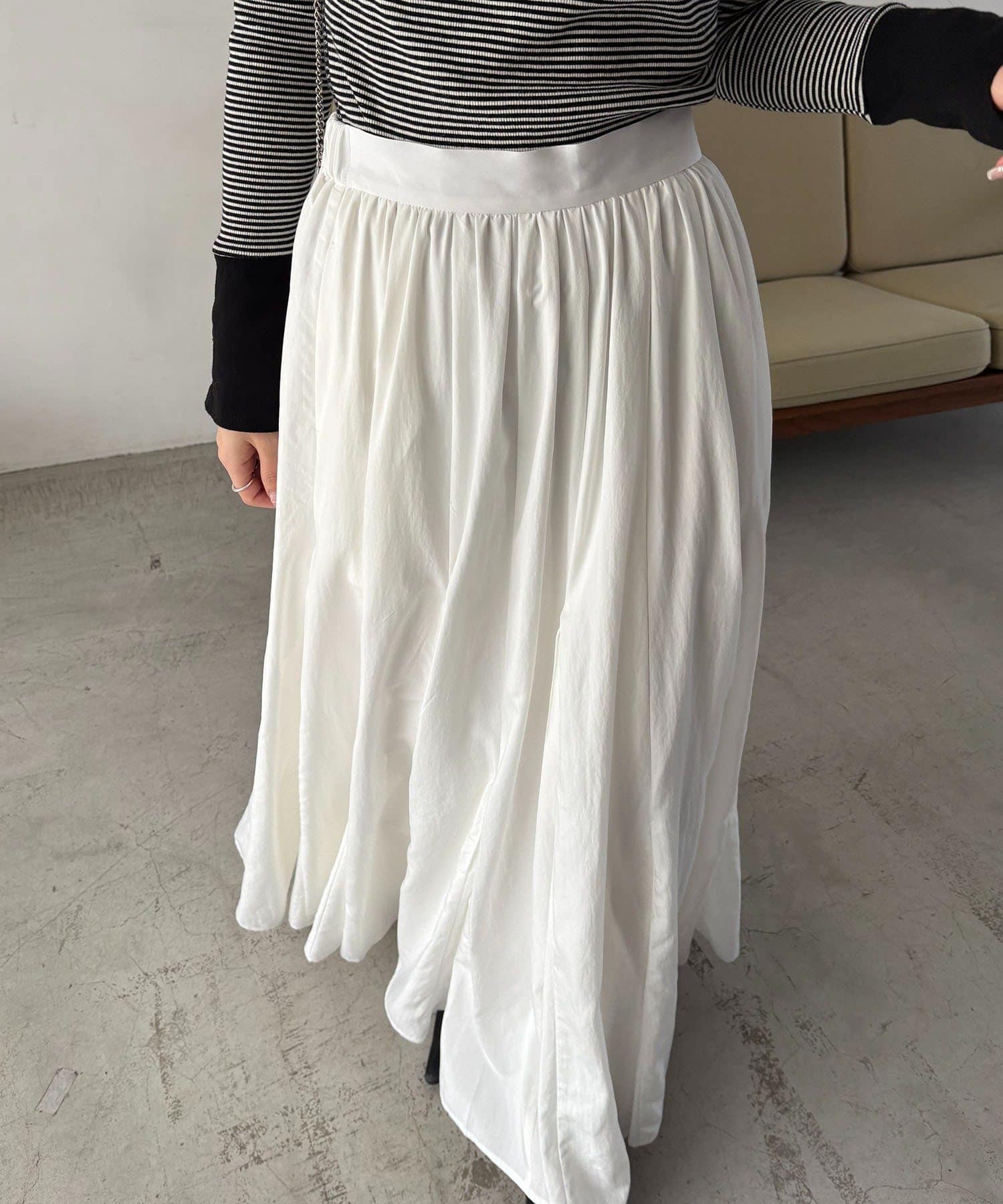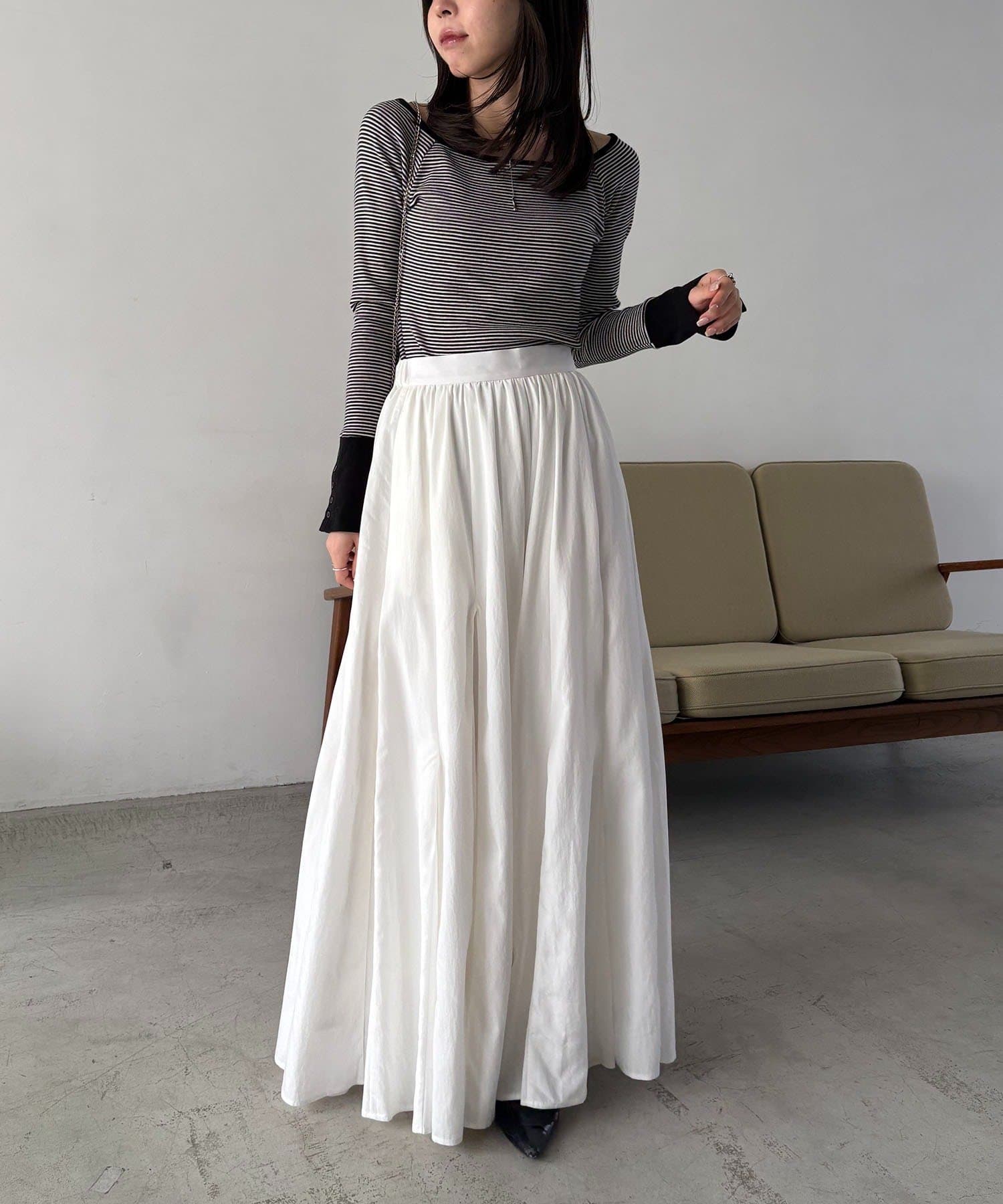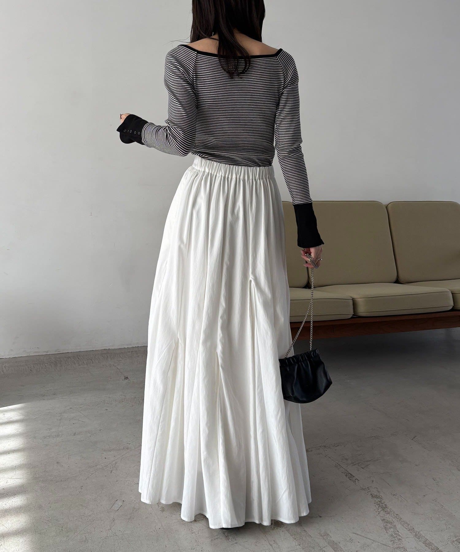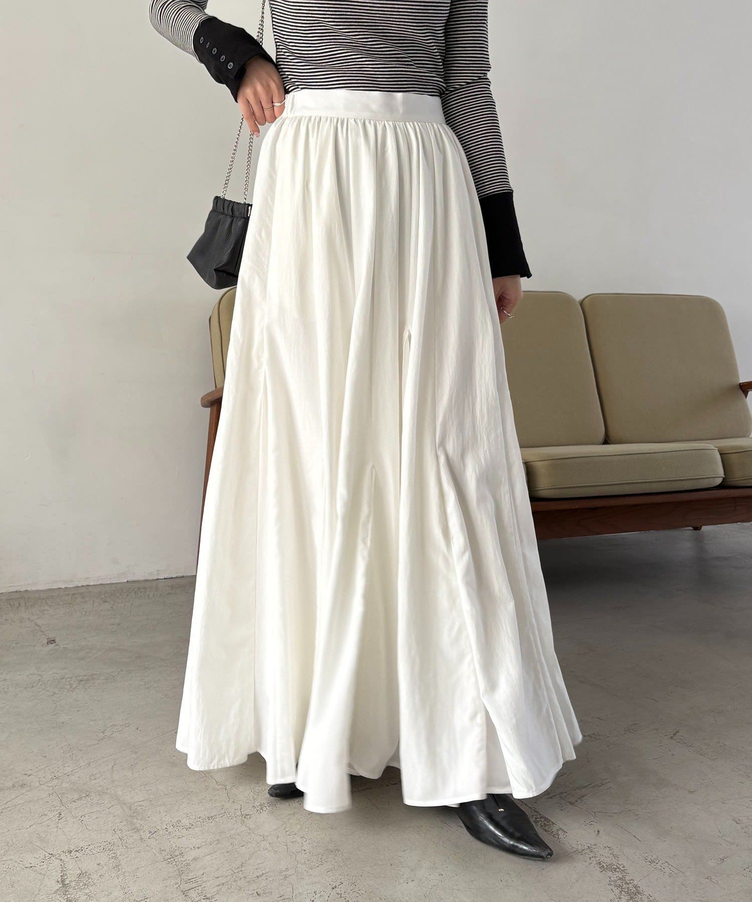 三角のマチをランダムに入れてフレア感を出したマキシスカート