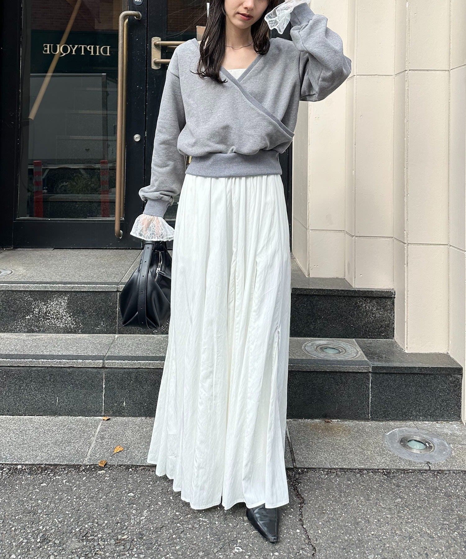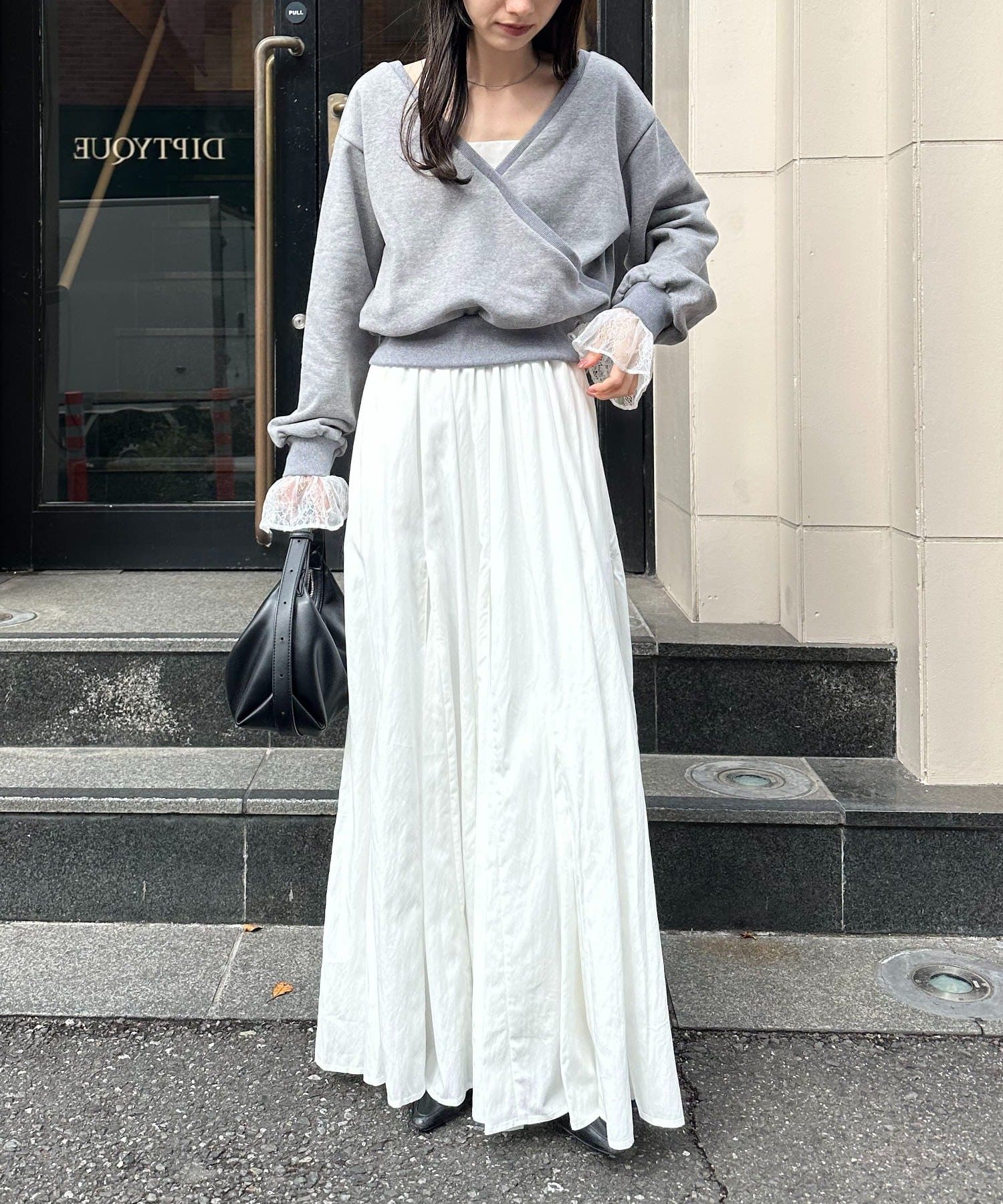 【ホワイト着用アイテム②】カシュクール袖レーススウェット