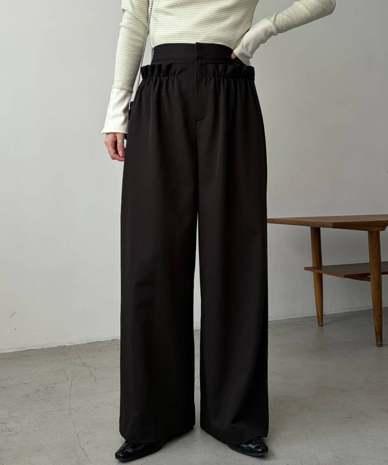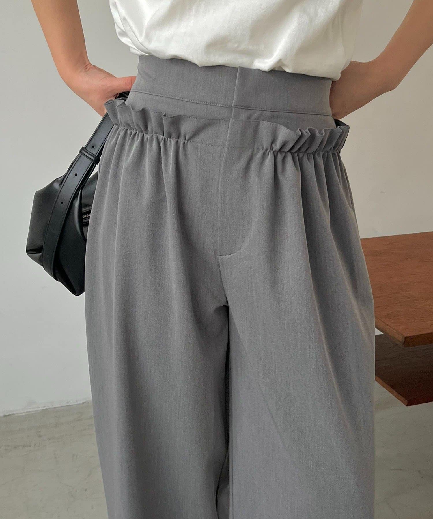 フリルデザインがポイントの主役級パンツ
