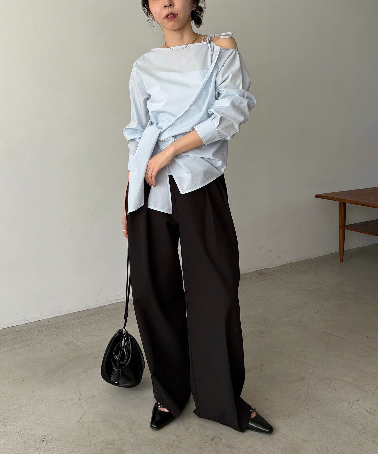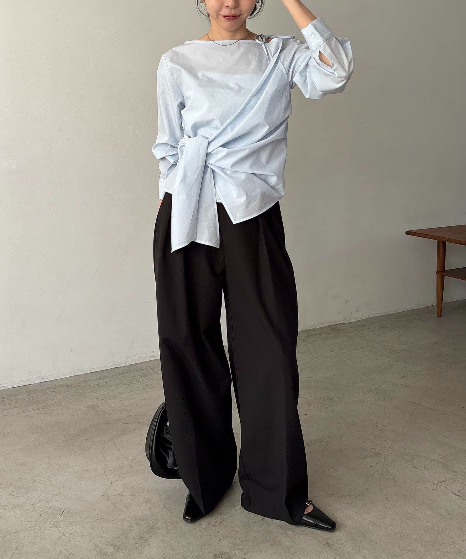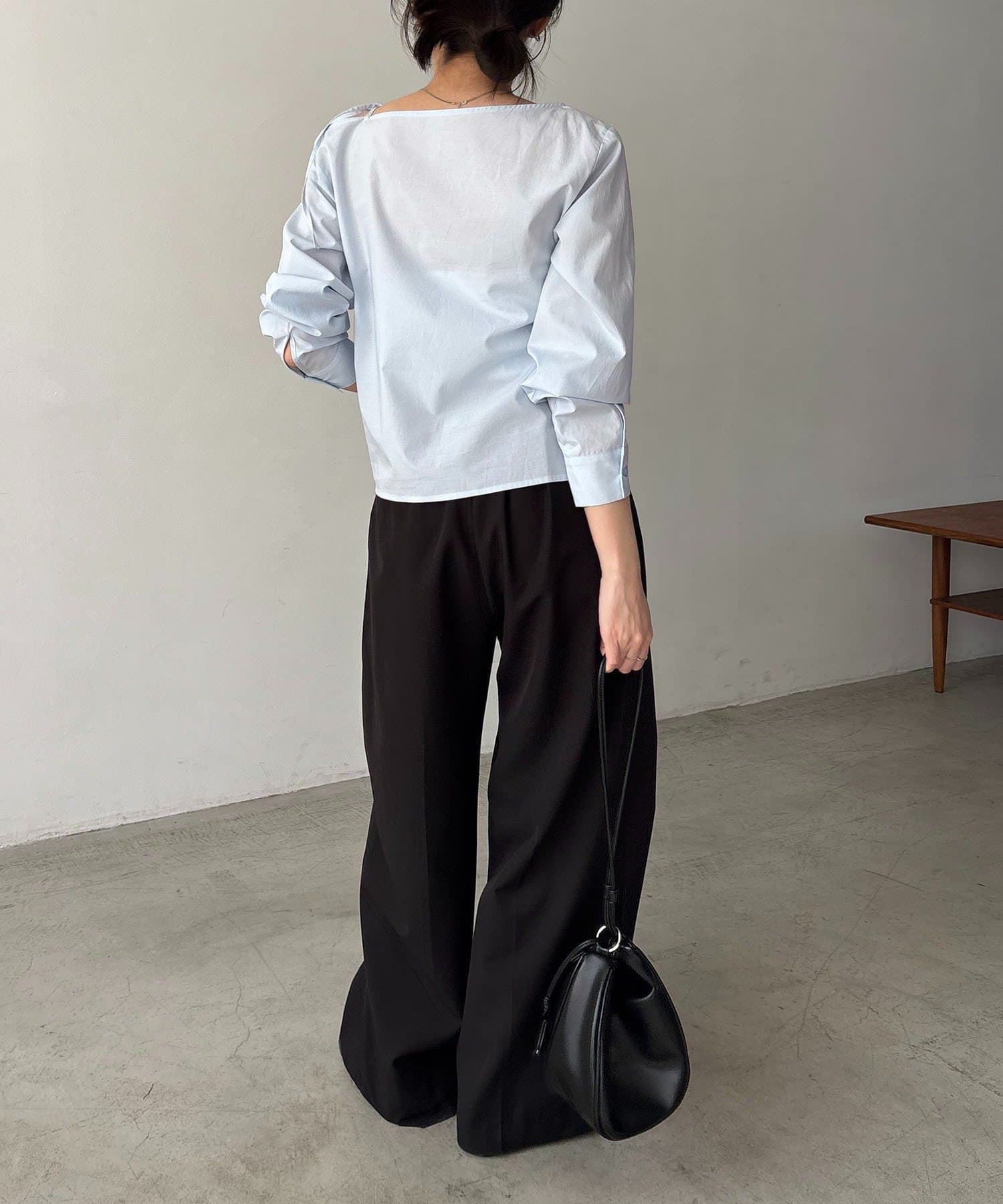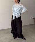 ・落ち感のあるワイドパンツやフレアパンツを合わせるとスタイルアップ効果◎
