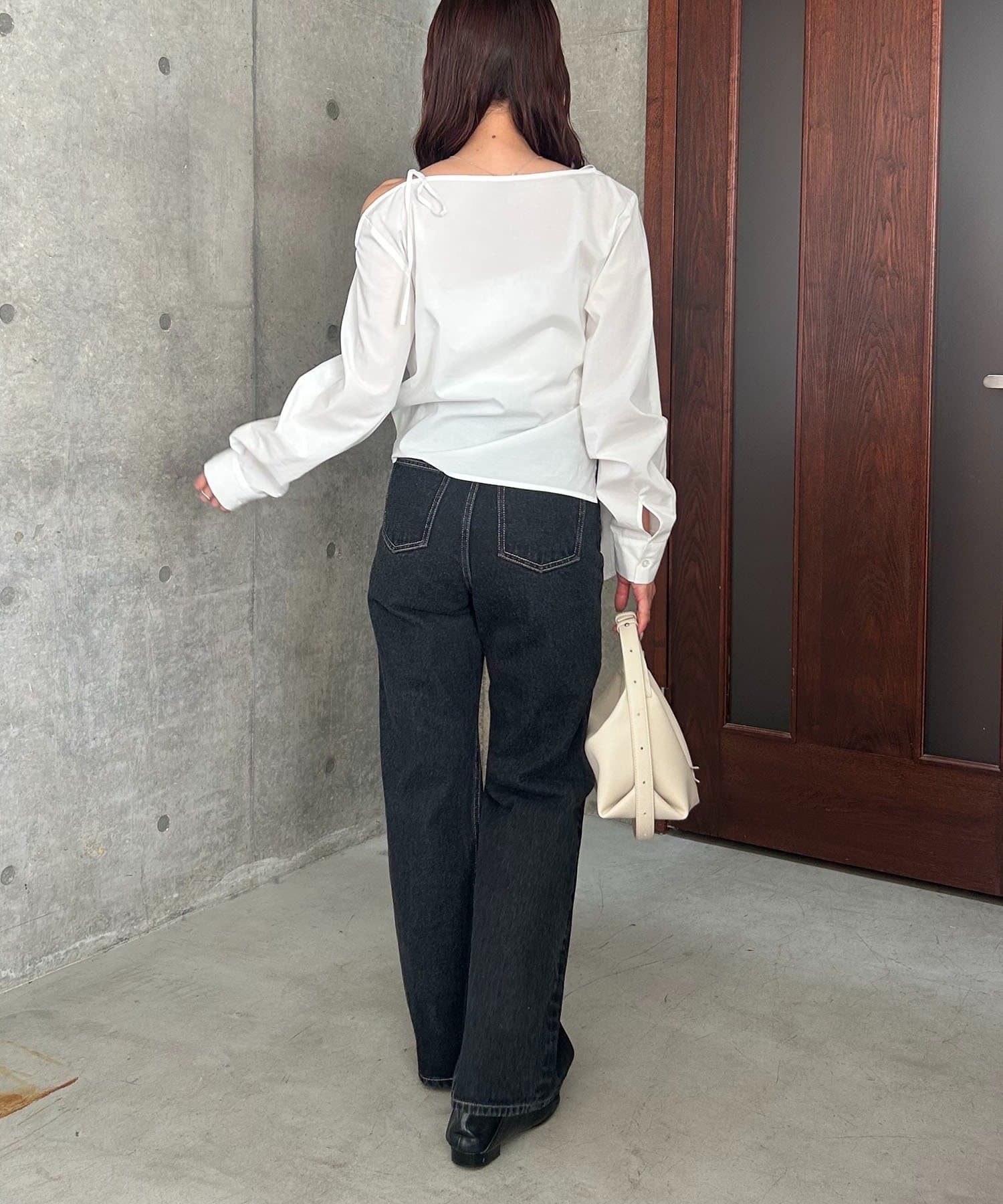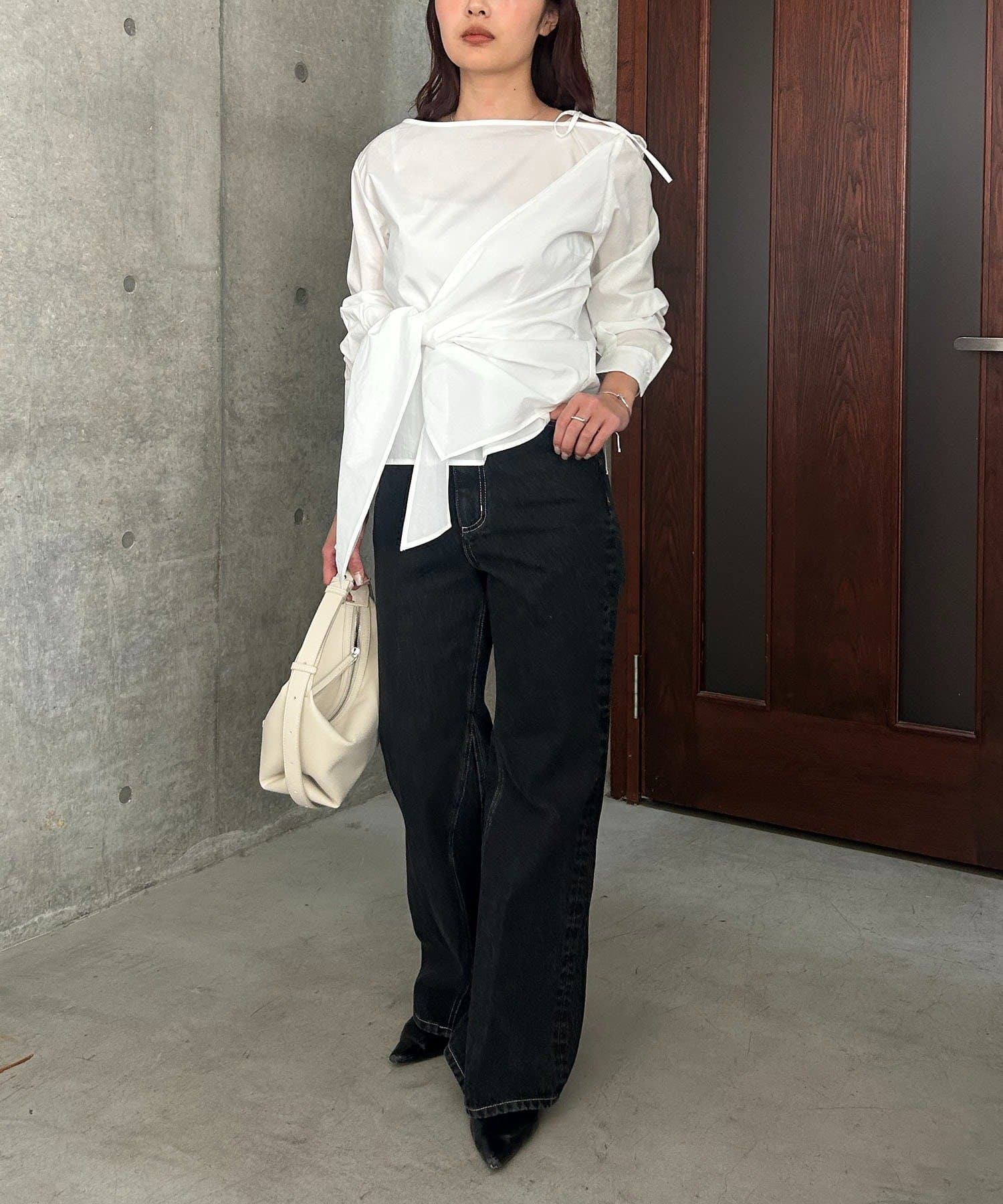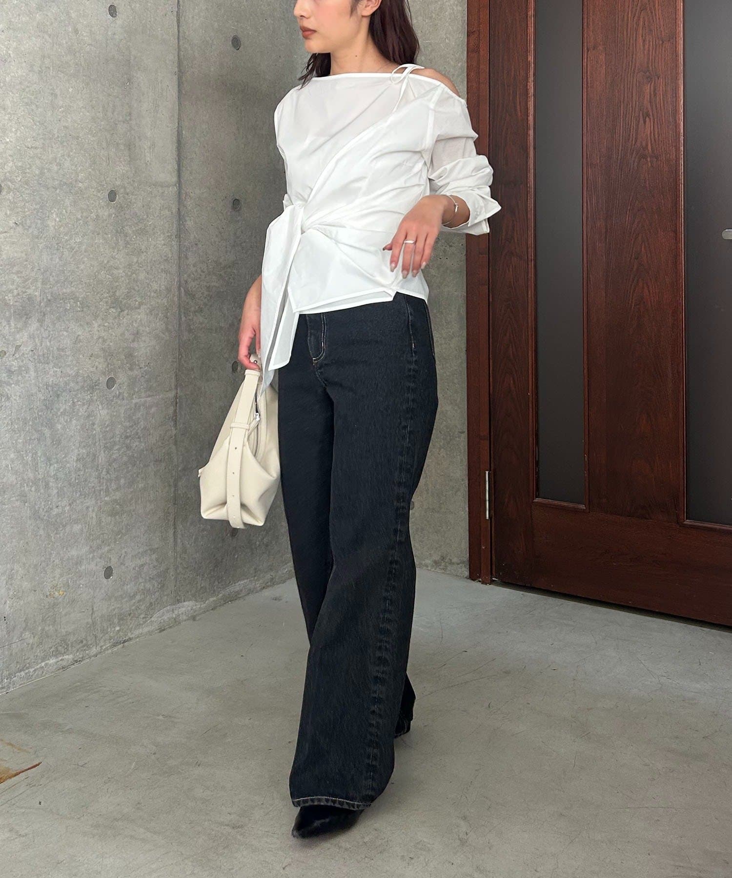 ・落ち感のあるワイドパンツやフレアパンツを合わせるとスタイルアップ効果◎