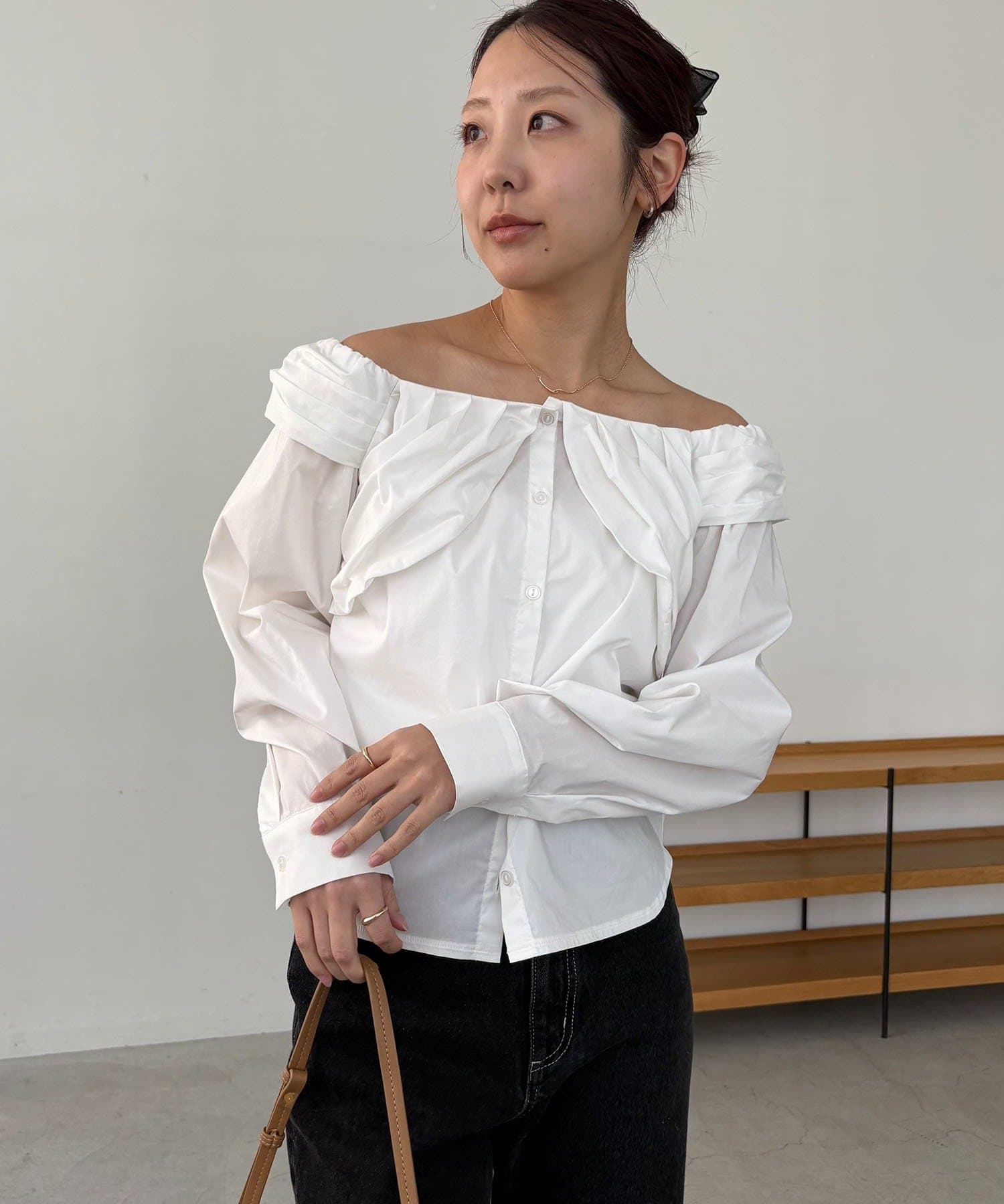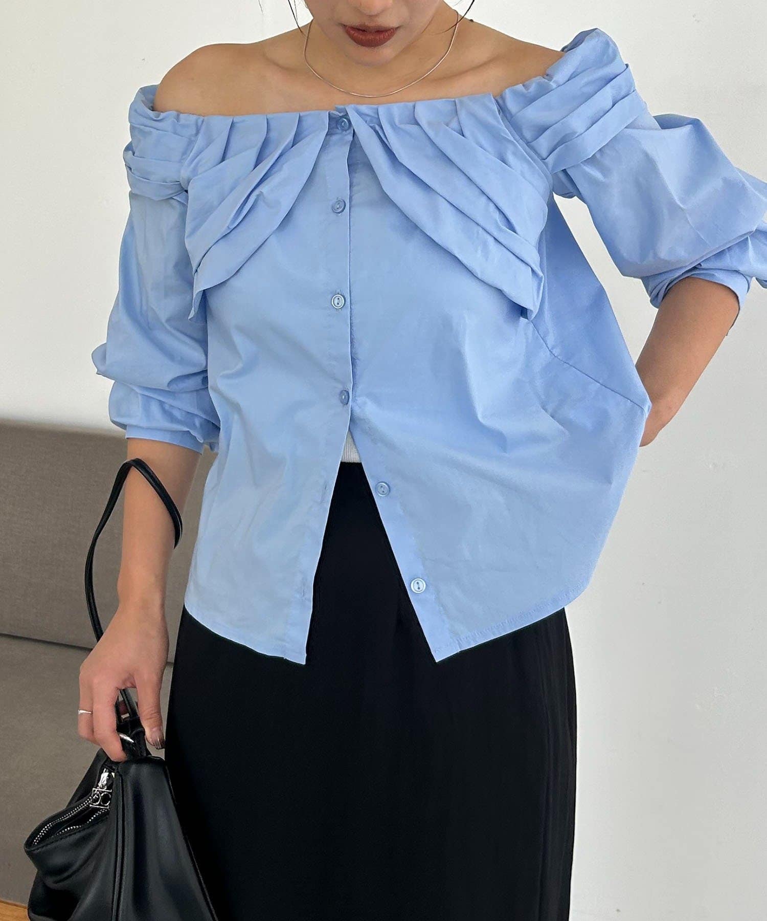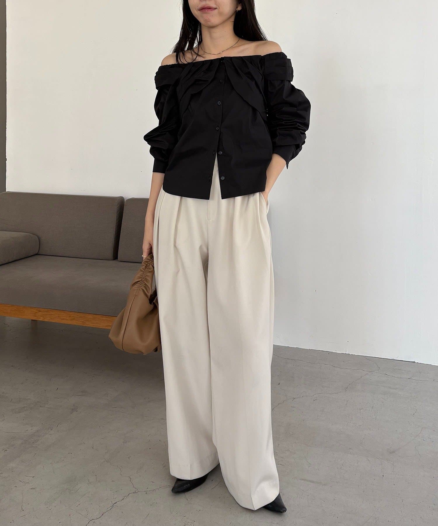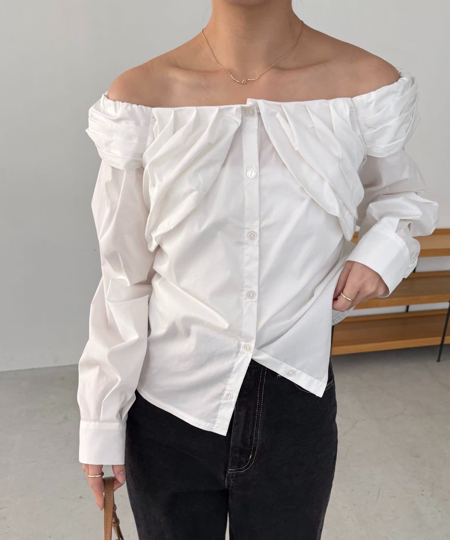 オフショルパフブラウス