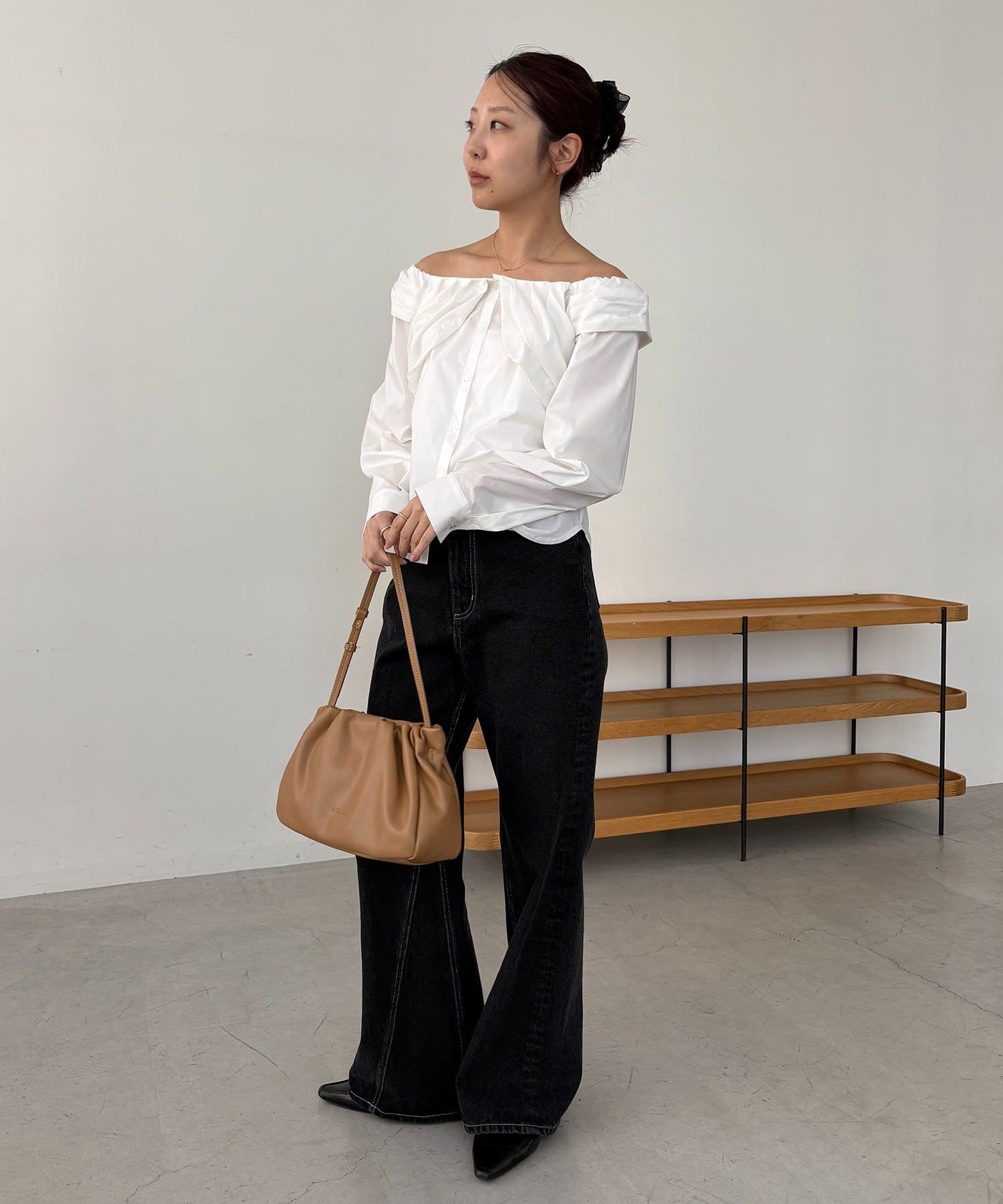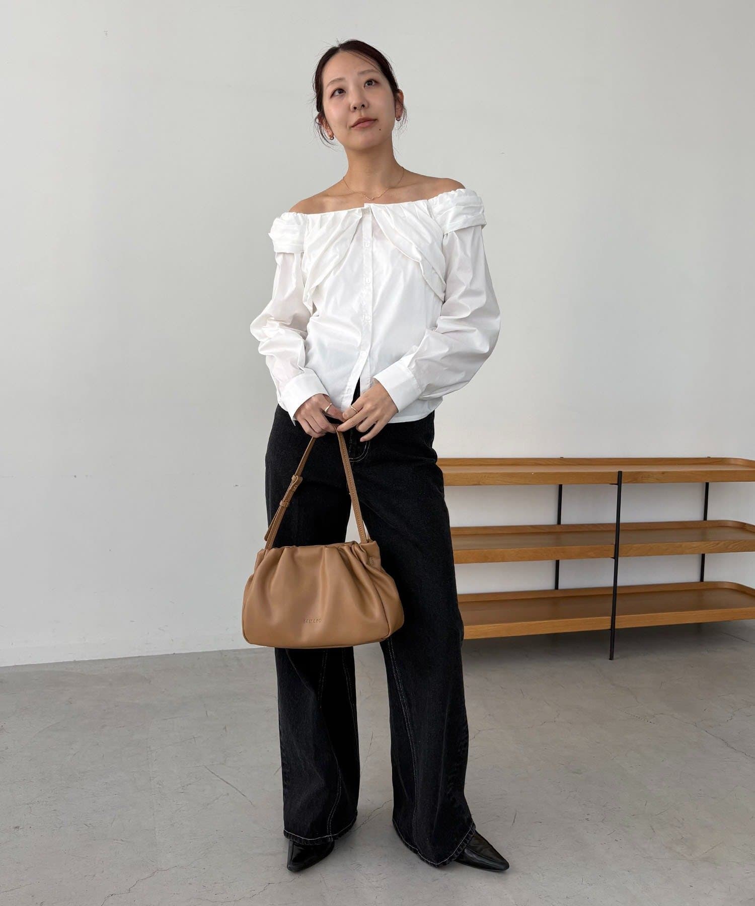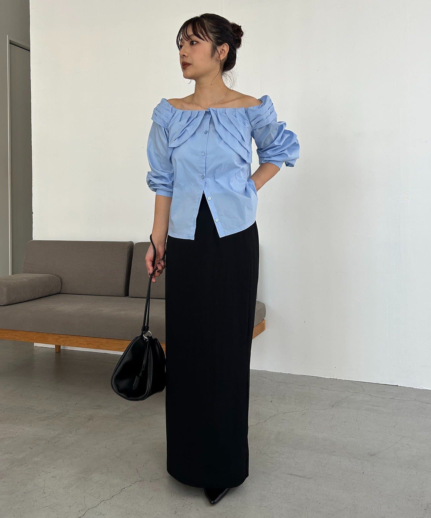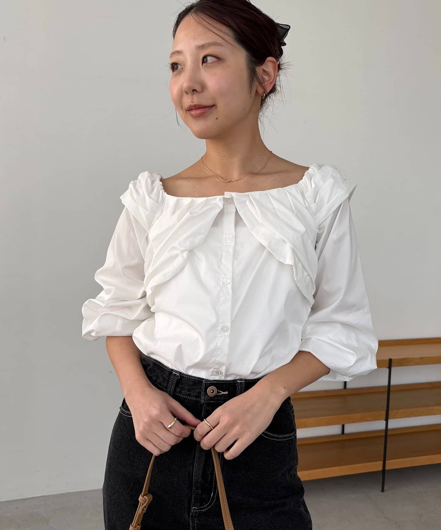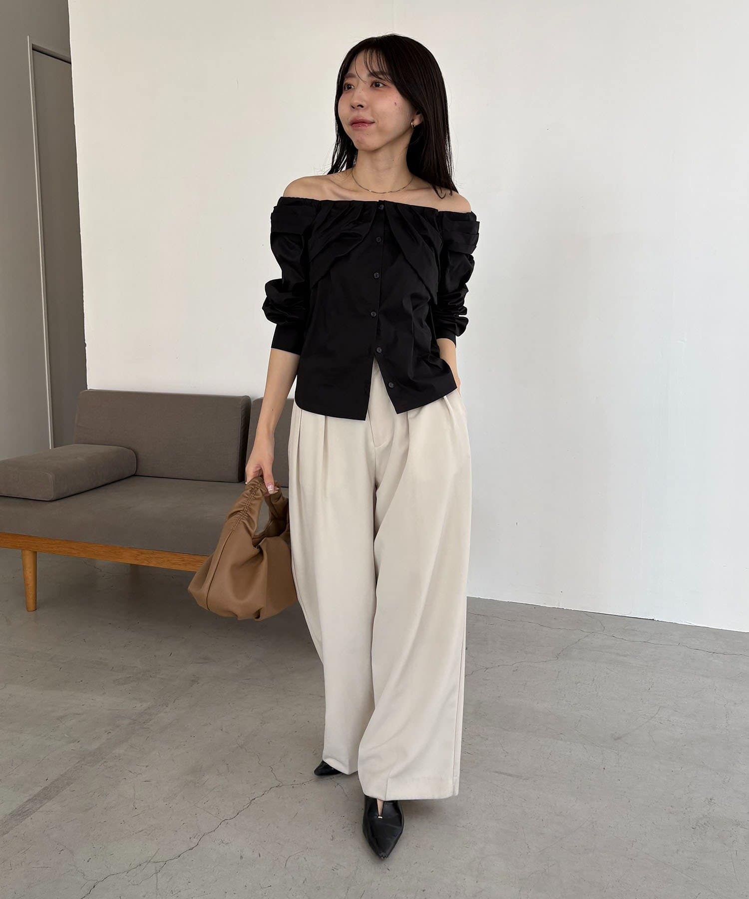 オフショルパフブラウス
