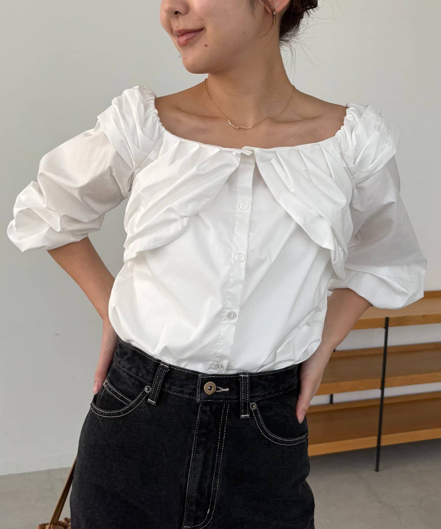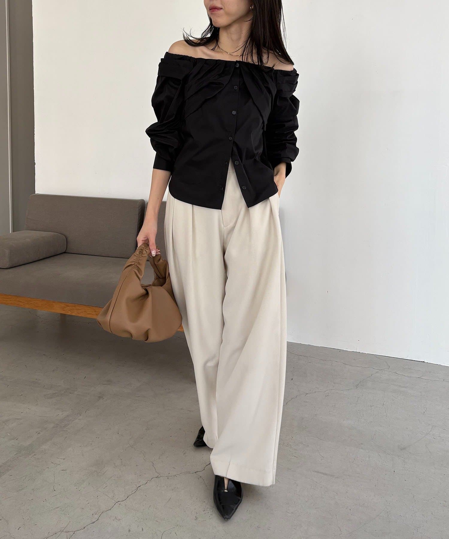 ・タックで立体感のあるシルエットがこなれ感をプラス